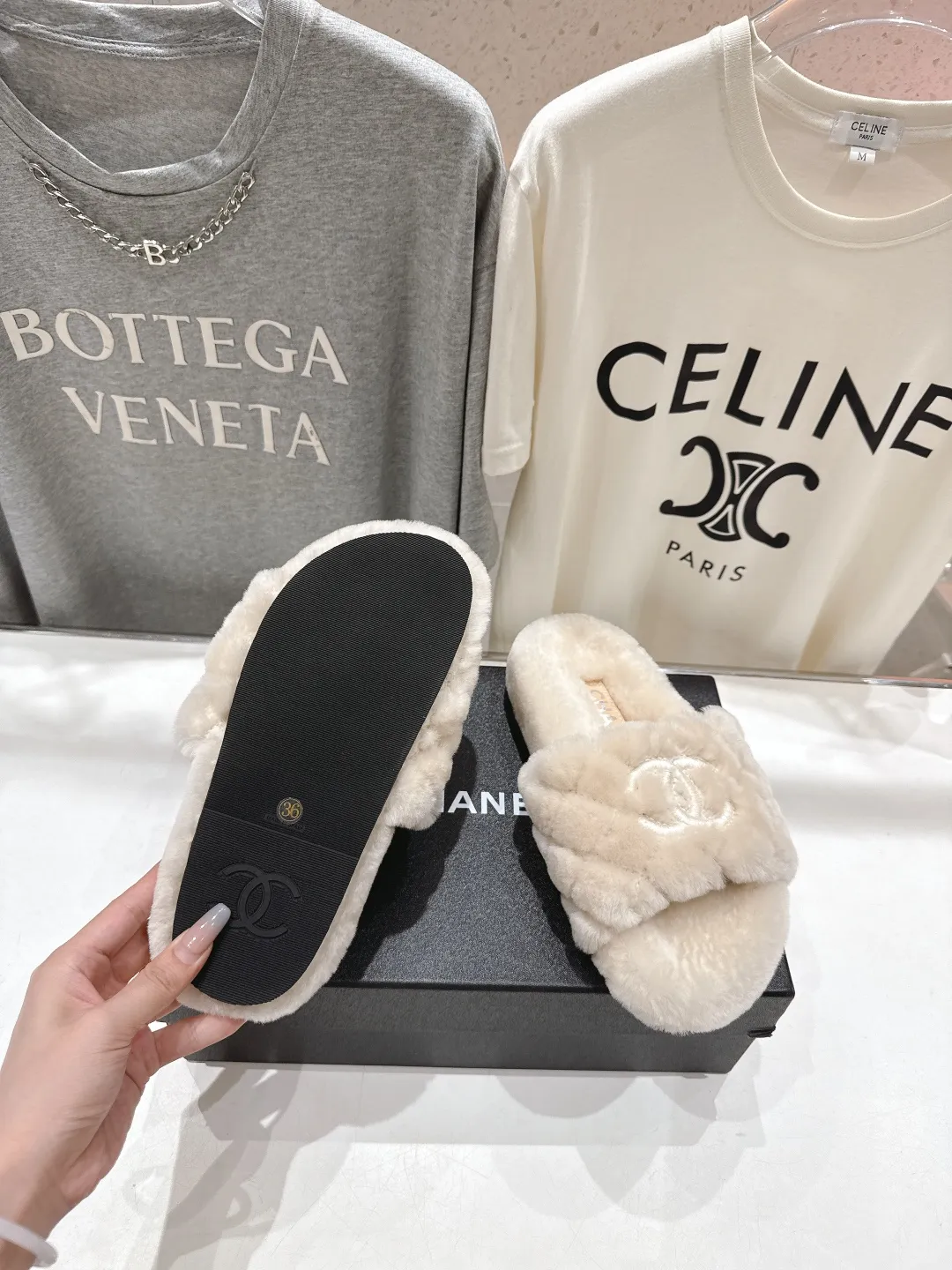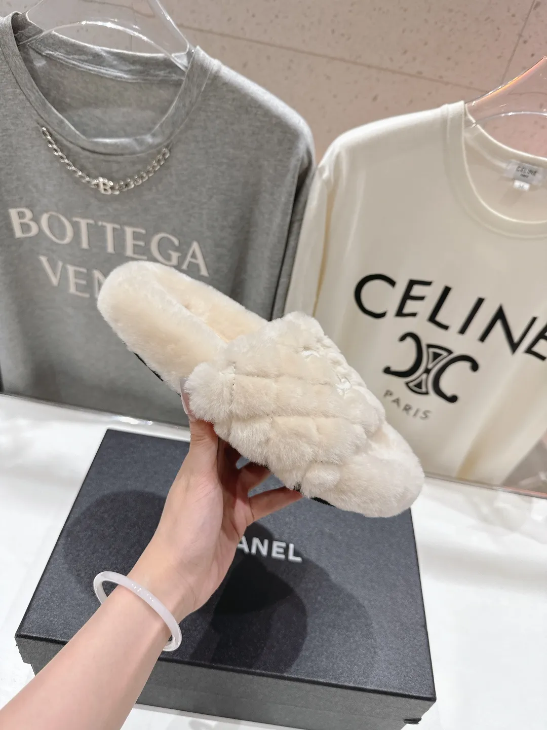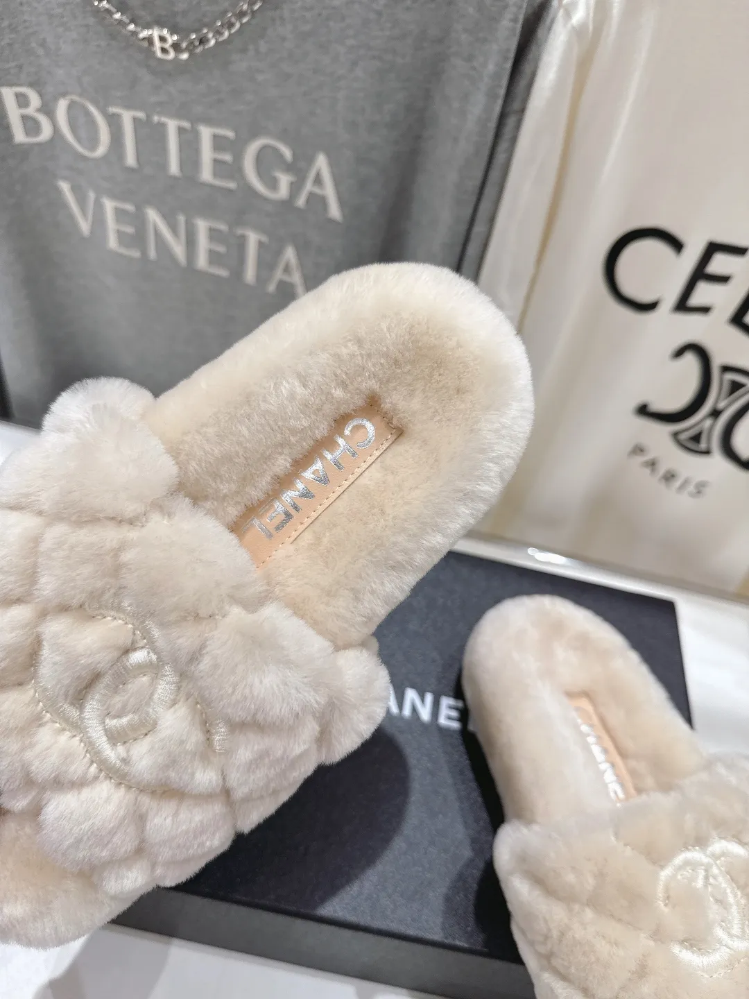 CHANEL 白毛皮のスリッパ新作レトロスタイル