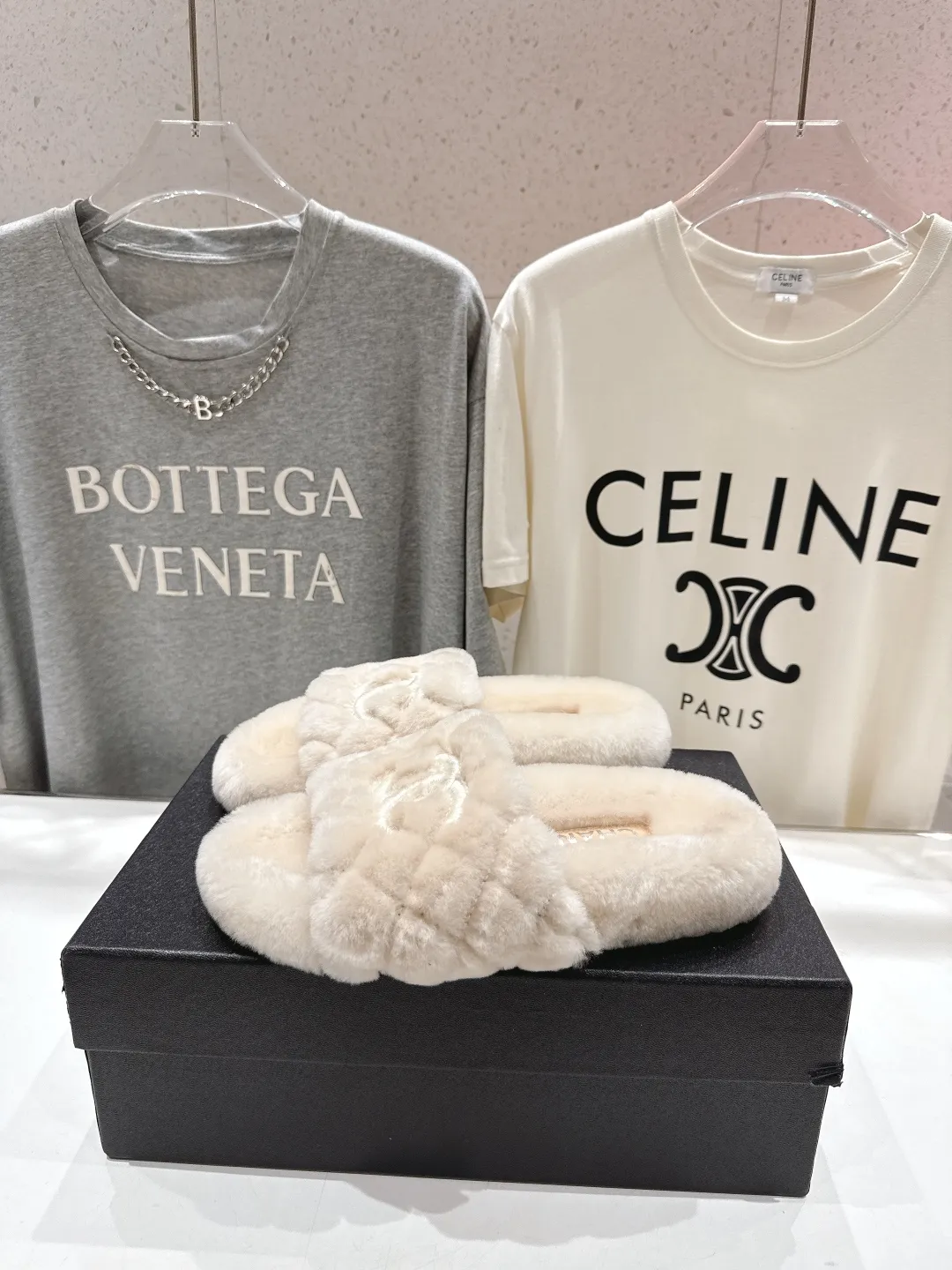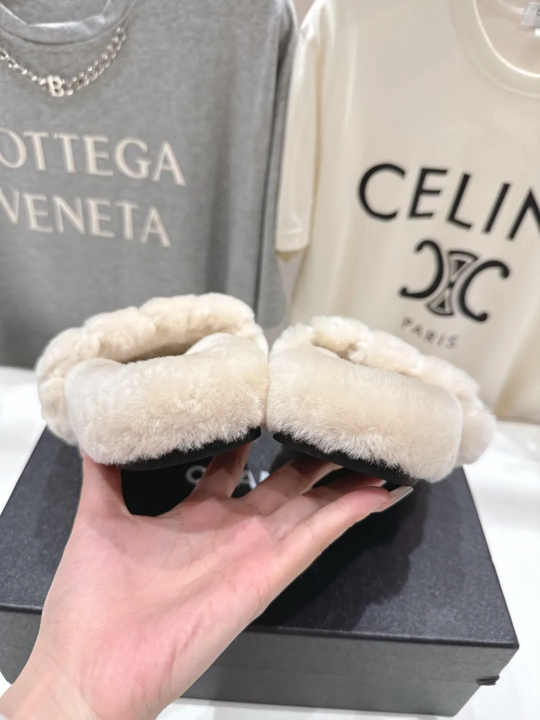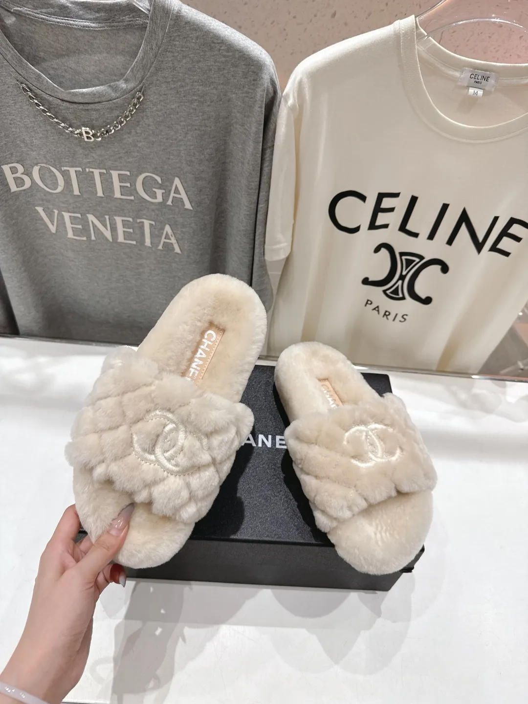 CHANEL 白毛皮のスリッパ新作レトロスタイル