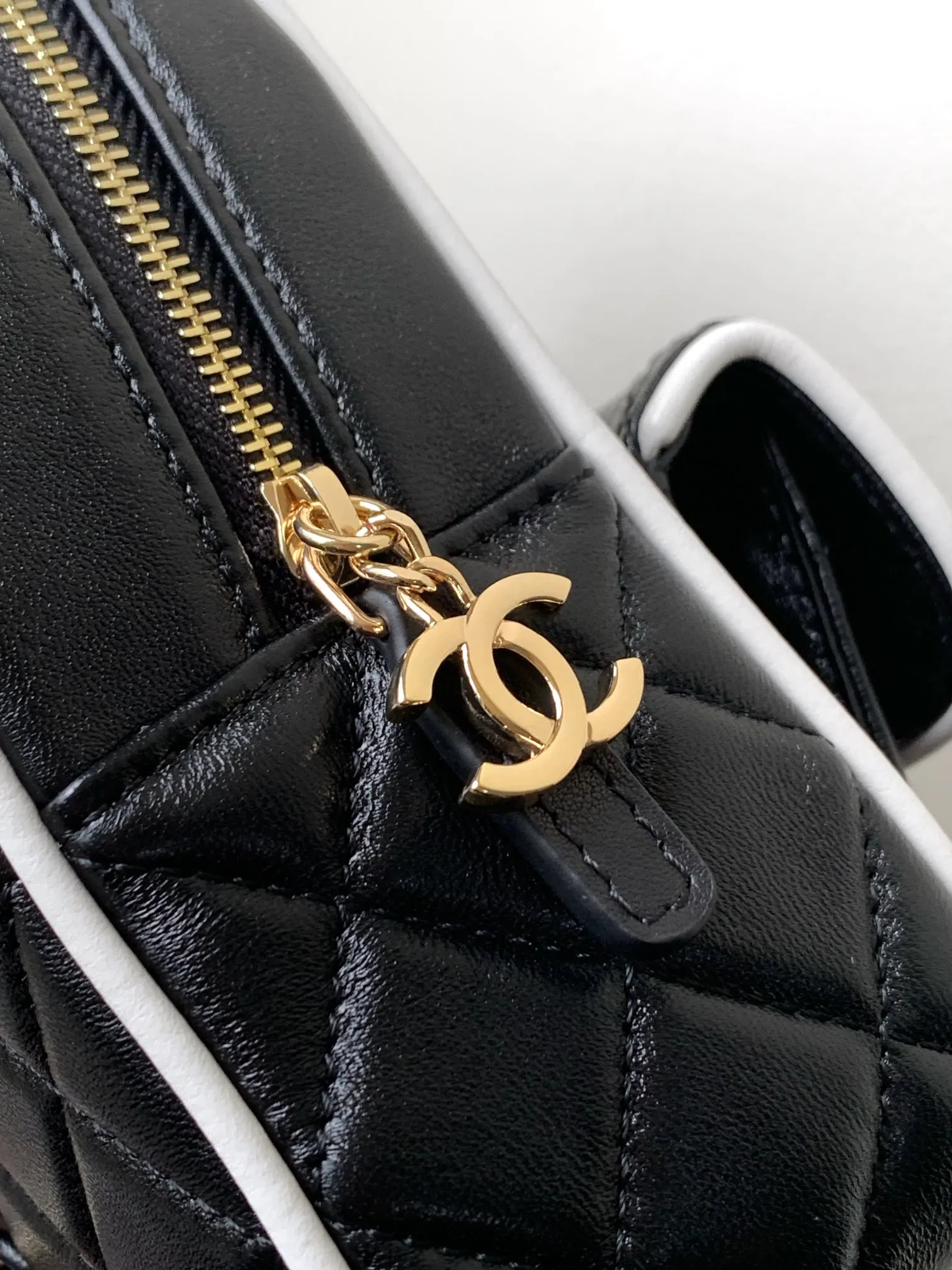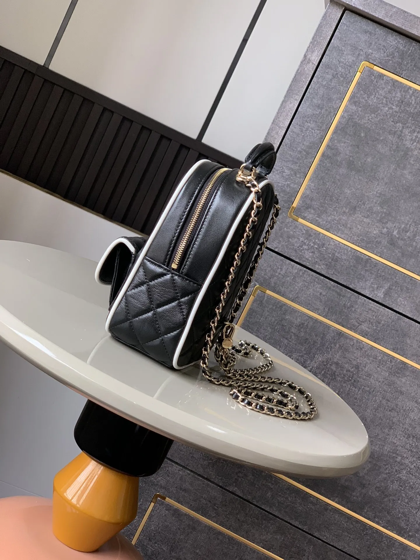 CHANELの25Pミニバックパックは、ブラックのキルティングデザインが特徴的なクラシックなアイテムです。3通りの背負い方が可能で、内部には2つのカードスロット、外側には大容量のコインポケットを備えています。オートロック付きのボタンで安心、調節可能なショルダーストラップで使い勝手も抜群です。荔枝皮素材のオリジナル正品で、サイズは18×13×9cmです。このような高品質なデザインをお探しの方には、N級品もおすすめです。