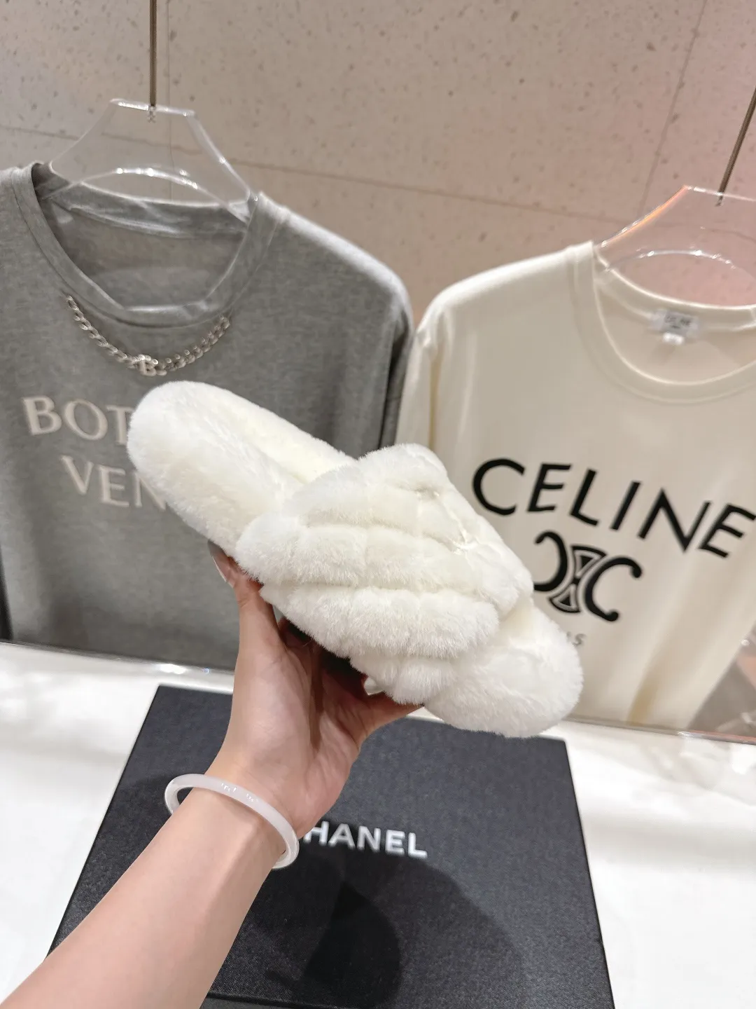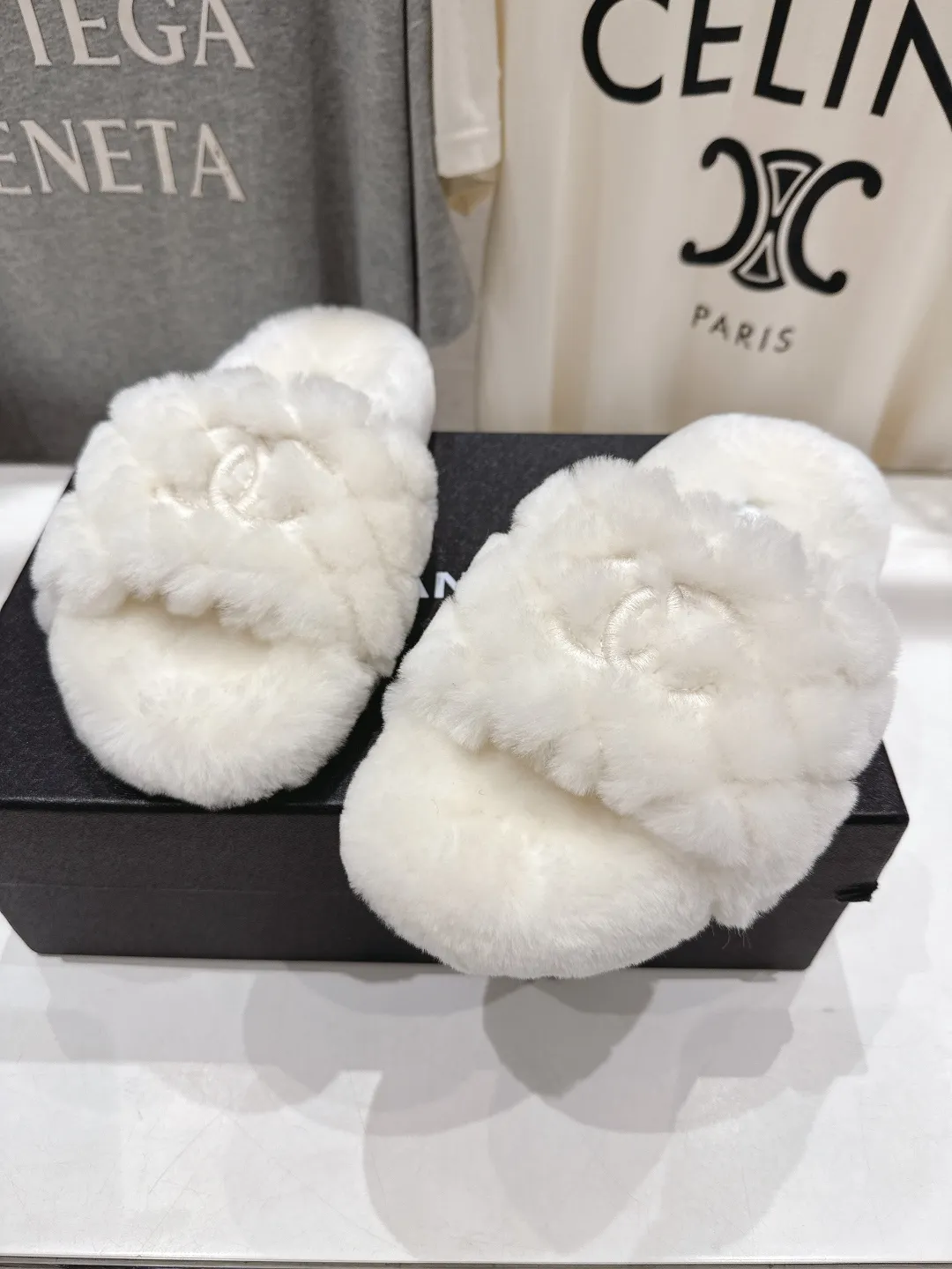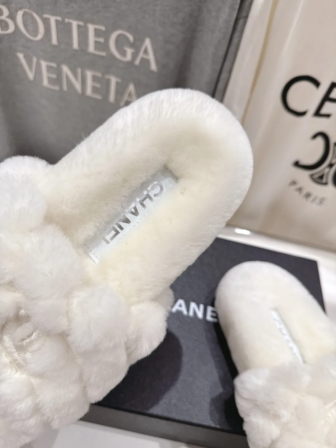 CHANEL 白毛皮のスリッパ新作レトロスタイル
