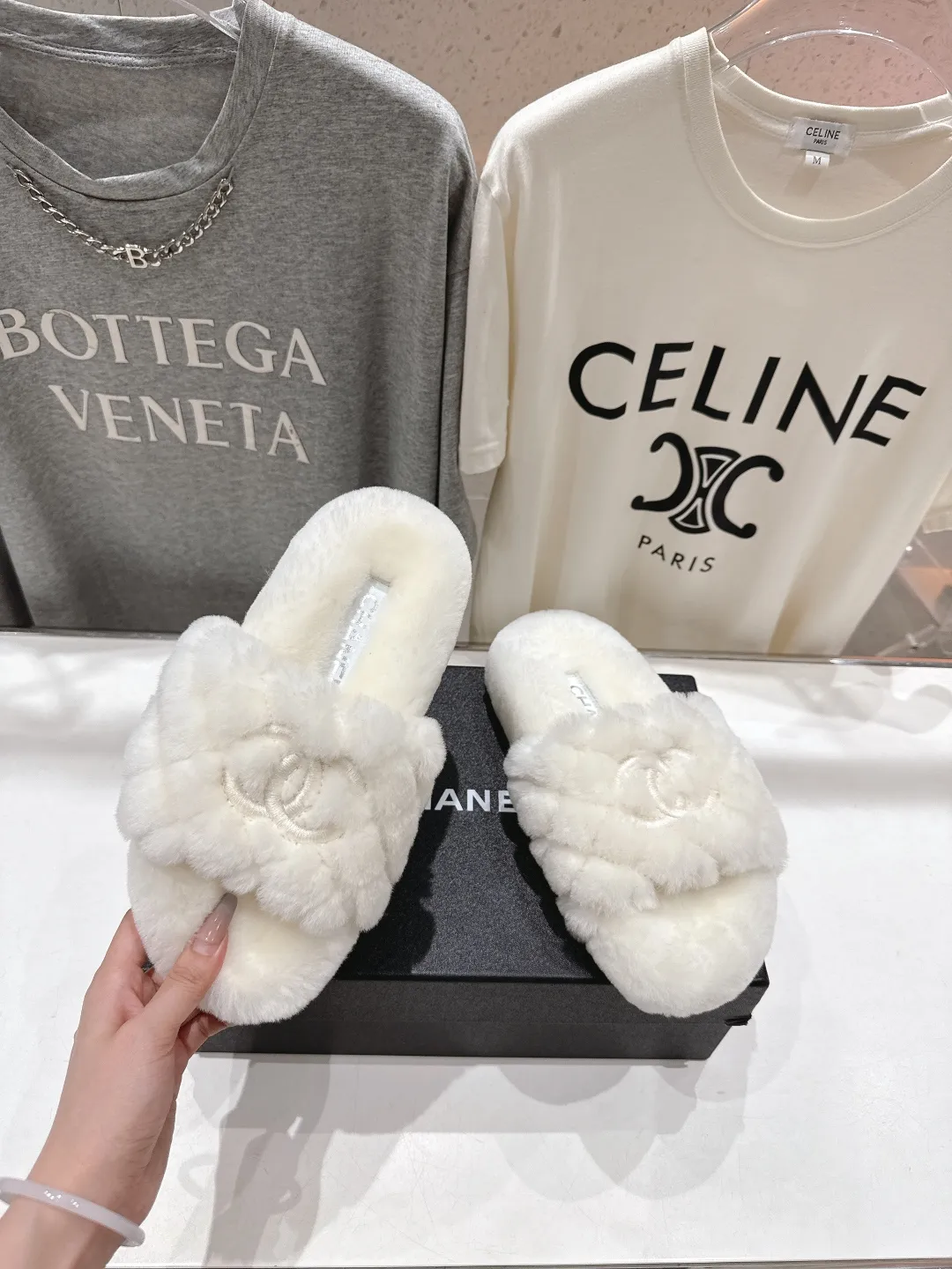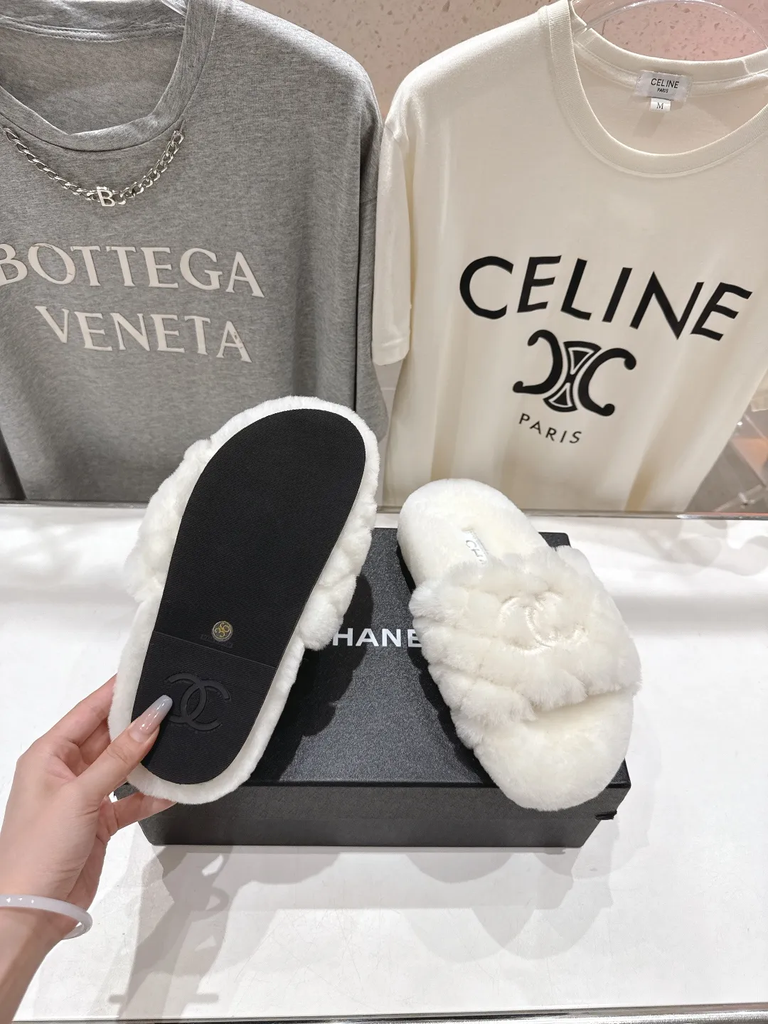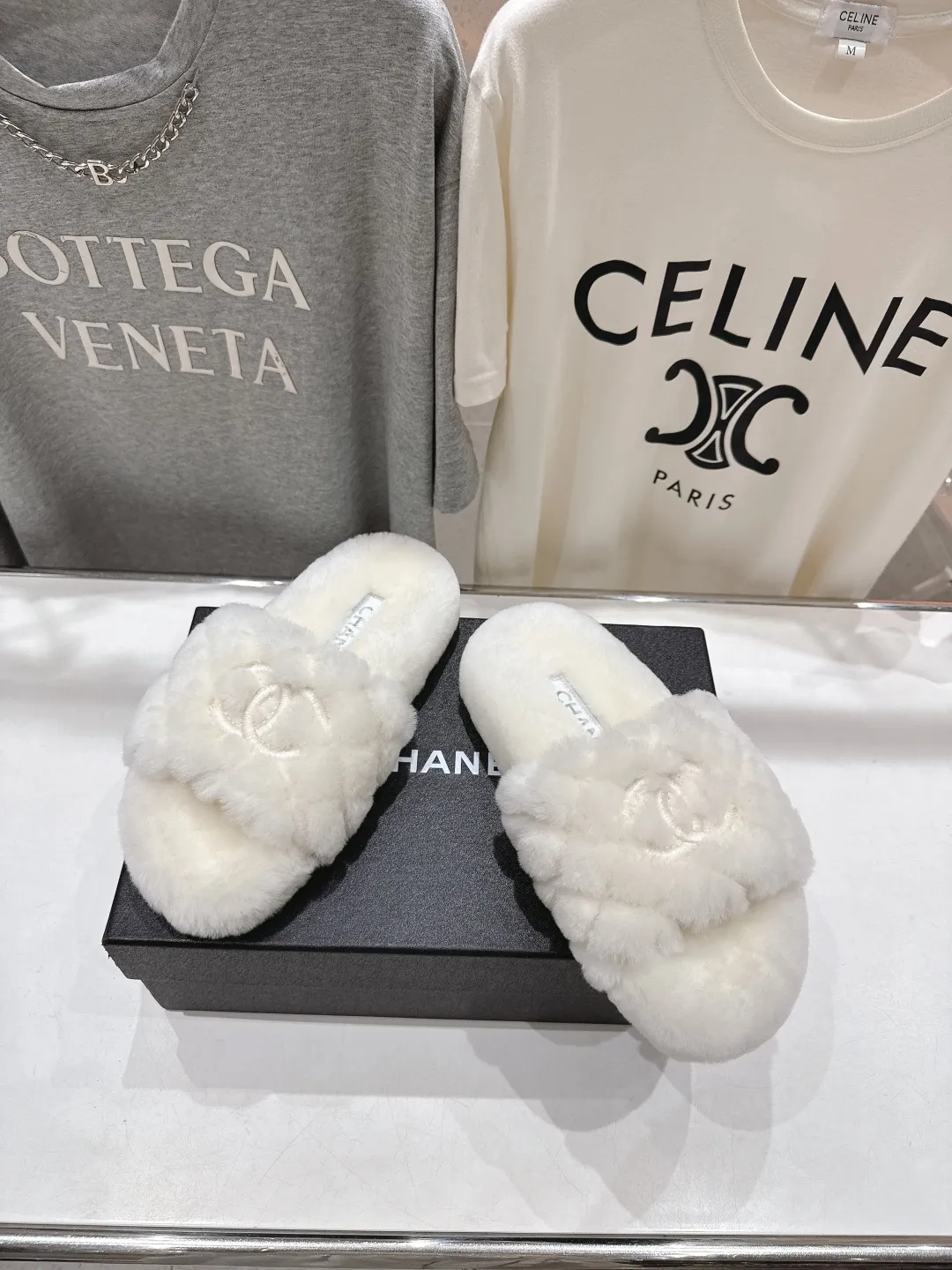 CHANEL 白毛皮のスリッパ新作レトロスタイル