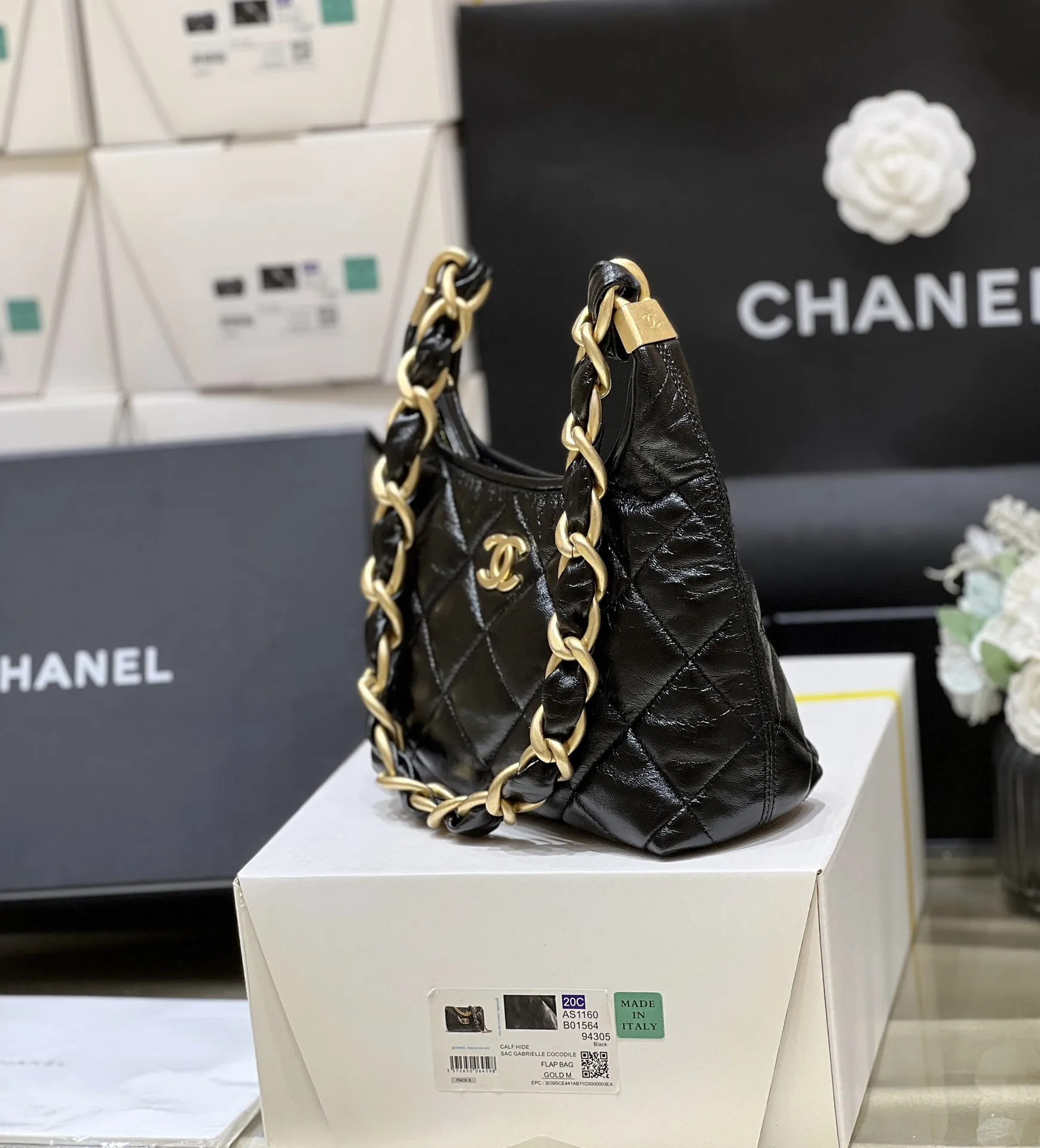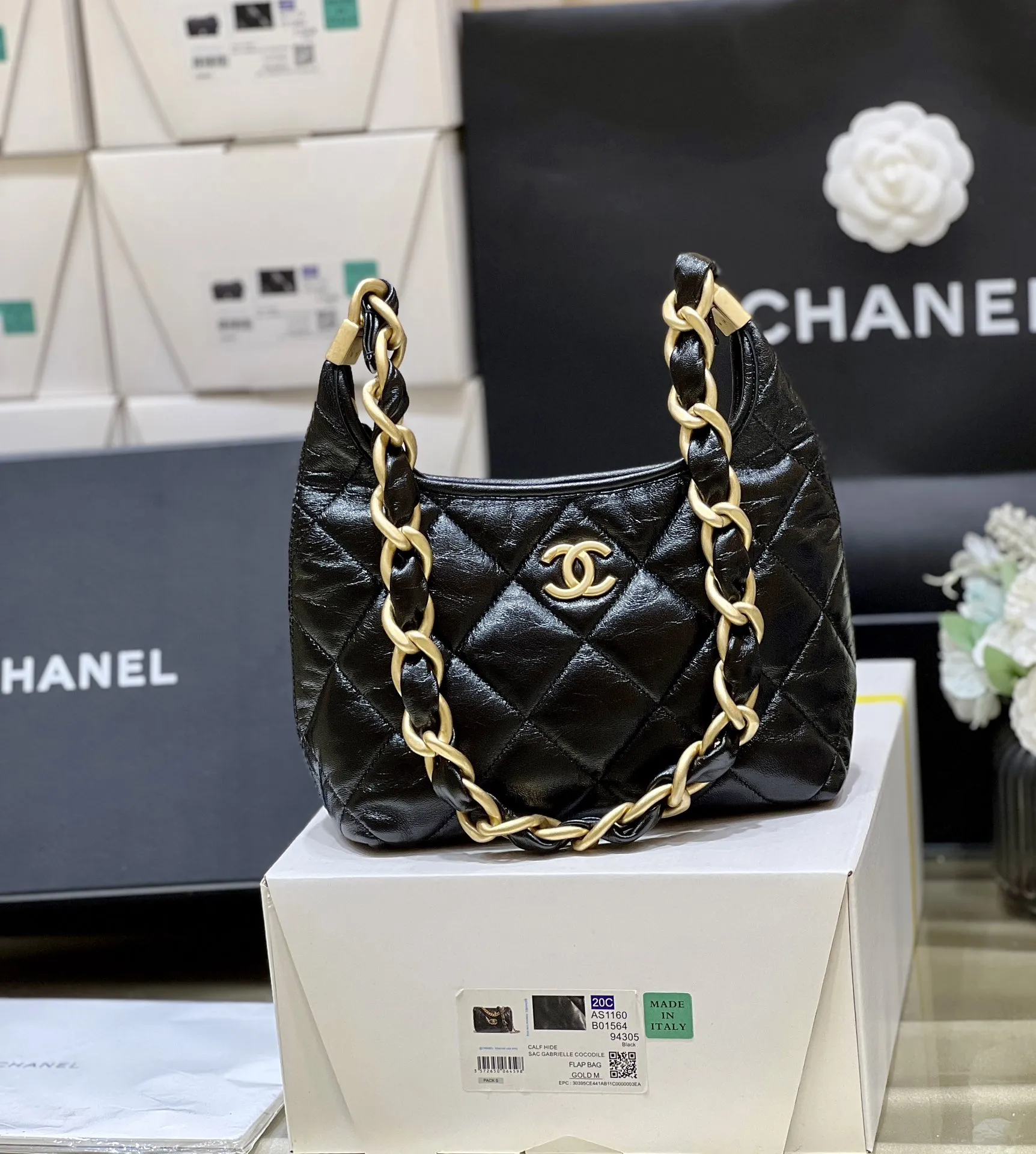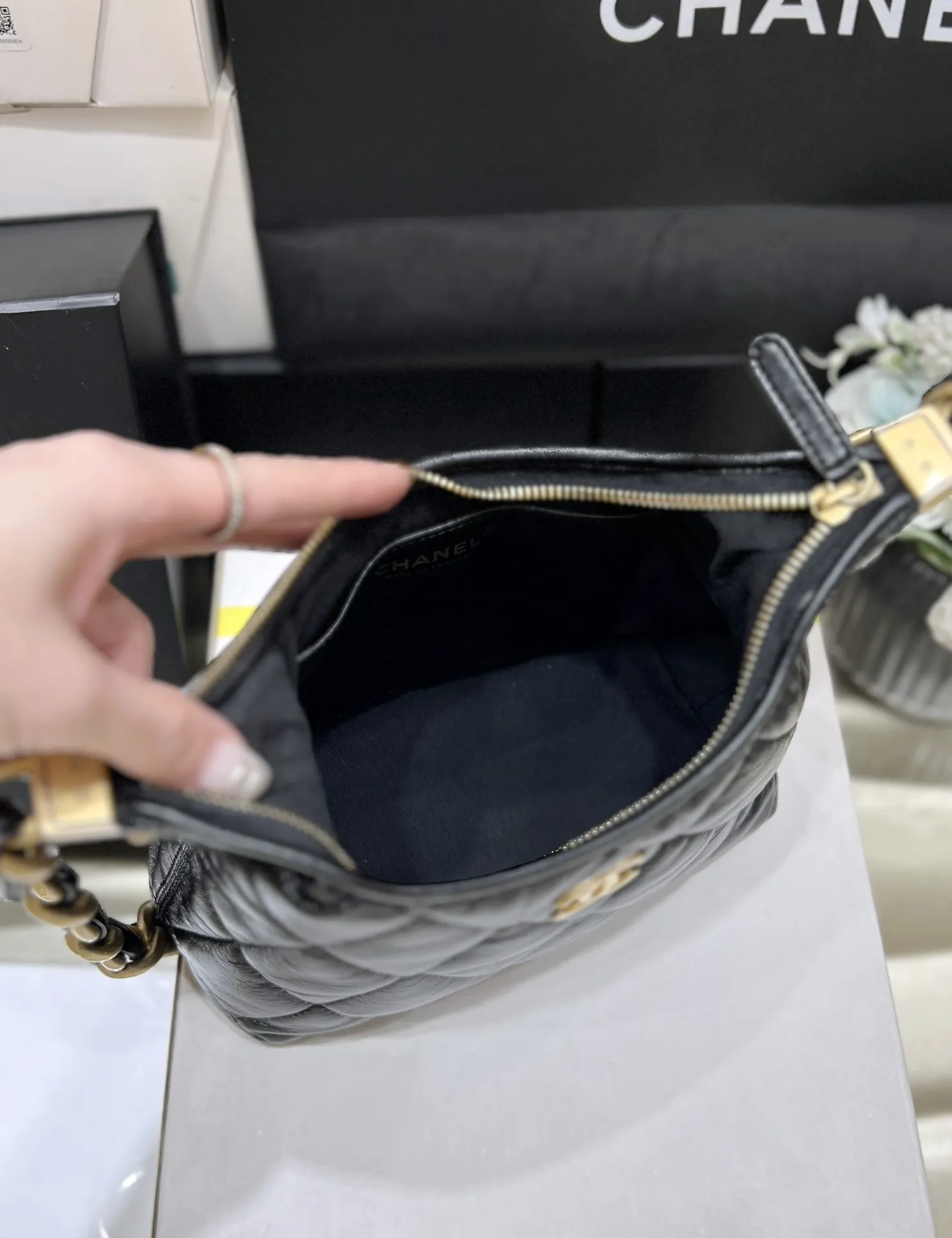 CHANELのブラックキルティングバッグは、ゴールドチェーンがアクセントのエレガントなデザインです。フロントに輝くCCロゴが施され、東京の洗練されたスタイルを体現します。サイズは幅25cm、高さ18cm、奥行き10cmで、日常使いから特別なシーンまで幅広く活躍します。このようなスーパーコピーバッグは、上質なデザインをお求めの方に最適です。