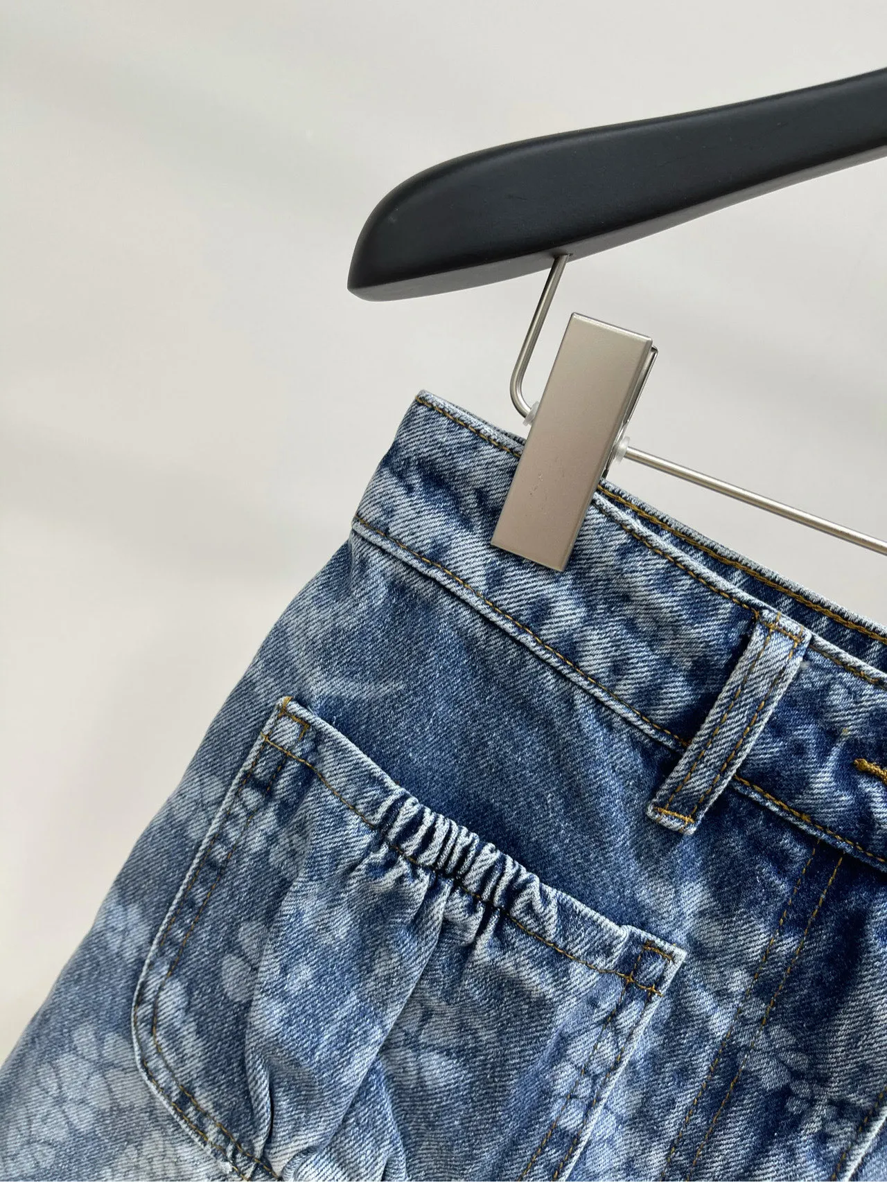 CHANEL 25Pシリーズ パールチェーンプリント ワイドデニム ライトブルー
