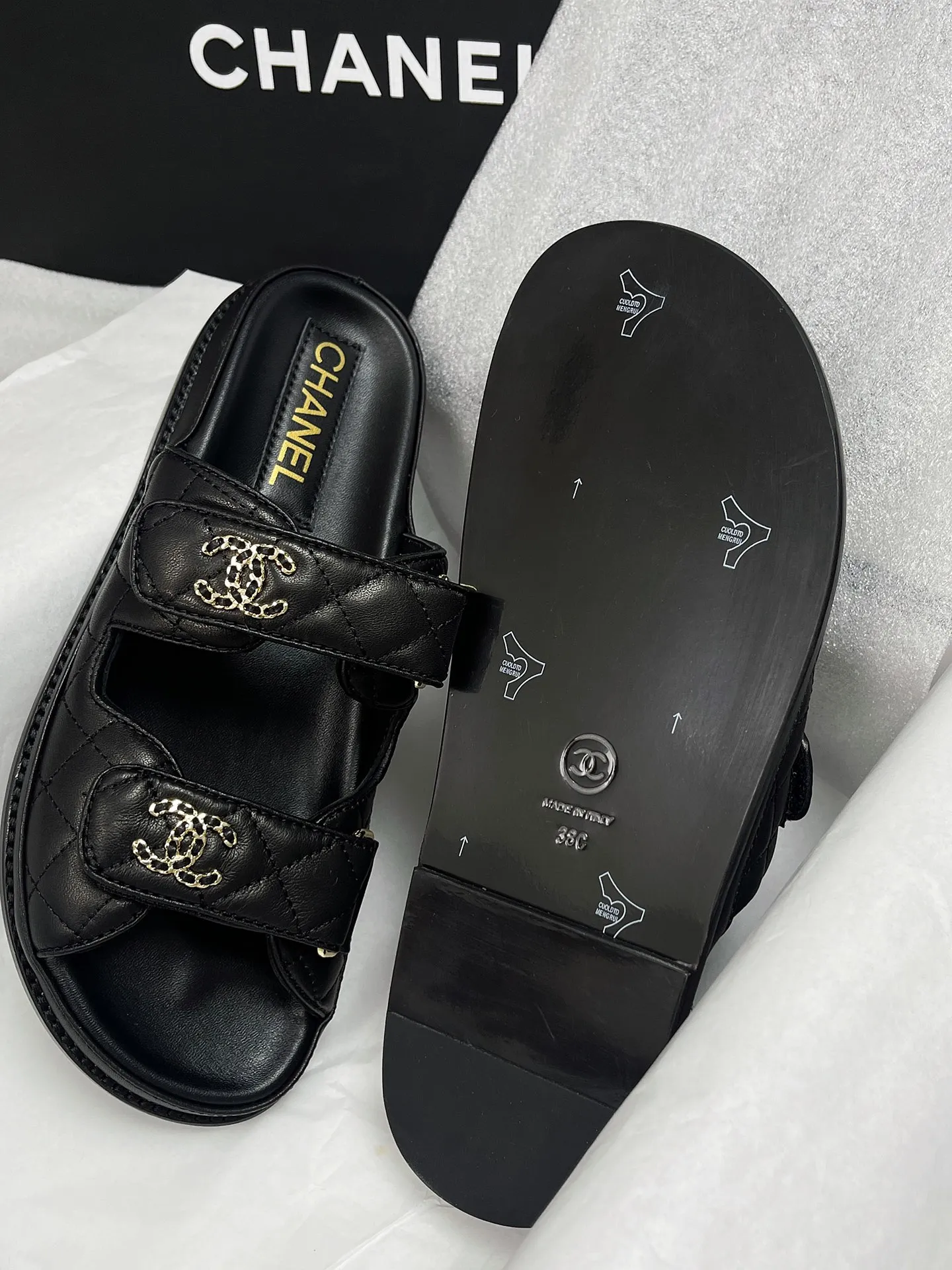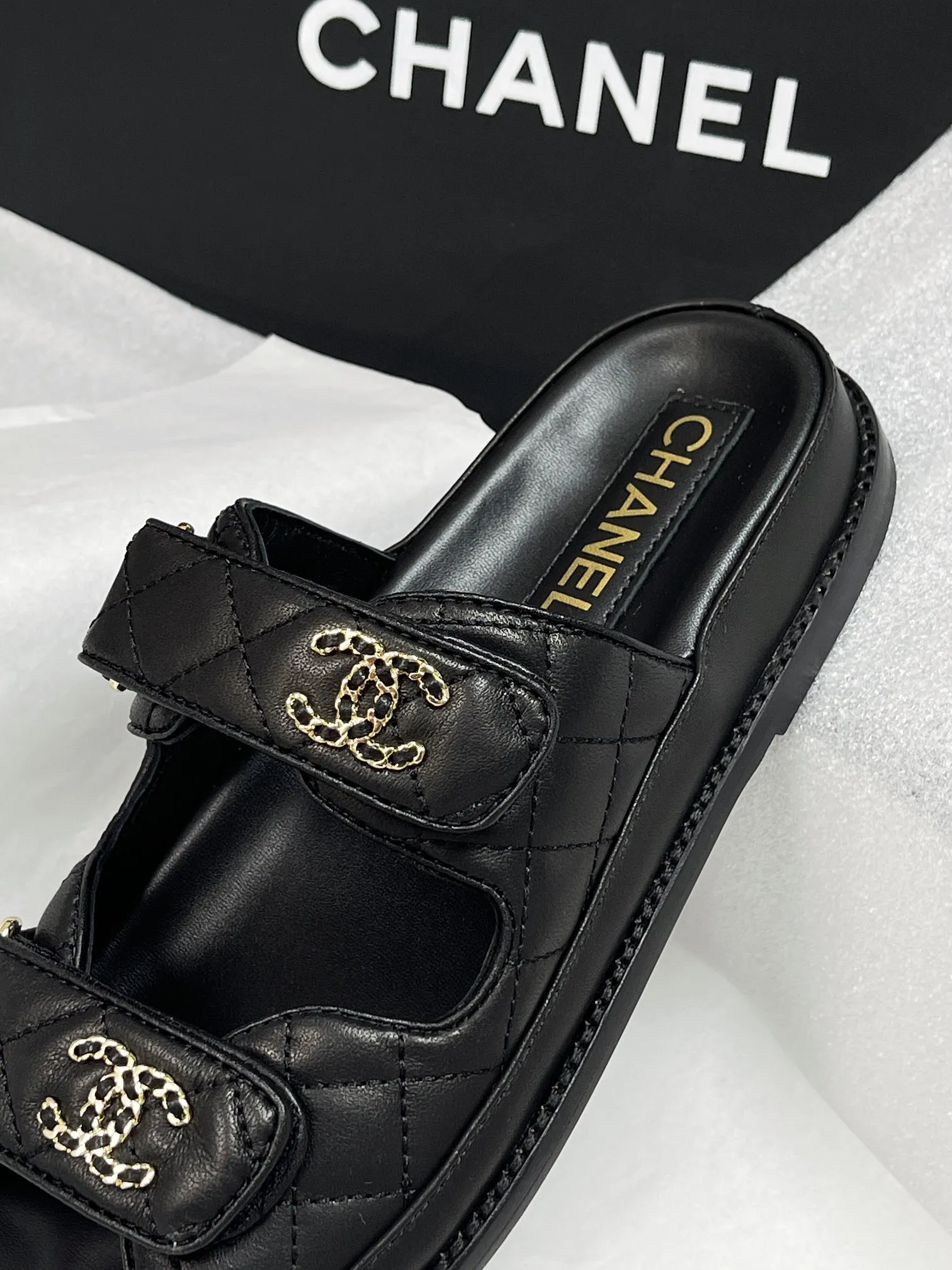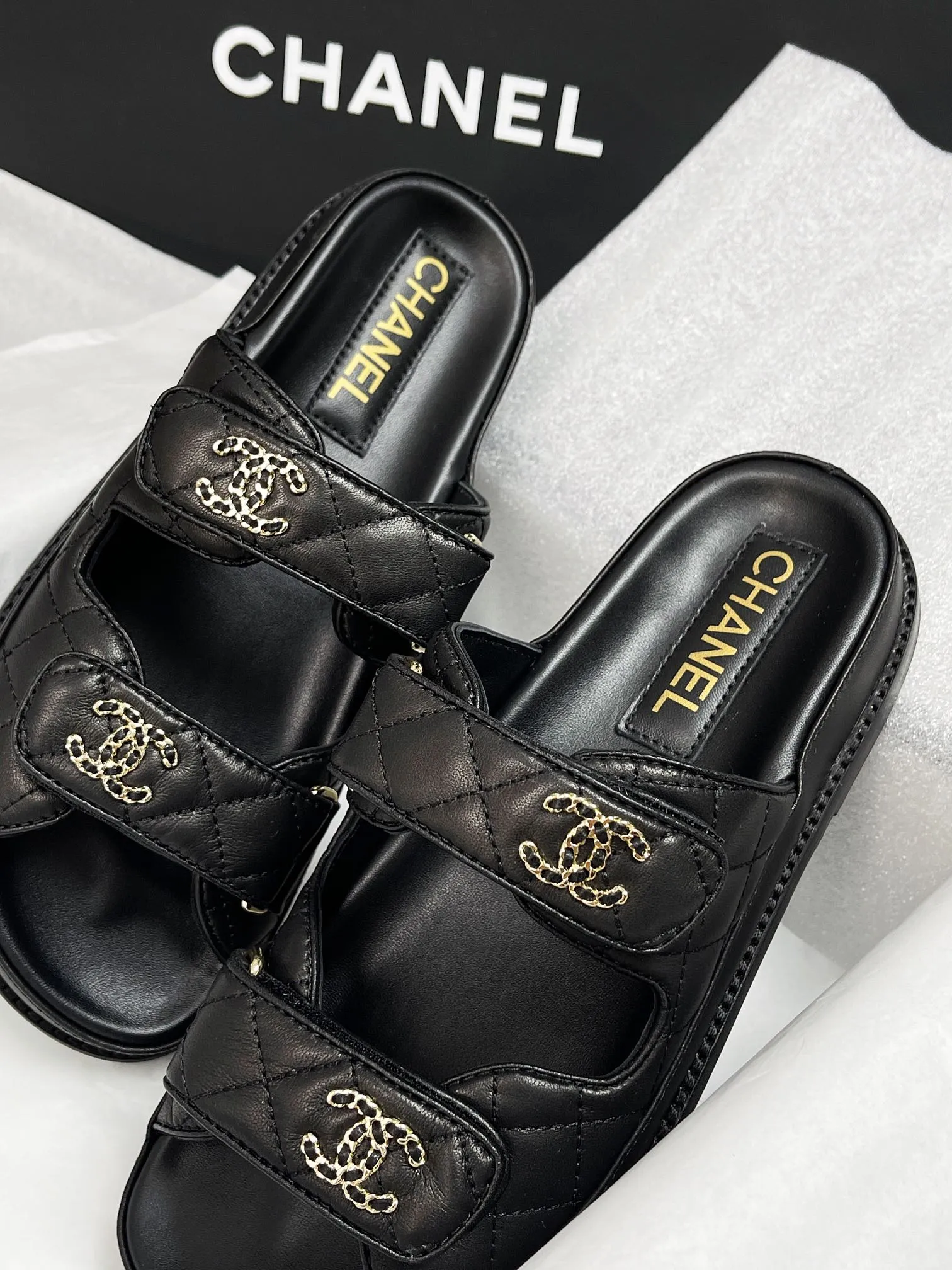 CHANELの新作スリッパは、レトロなローマデザインと高級感あふれる黒色が特徴です。魔術テープで着脱が簡単で、ソックスと合わせてもおしゃれに決まります。スタイリッシュな外観と快適な履き心地を兼ね備えた、完璧な一足です。このような高品質なアイテムをお探しの方には、スーパー コピーの商品もおすすめです。