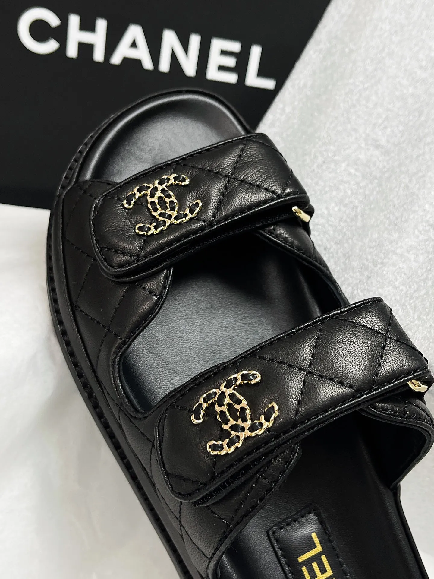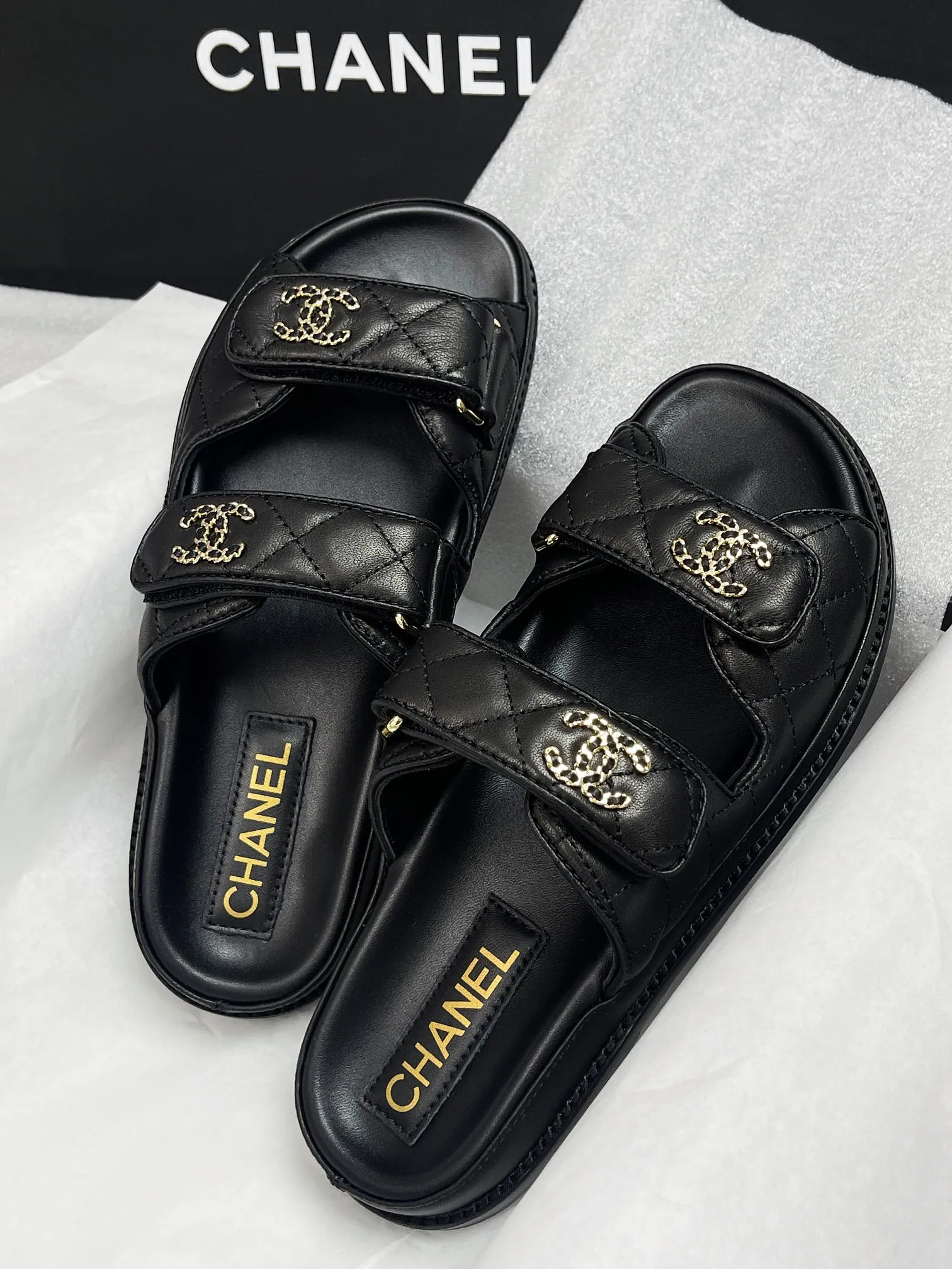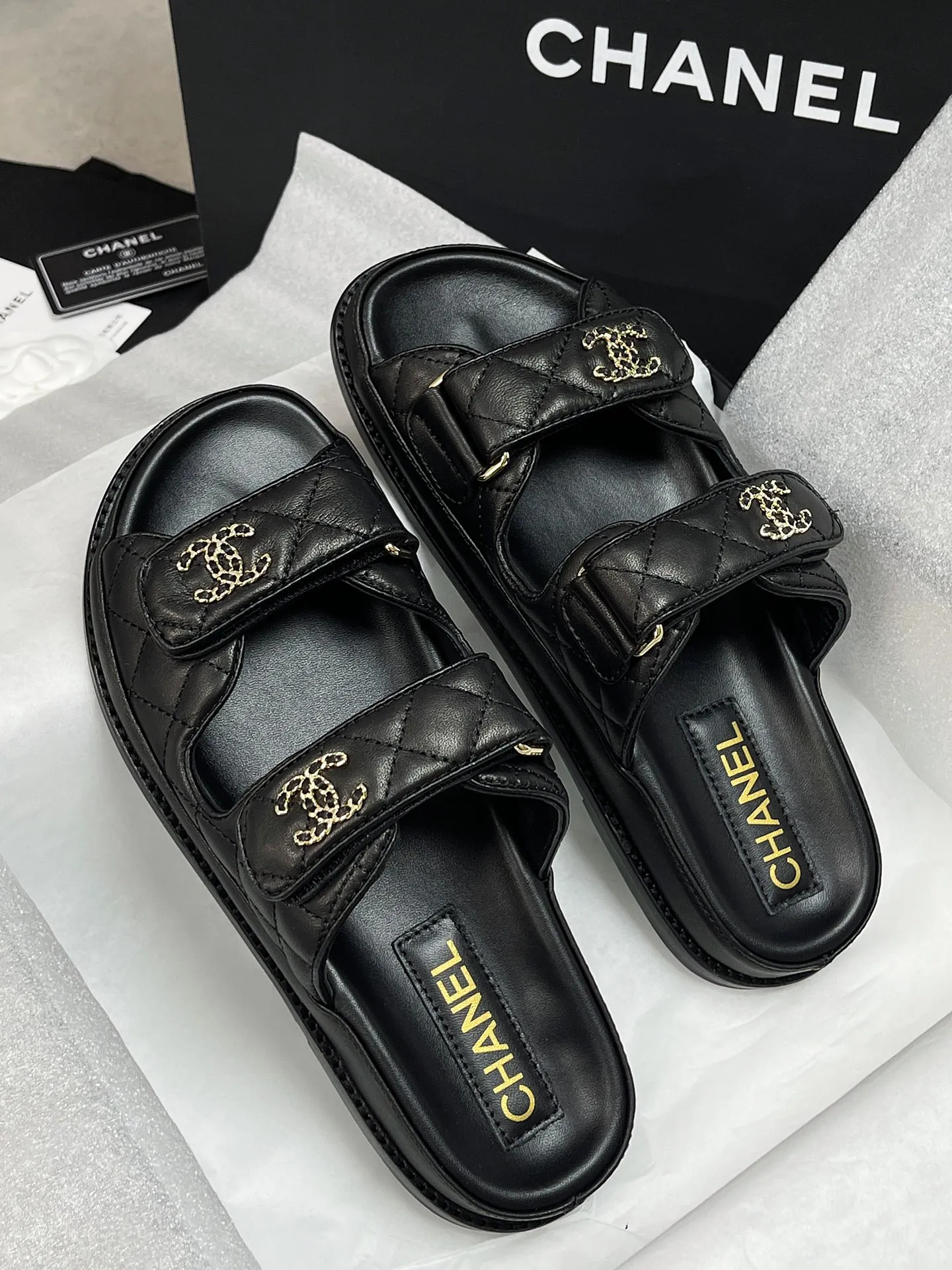 CHANELの新作スリッパは、レトロなローマデザインと高級感あふれる黒色が特徴です。魔術テープで着脱が簡単で、ソックスと合わせてもおしゃれに決まります。スタイリッシュな外観と快適な履き心地を兼ね備えた、完璧な一足です。このような高品質なアイテムをお探しの方には、スーパー コピーの商品もおすすめです。