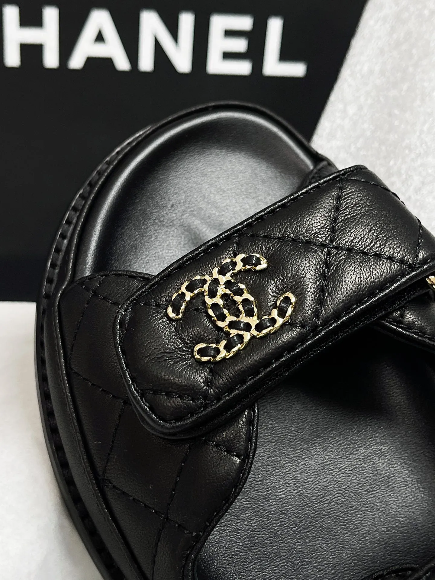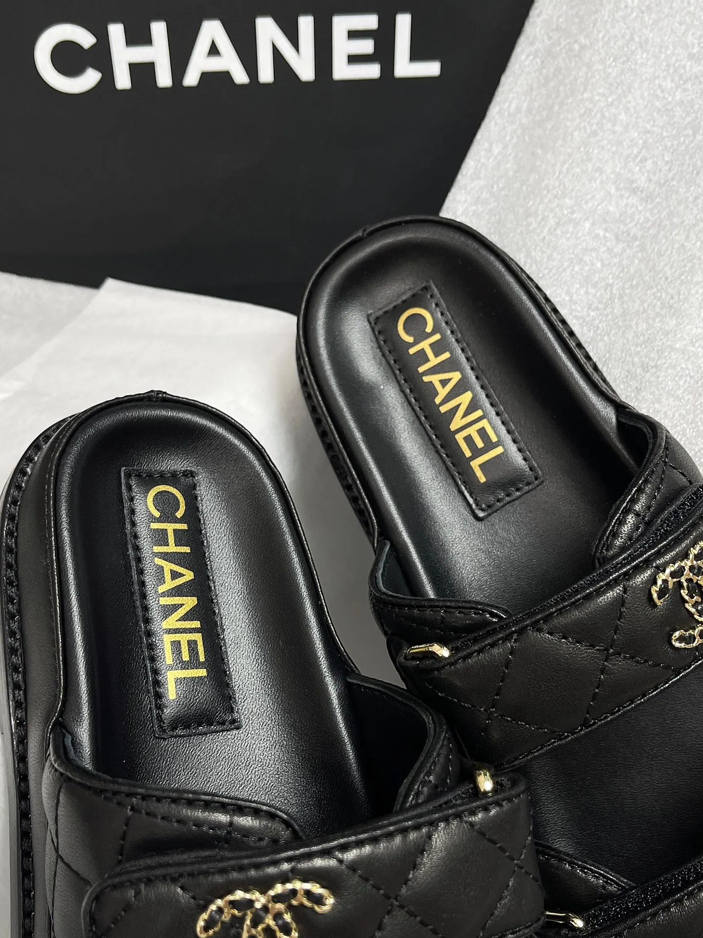 Chanel 新作ブルースリッパ ダブルC菱格デザイン