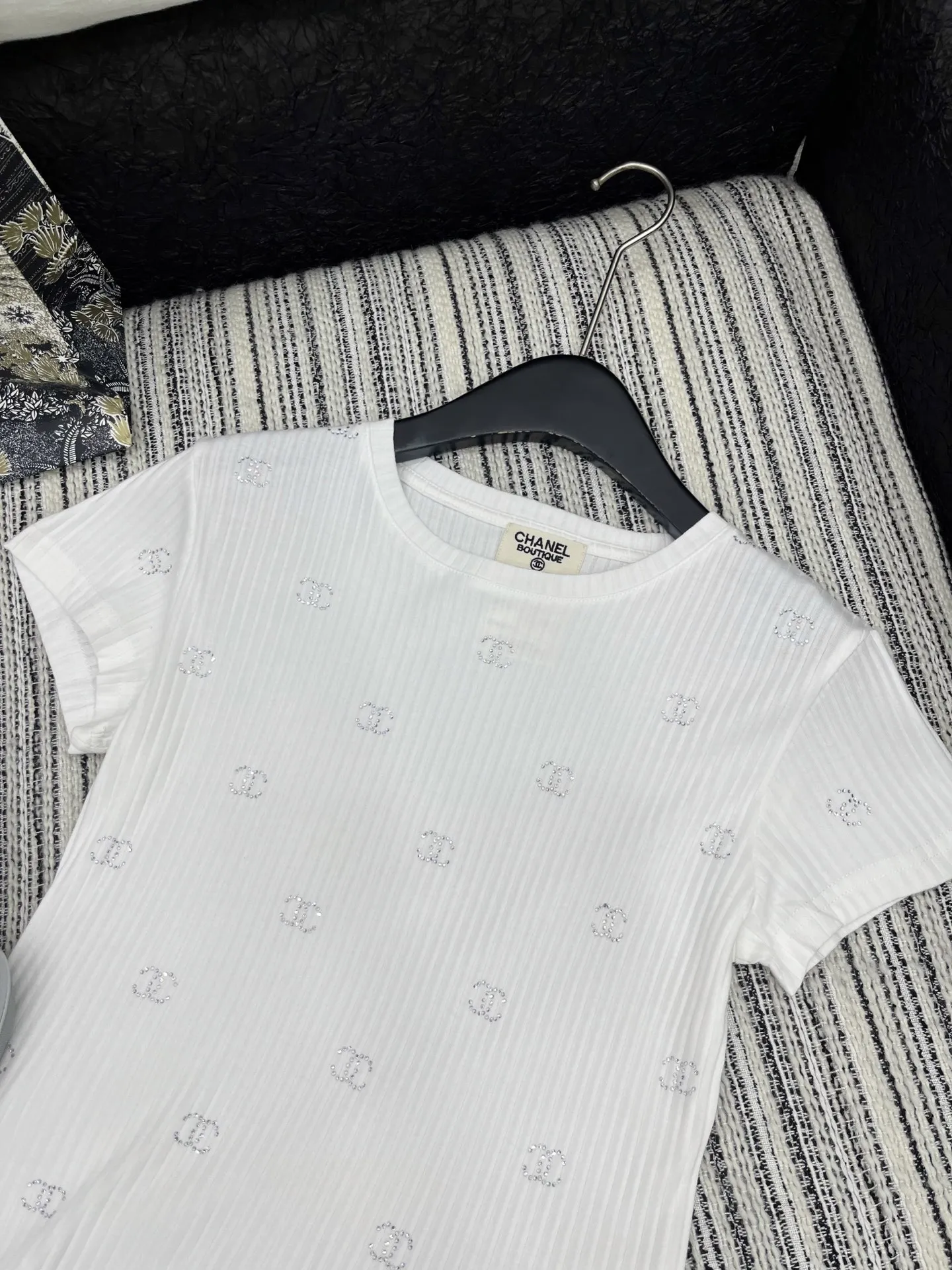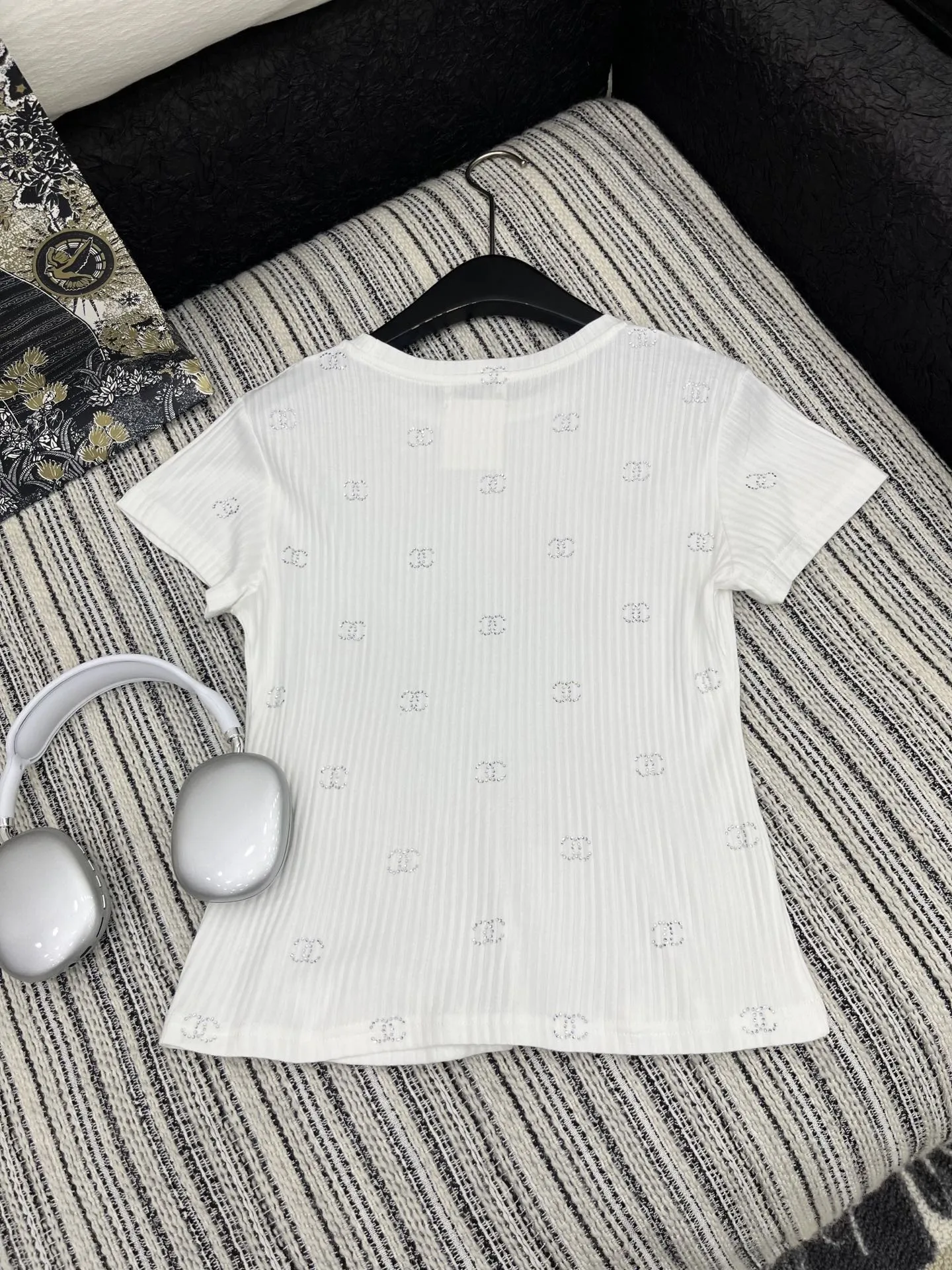 CHANEL新作白色手工ホットダイヤモンド半袖Tシャツ