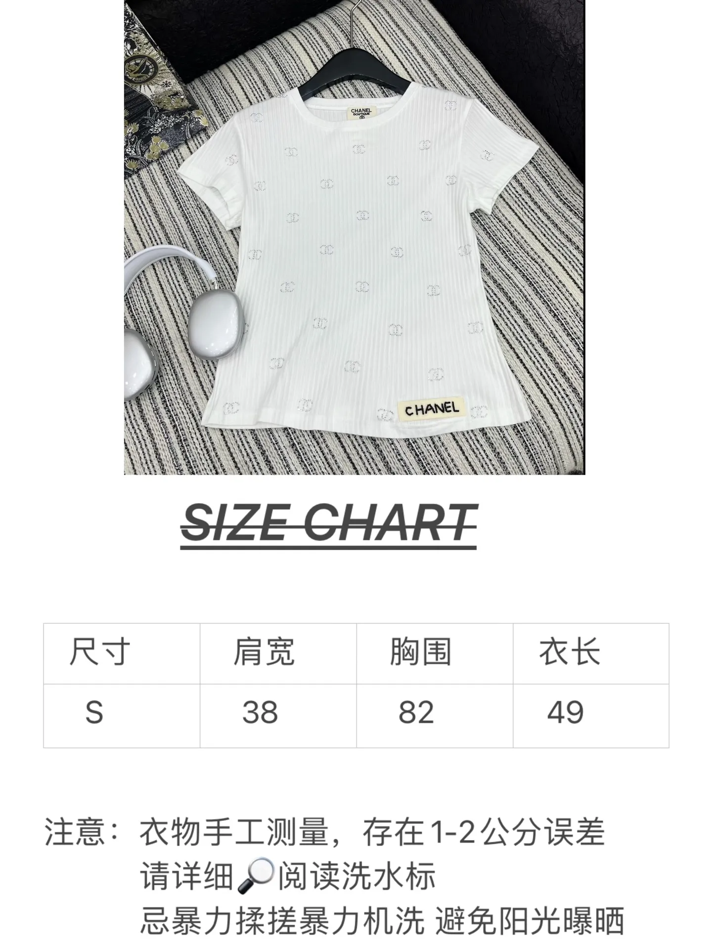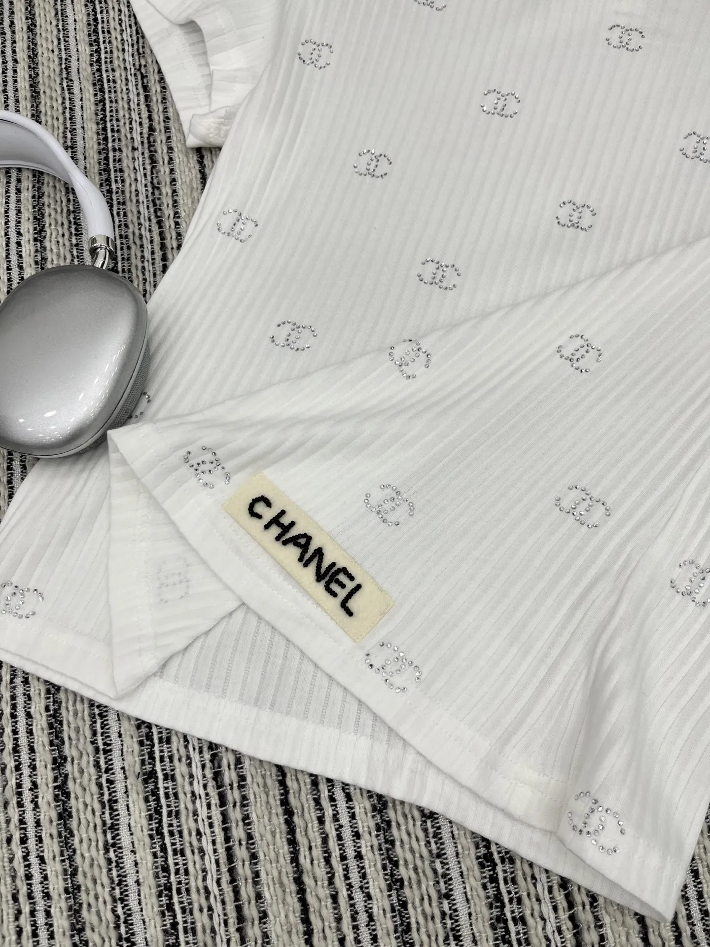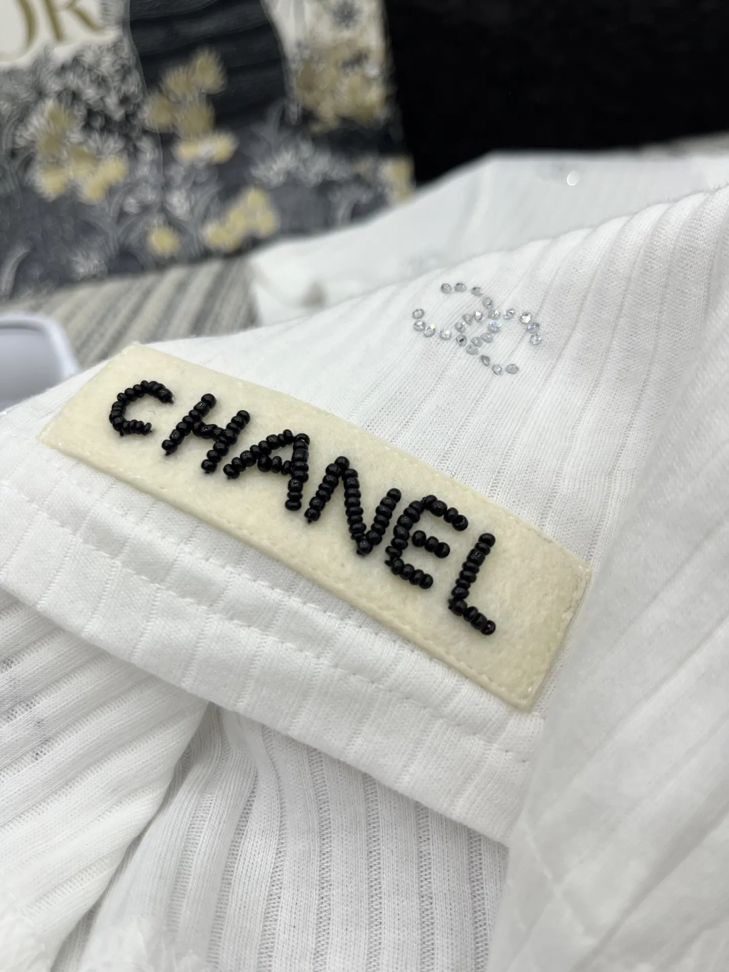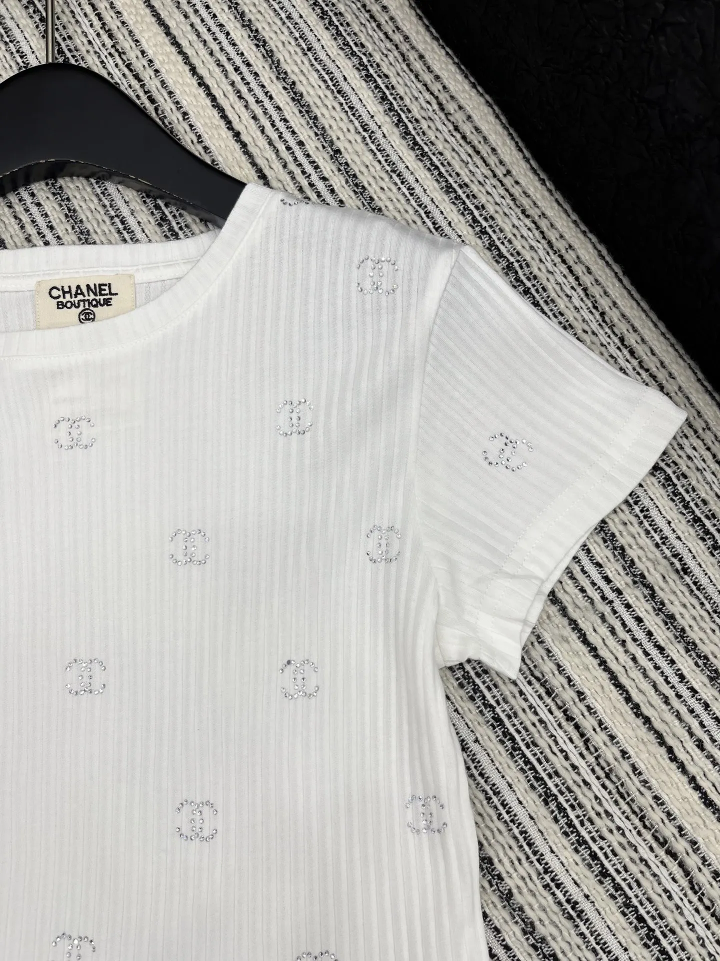 CHANEL新作白色手工烫钻半袖Tシャツ