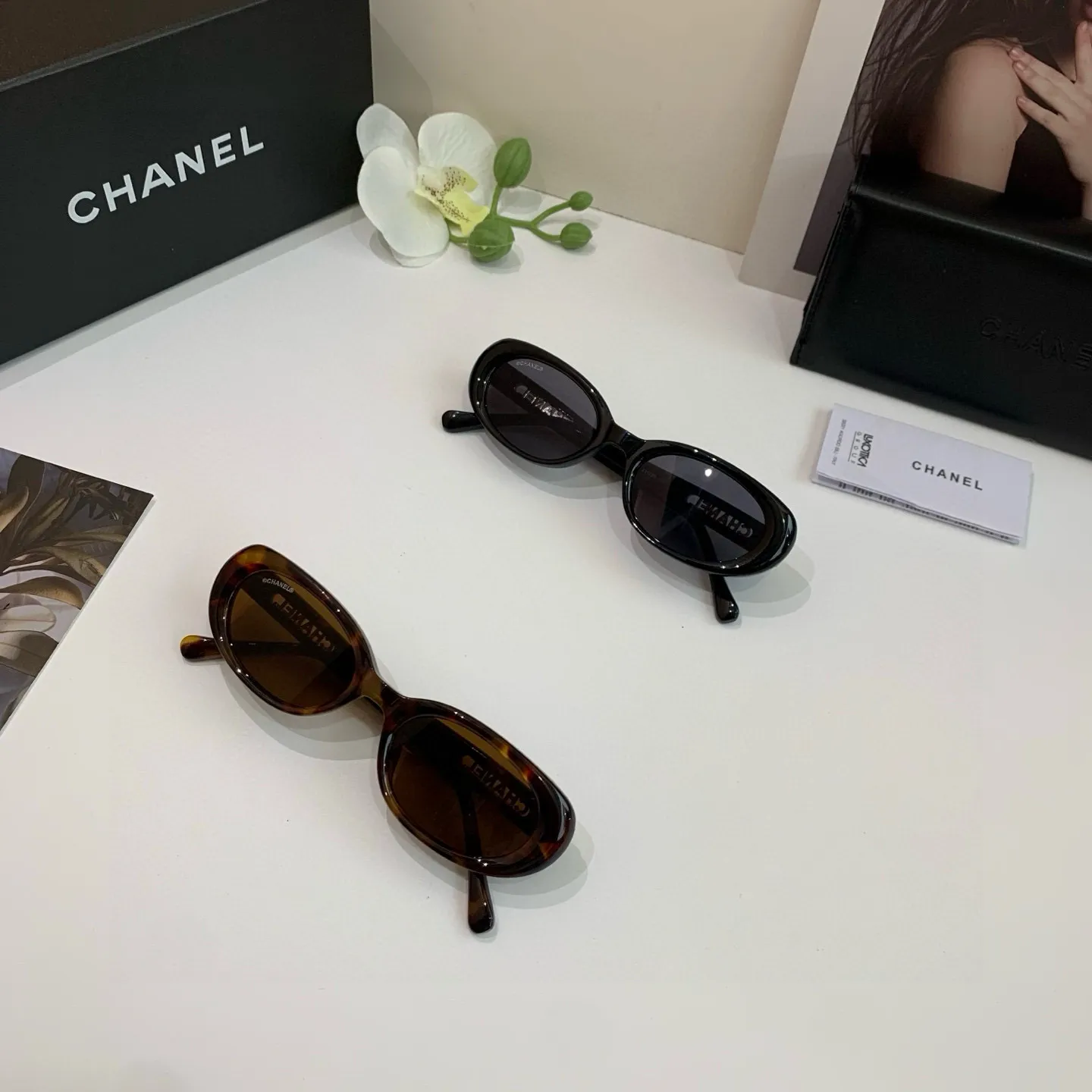 シャネル新作白黒キャッツアイサングラス
