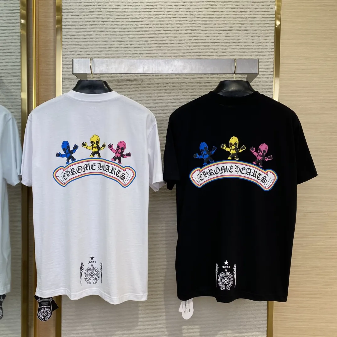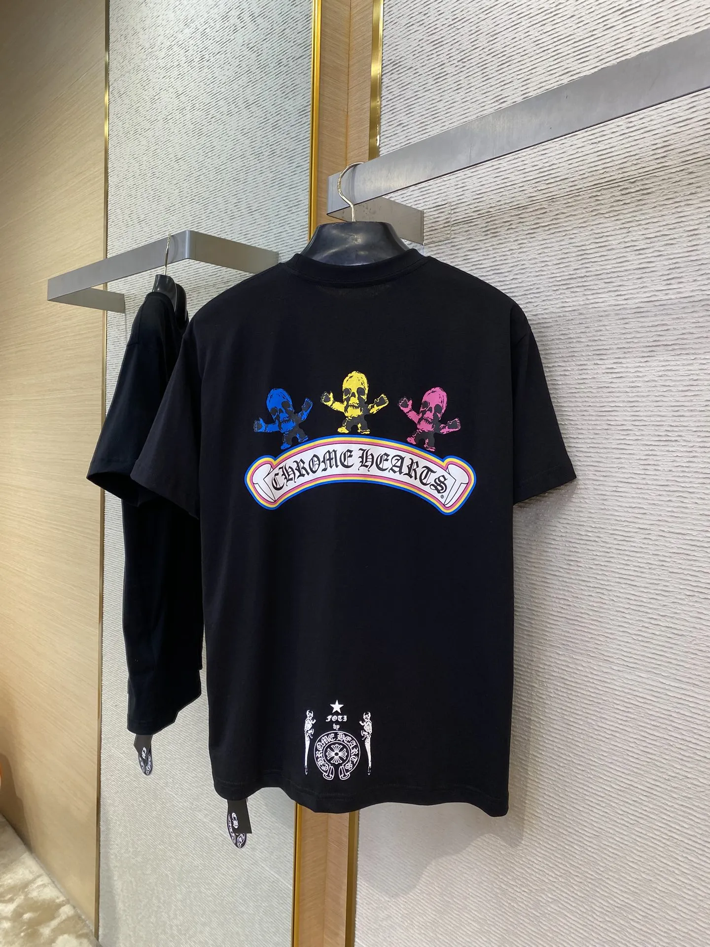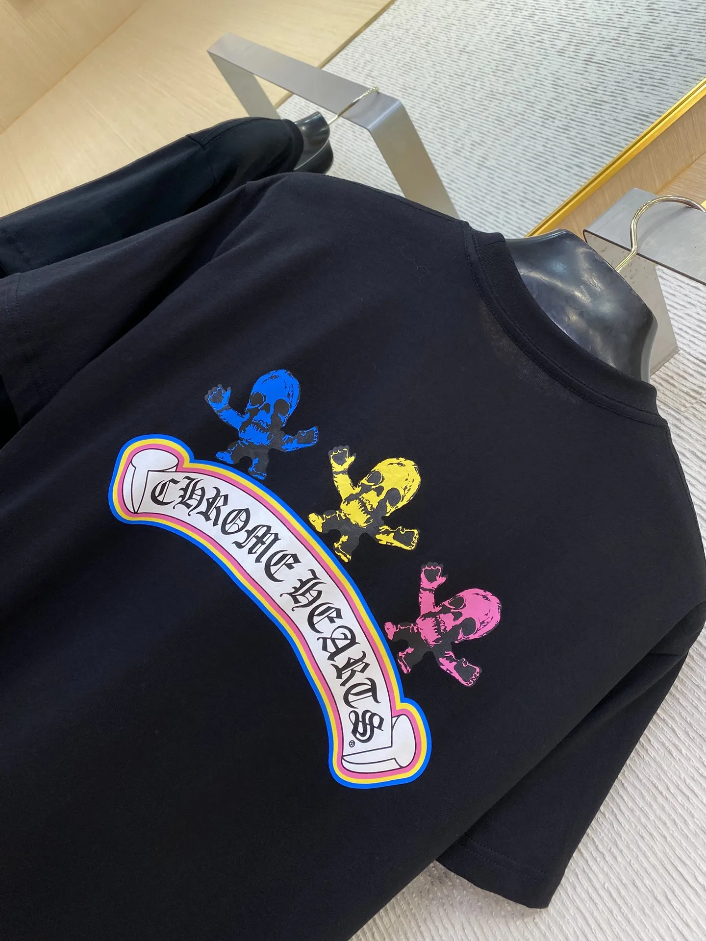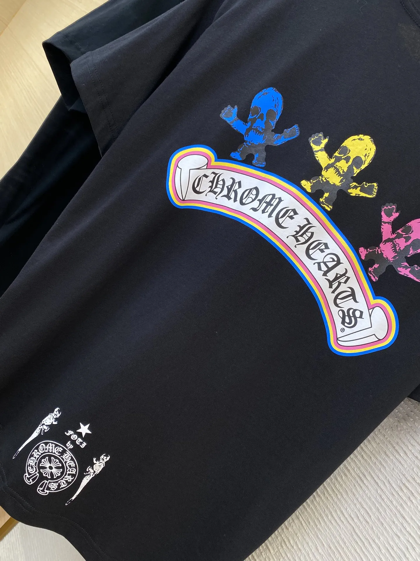 CHクロスハートカラースカルプリント半袖Tシャツ黒白