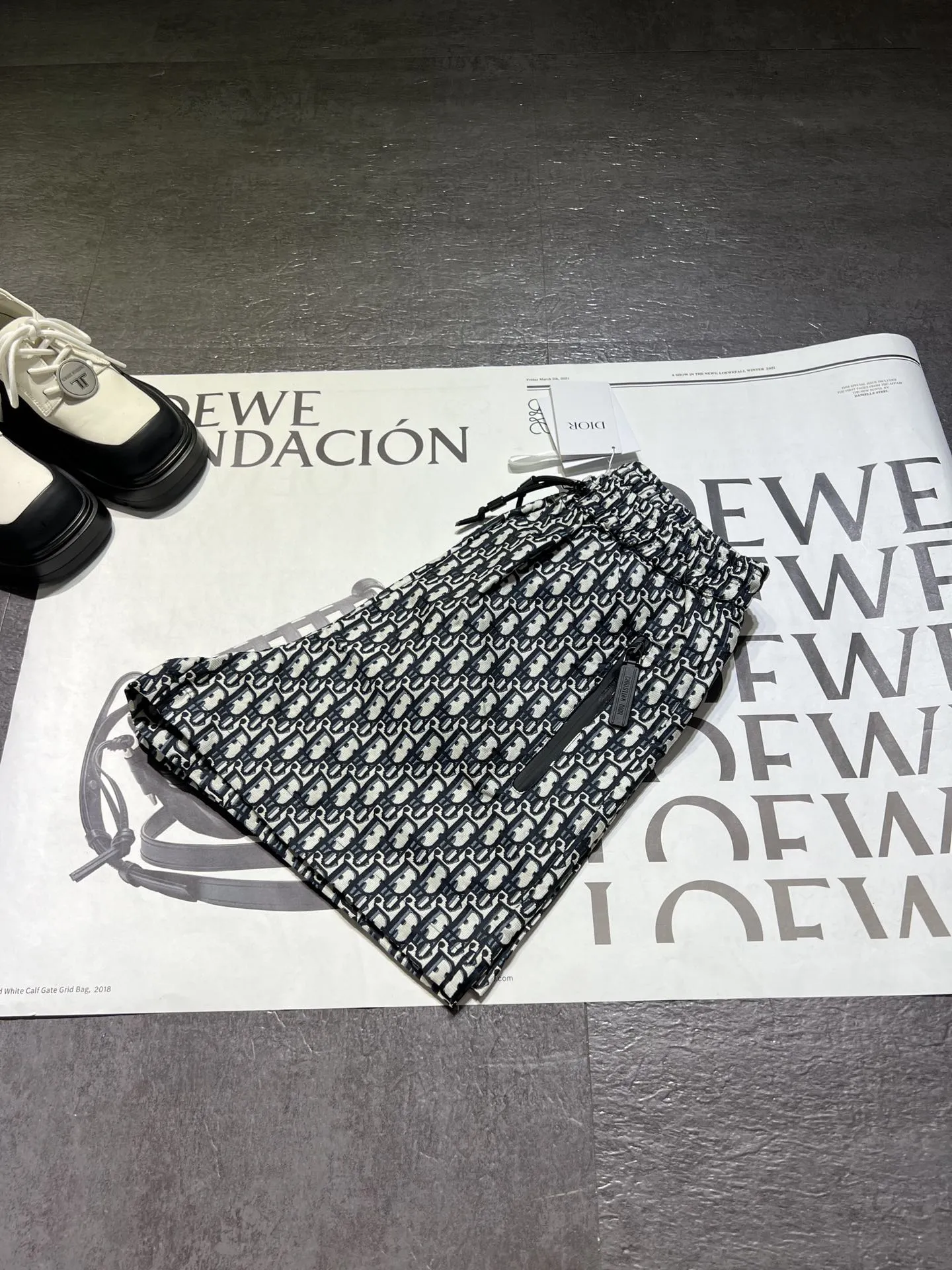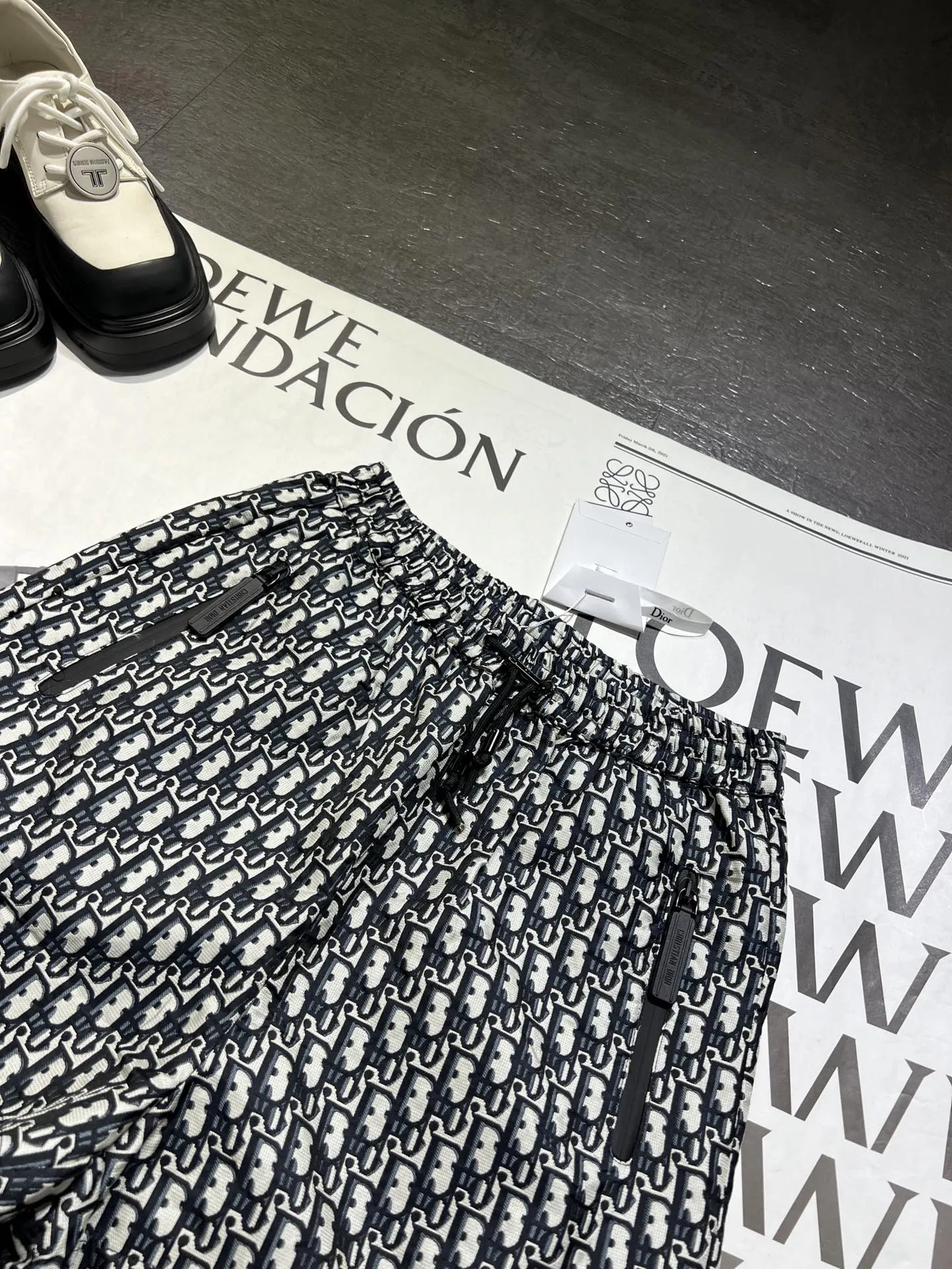 DIOR2025 グレー ボタン柄中ズボン