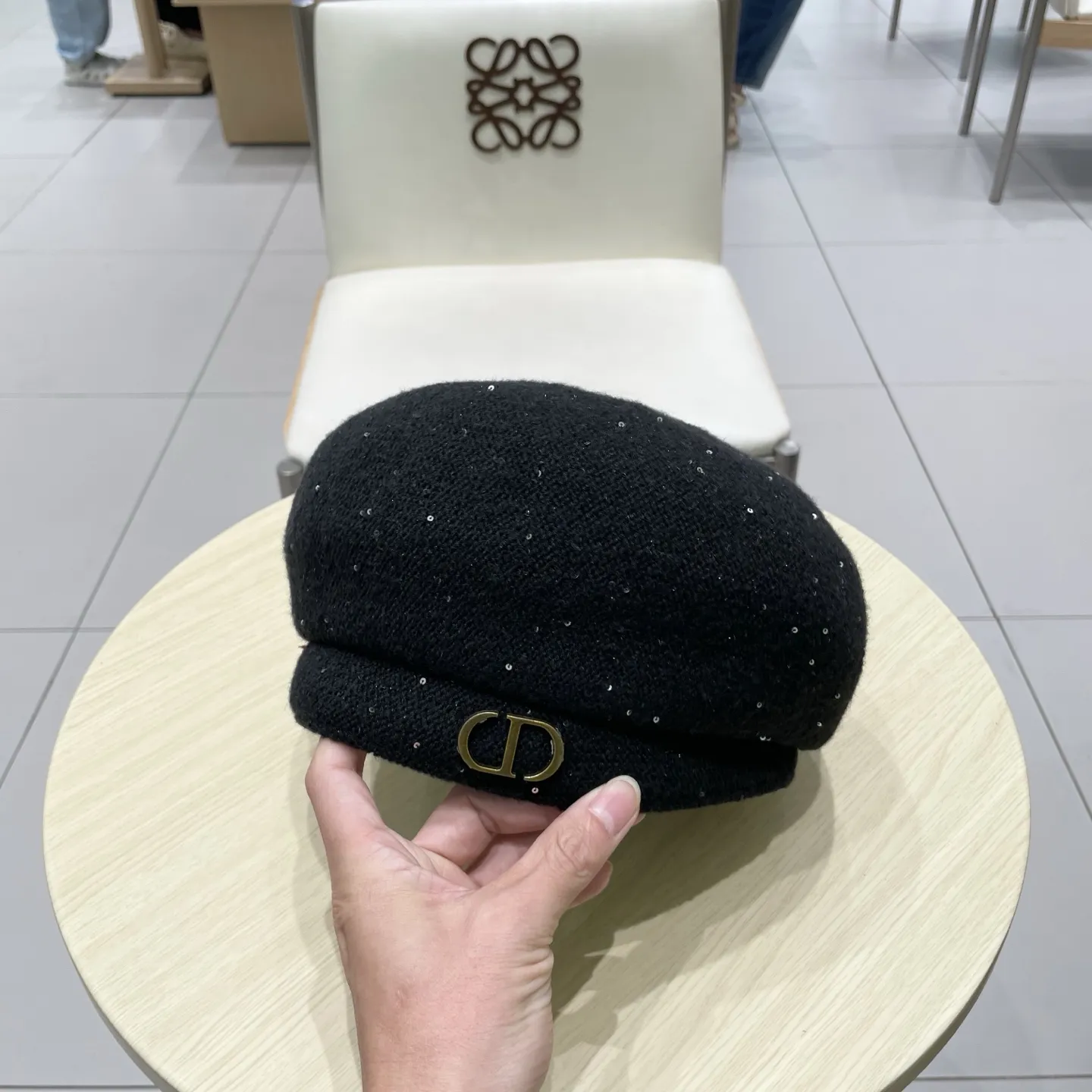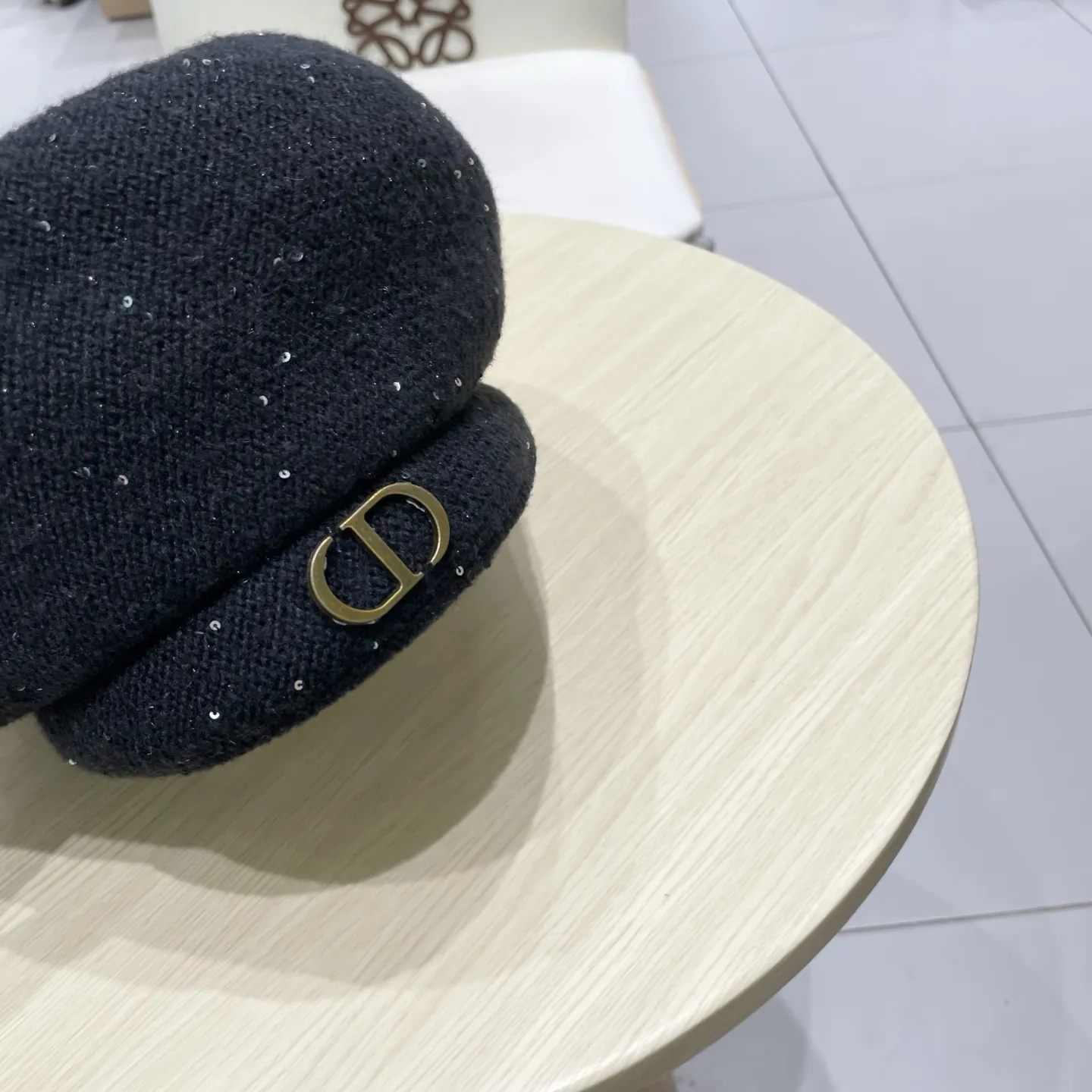 Christian Diorの2025新作、黒色の画家ベレー帽です。秋冬季にぴったりのデザインで、顔を小さく見せる効果があります。韓国の雰囲気を感じるスタイリッシュなスタイルで、高品質な羊毛素材を使用しています。DIORのロゴがさりげなく輝き、ファッショナブルな印象を与えるとともに、N級品としてのクオリティを感じさせます。