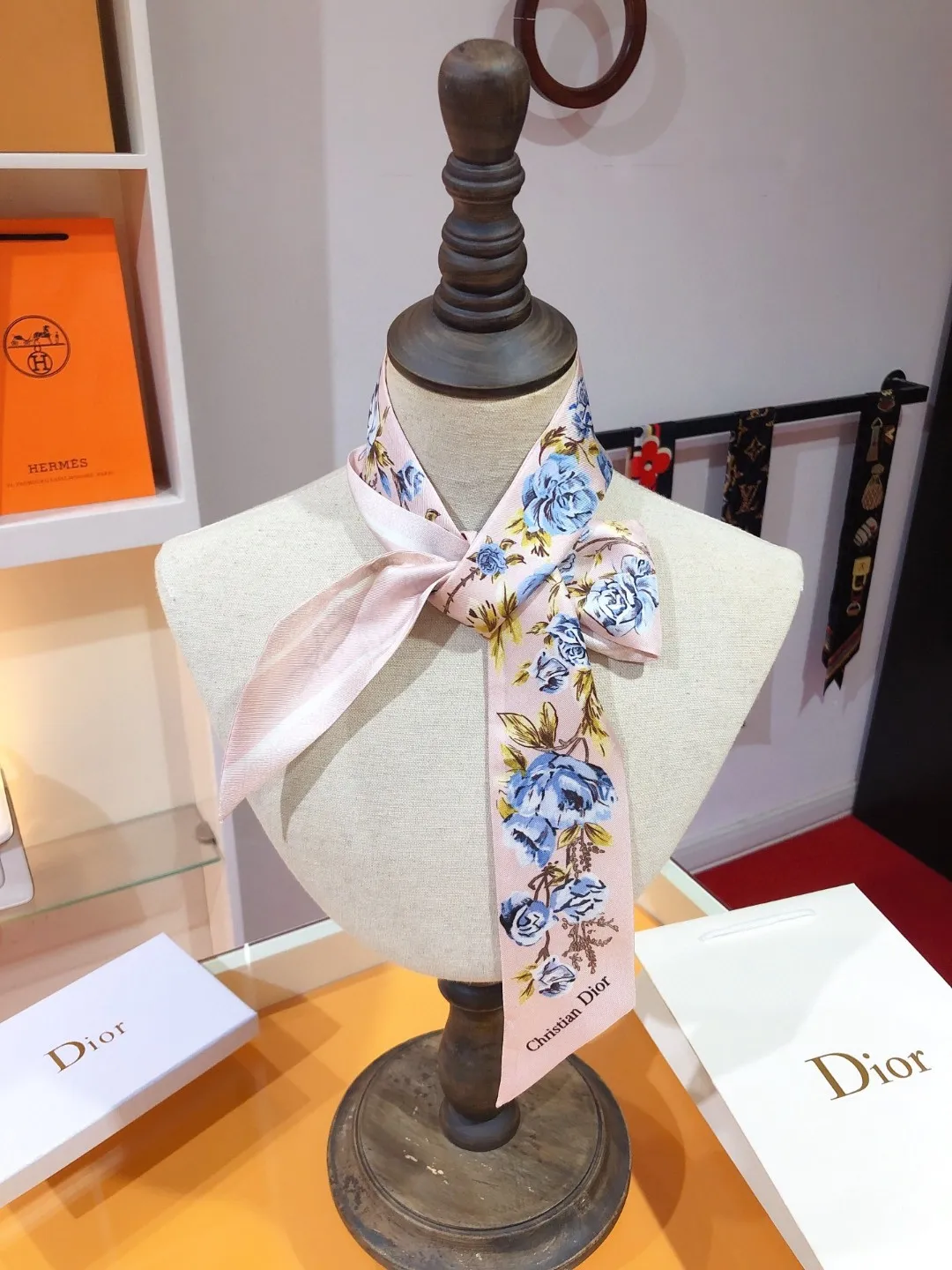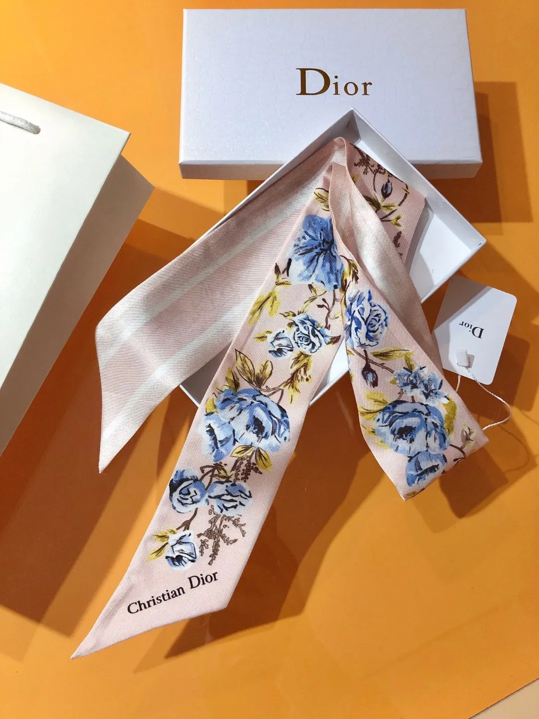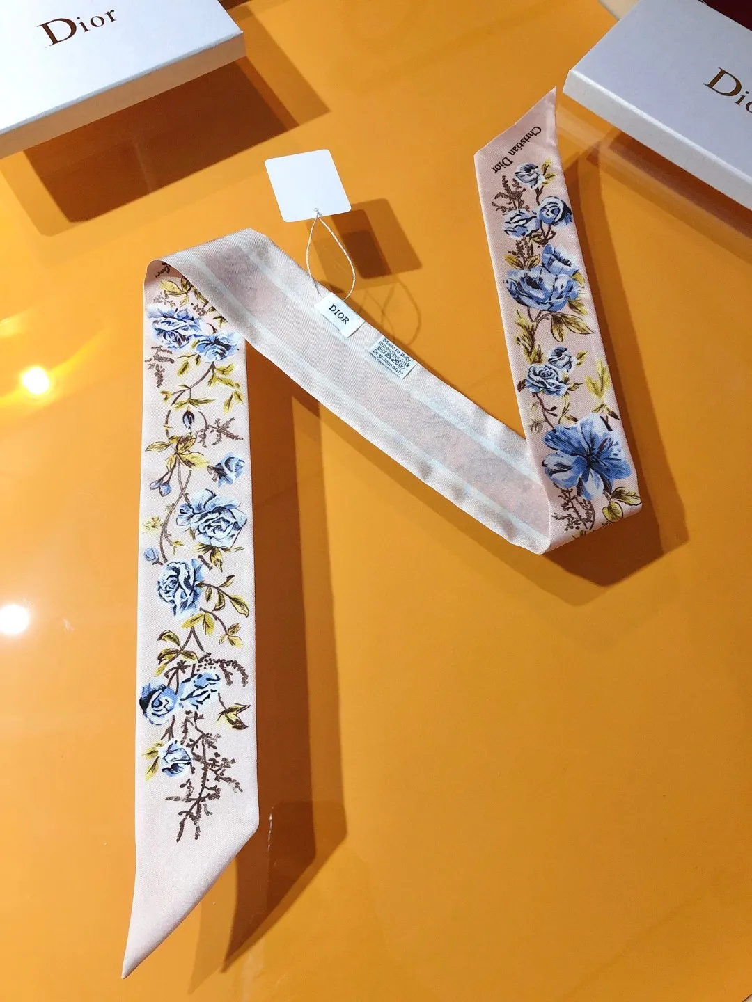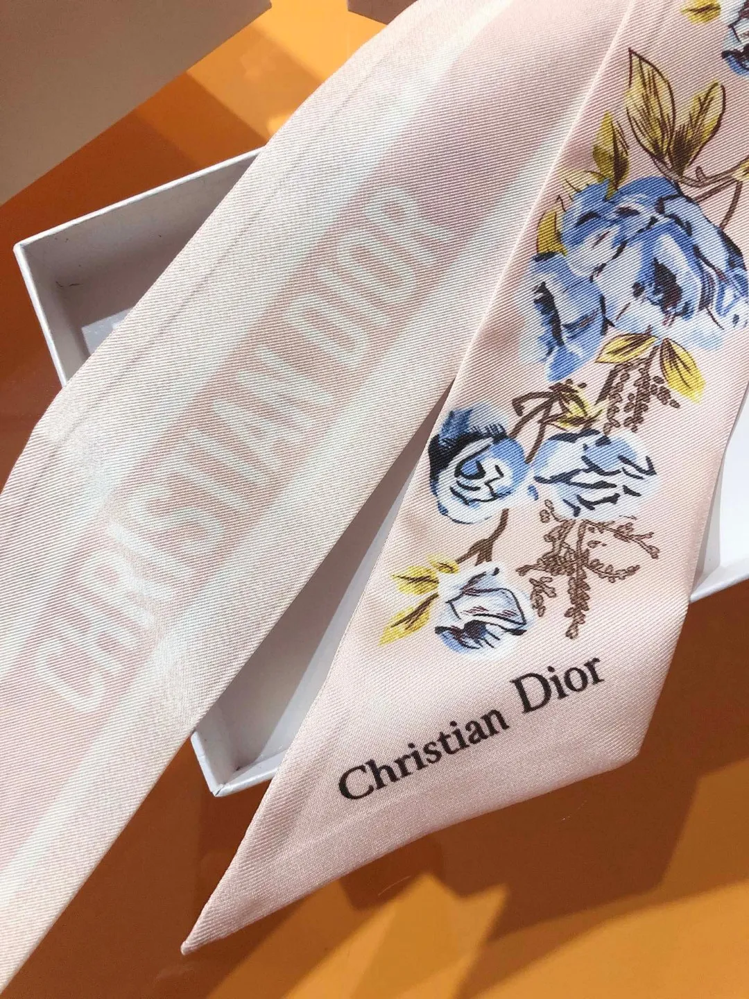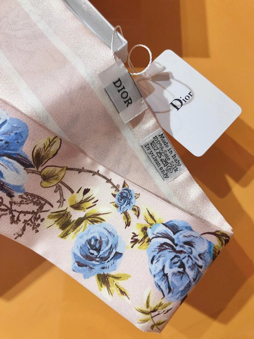 CHRISTIAN DIORブルー花柄リボンスカーフ