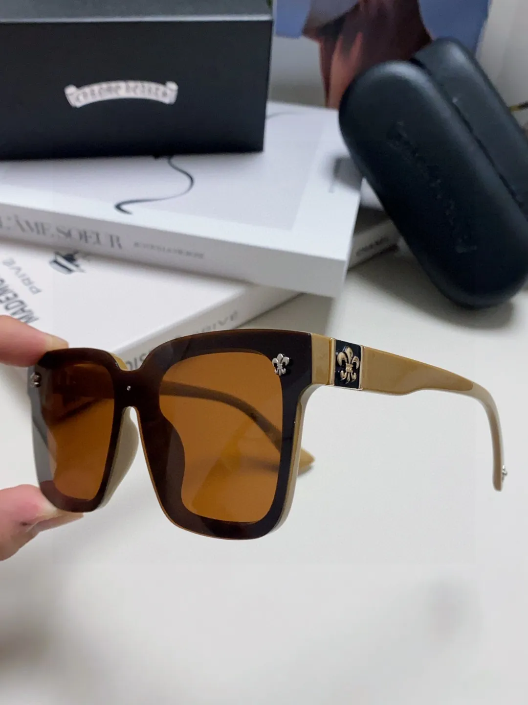 Chrome Heartsの2025新作偏光サングラスです。ブラウンの偏光レンズが特徴で、紫外線をしっかりカットします。男女兼用で、韓国風のトレンドを押さえたデザインが魅力。セレブも愛用する高級感あふれるアイテムで、ファッションに洗練された印象を与えます。類似品に注意しながら、本物を見極めることが大切です。気になる方は、スーパー コピー 優良 サイトで詳細を確認してみてください。
