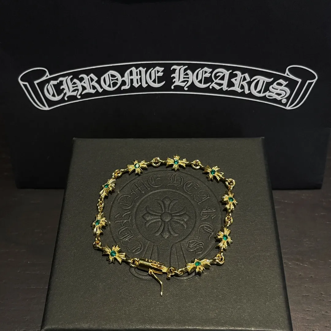 Chrome Hearts ゴールドグリーンクロスブレスレット