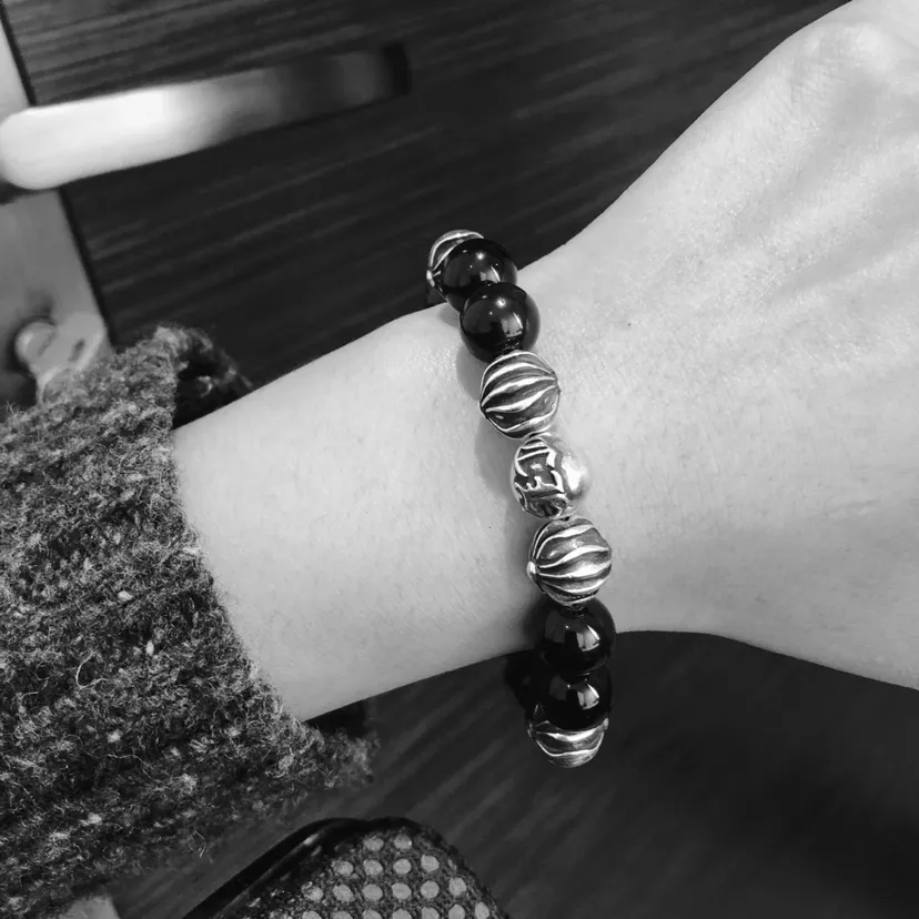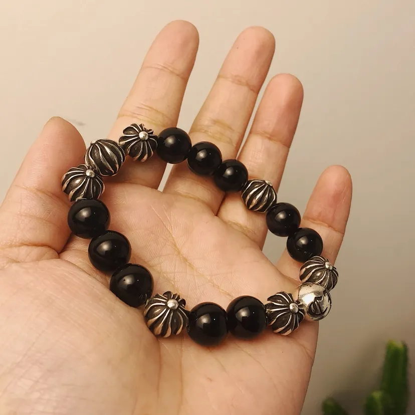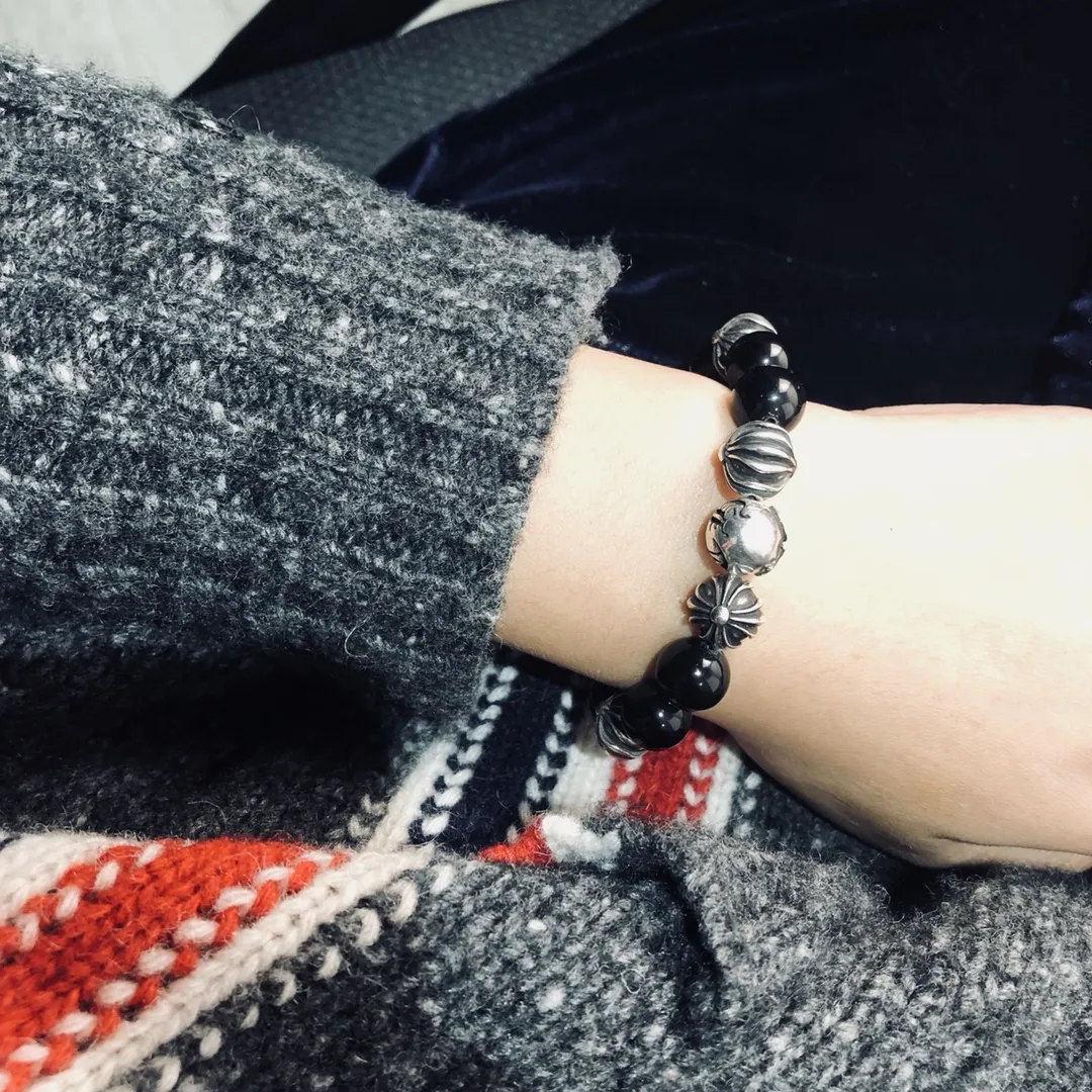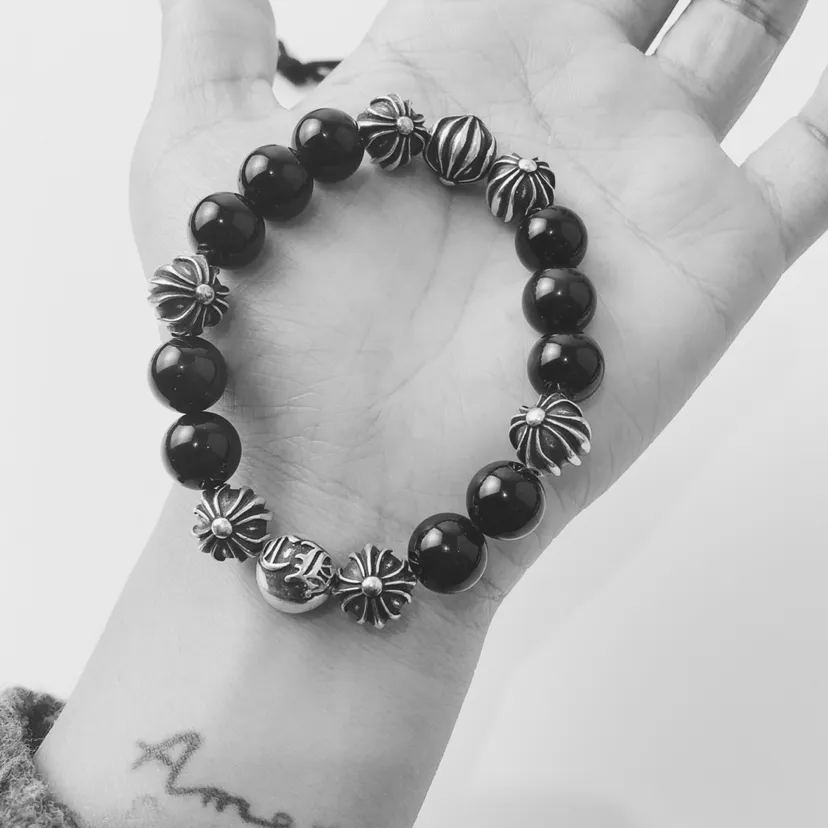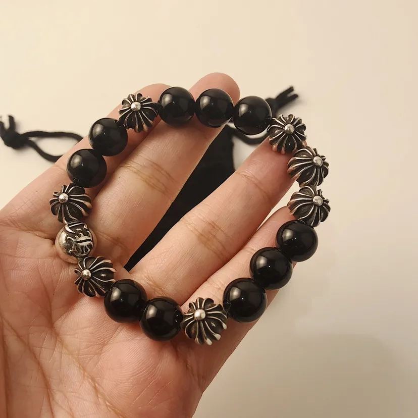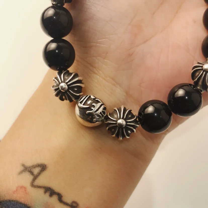 Chrome Hearts 黒曜石クロス手錠ブレスレット