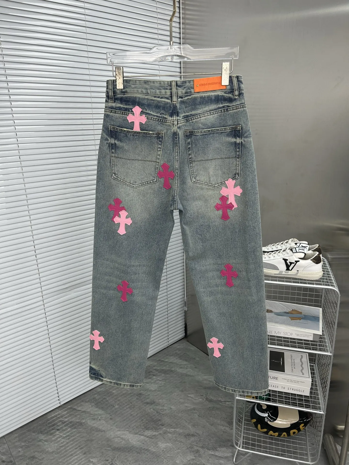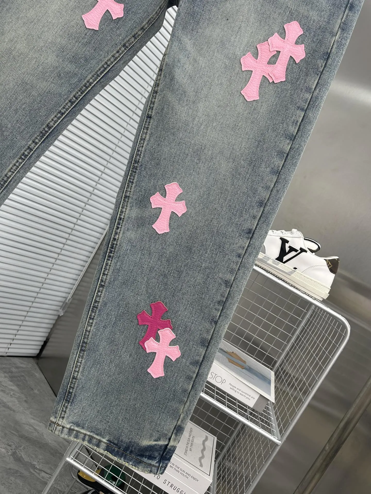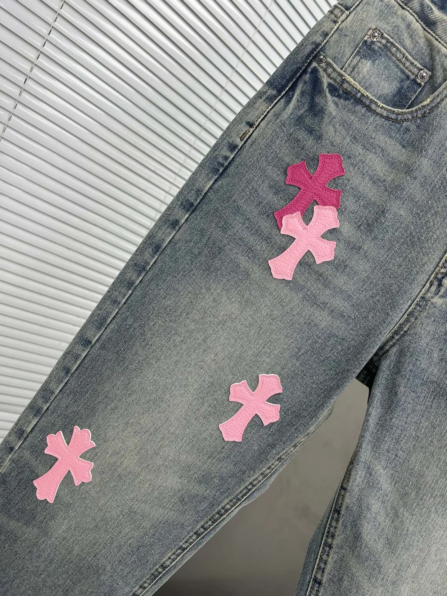 Chrome Hearts クロHeart 2025新品ブルージーンズ ピンクハートデザイン