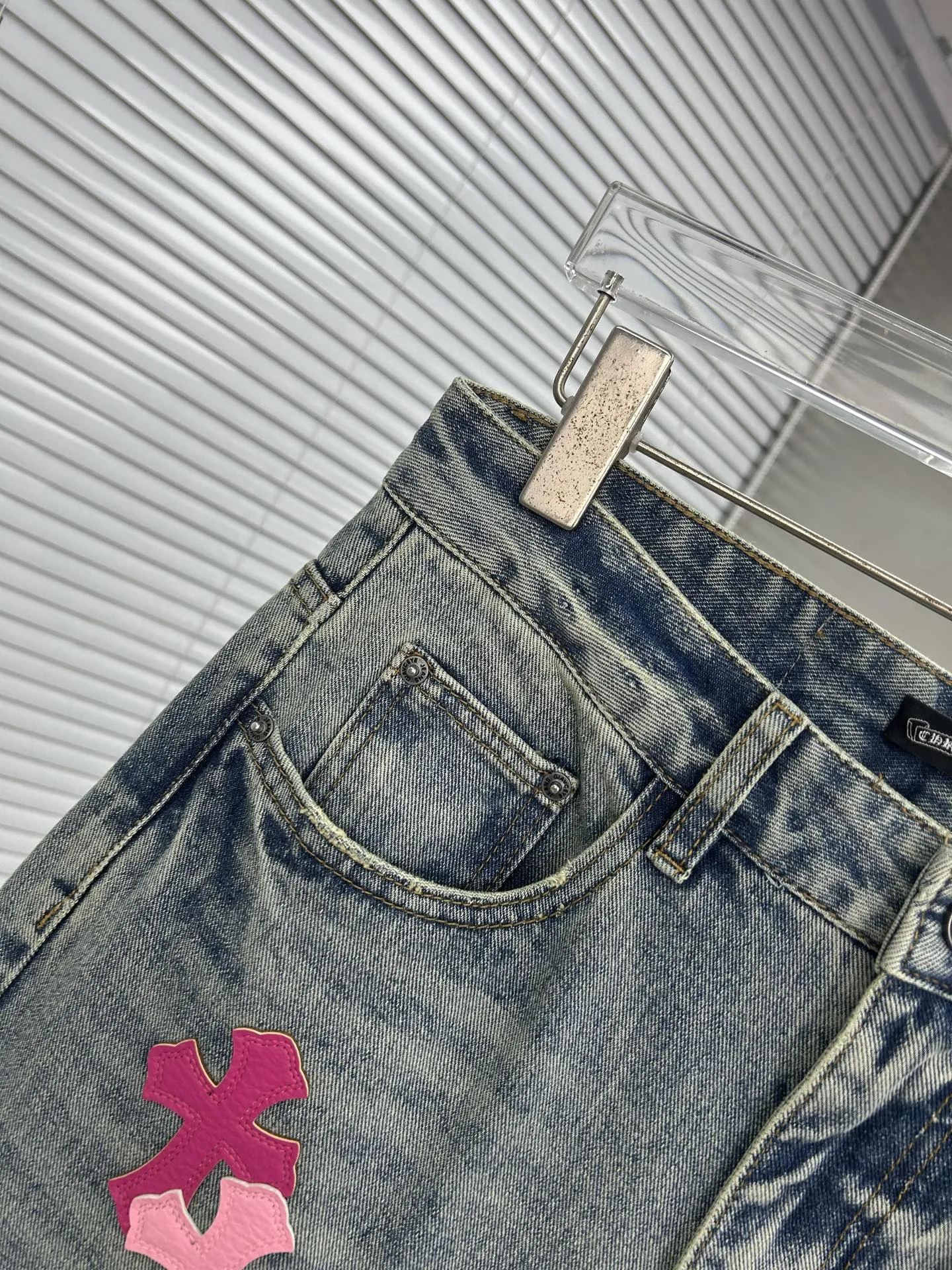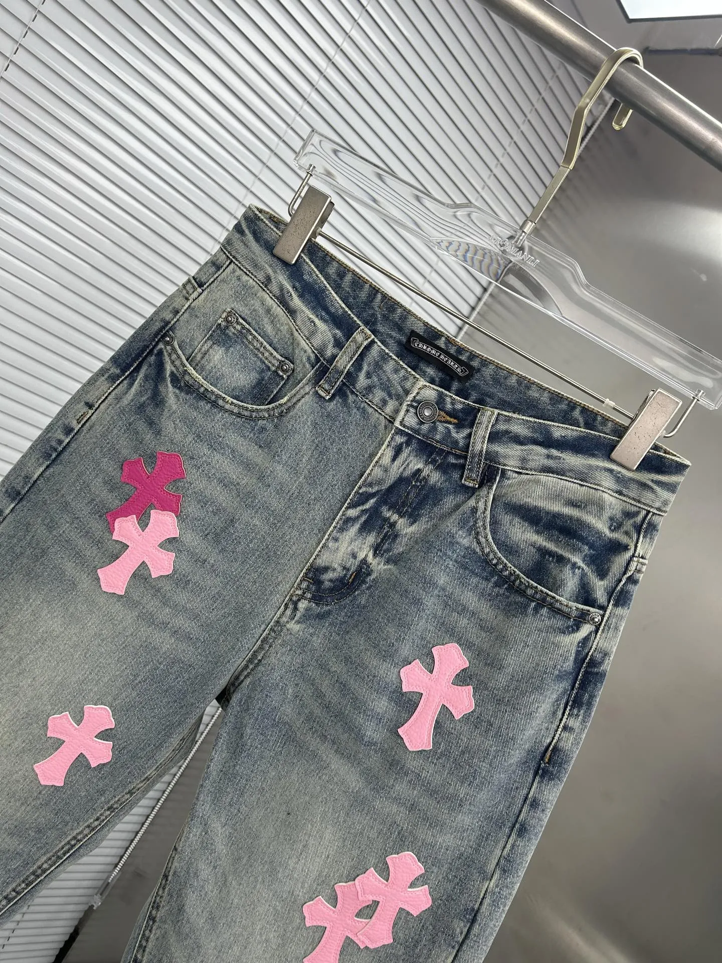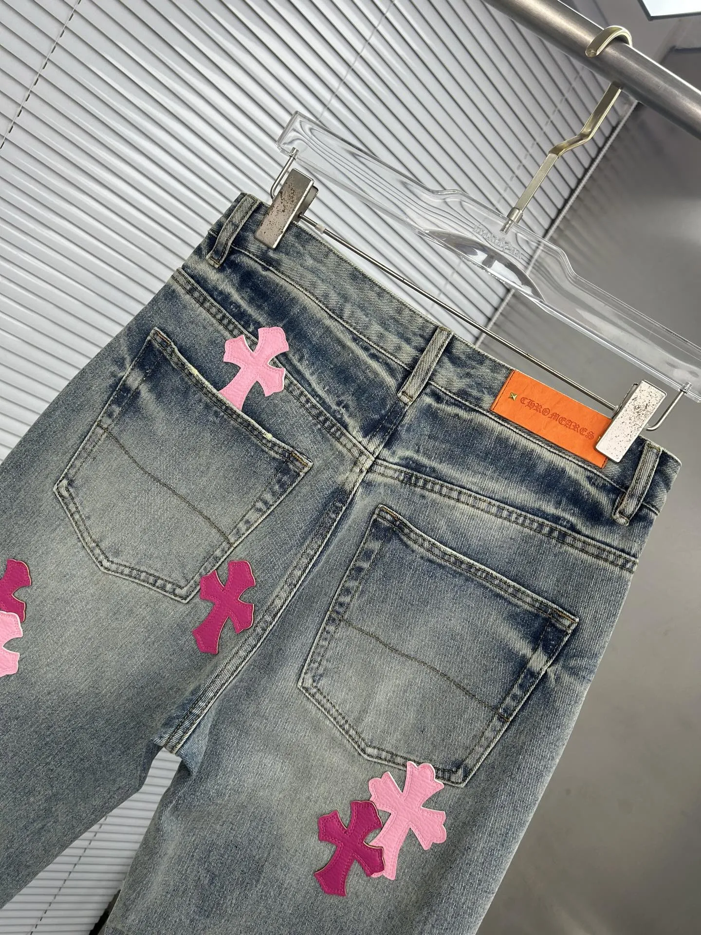 Chrome Hearts クロHeart 2025新品ブルージーンズ ピンクハートデザイン