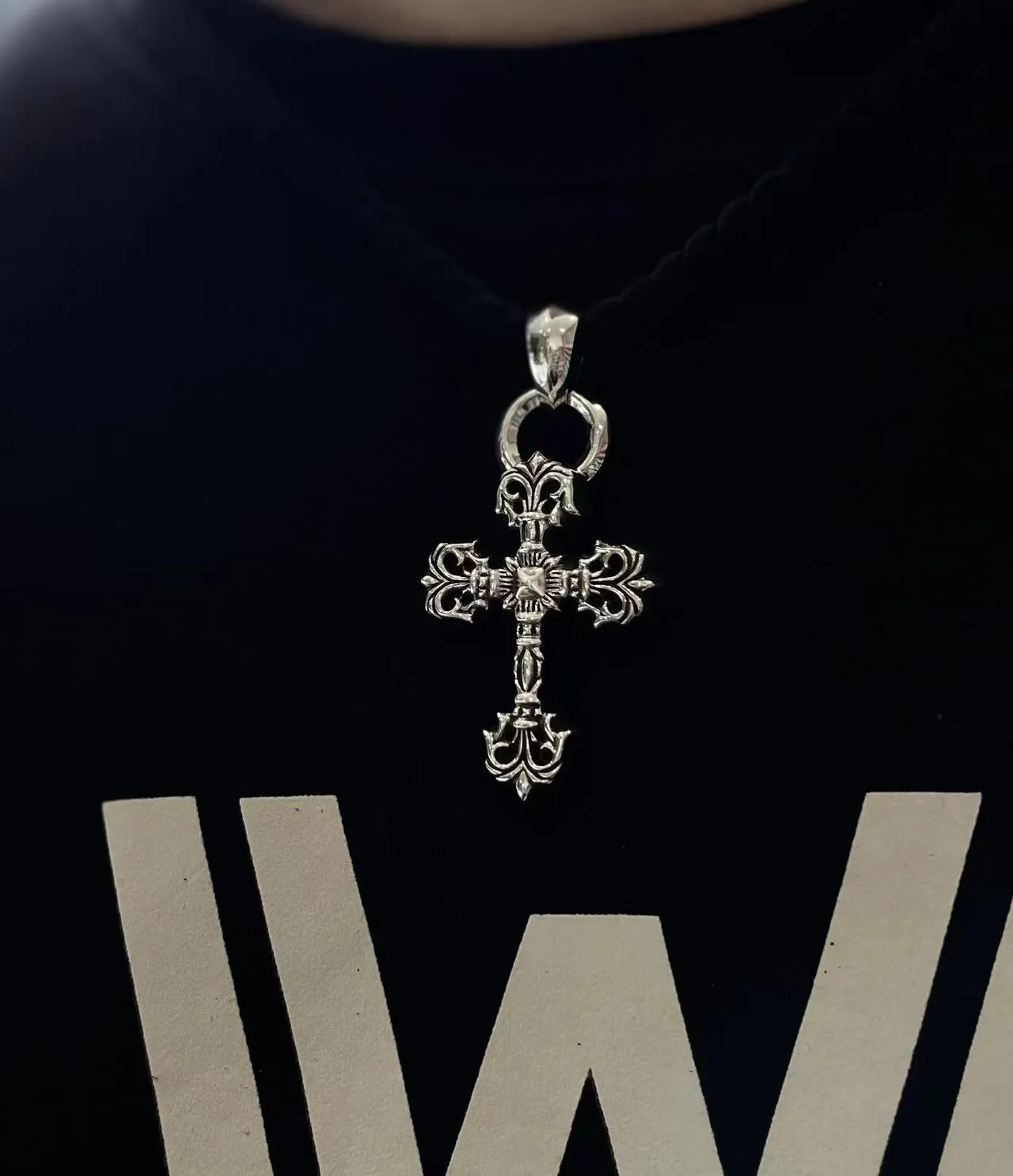 クロムハーツのダークスタイルを体現したフレイムクロスネックレスです。純銀製の十字架が特徴で、黒い皮紐編みが高級感を引き立てます。東京のストリートファッションにぴったりなデザインで、個性を際立たせます。なお、本物の品質を求める方には、スーパーコピー優良サイトでの購入をおすすめします。コード:100970。