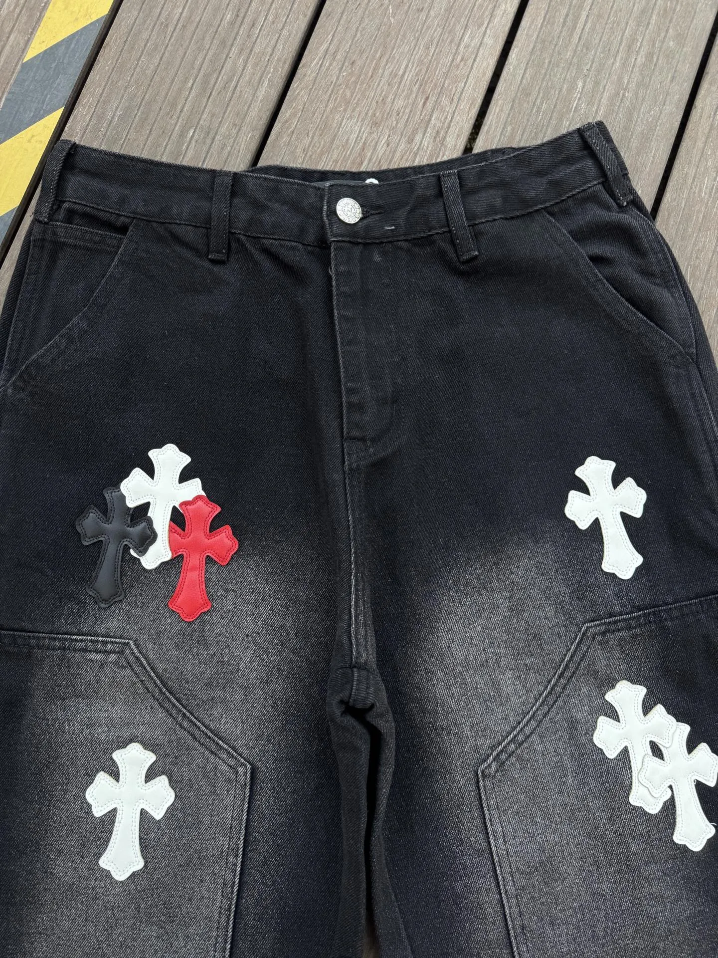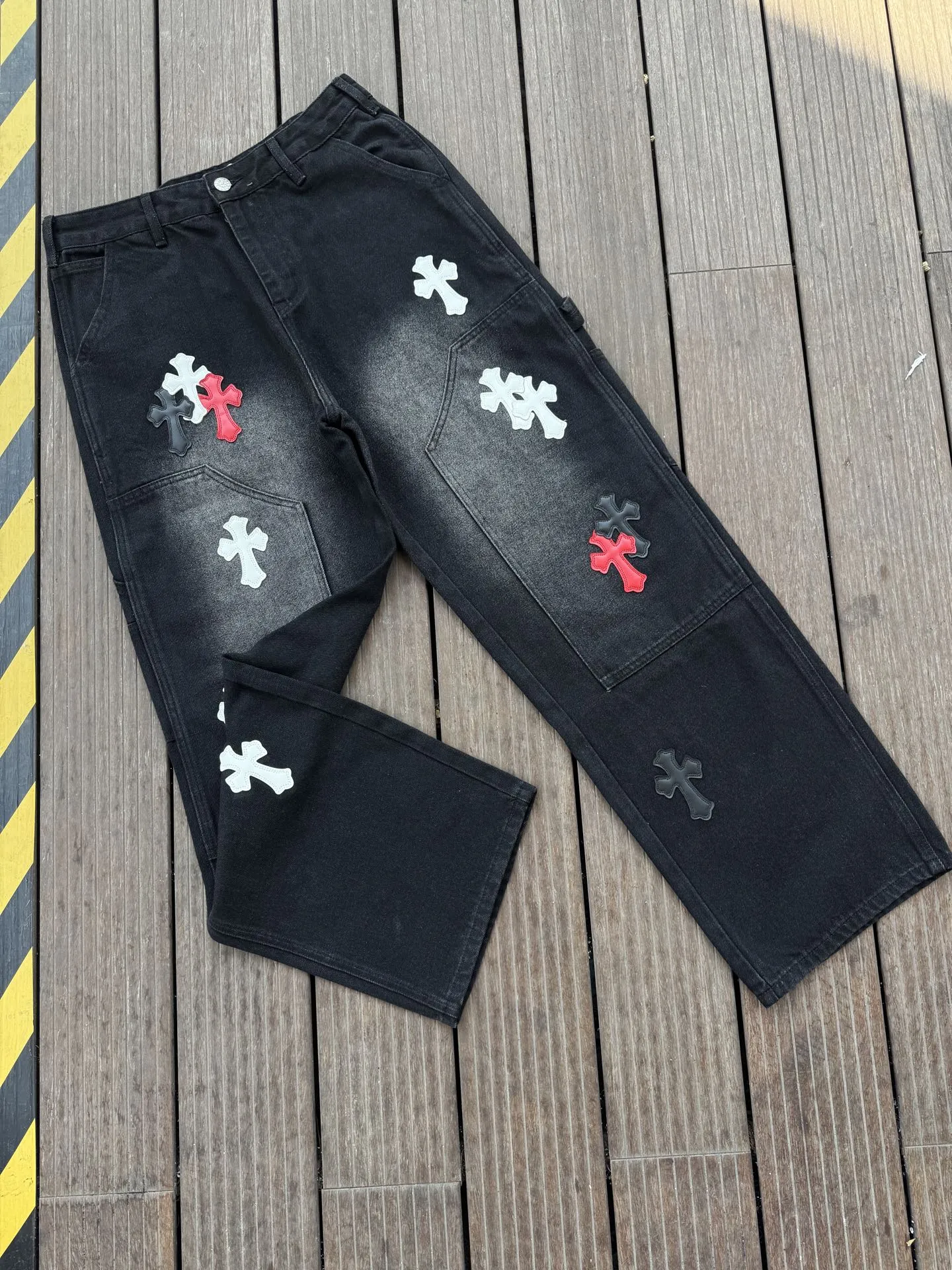 Chrome Hearts クロスハート 黒 クロス柄 直筒パンツ