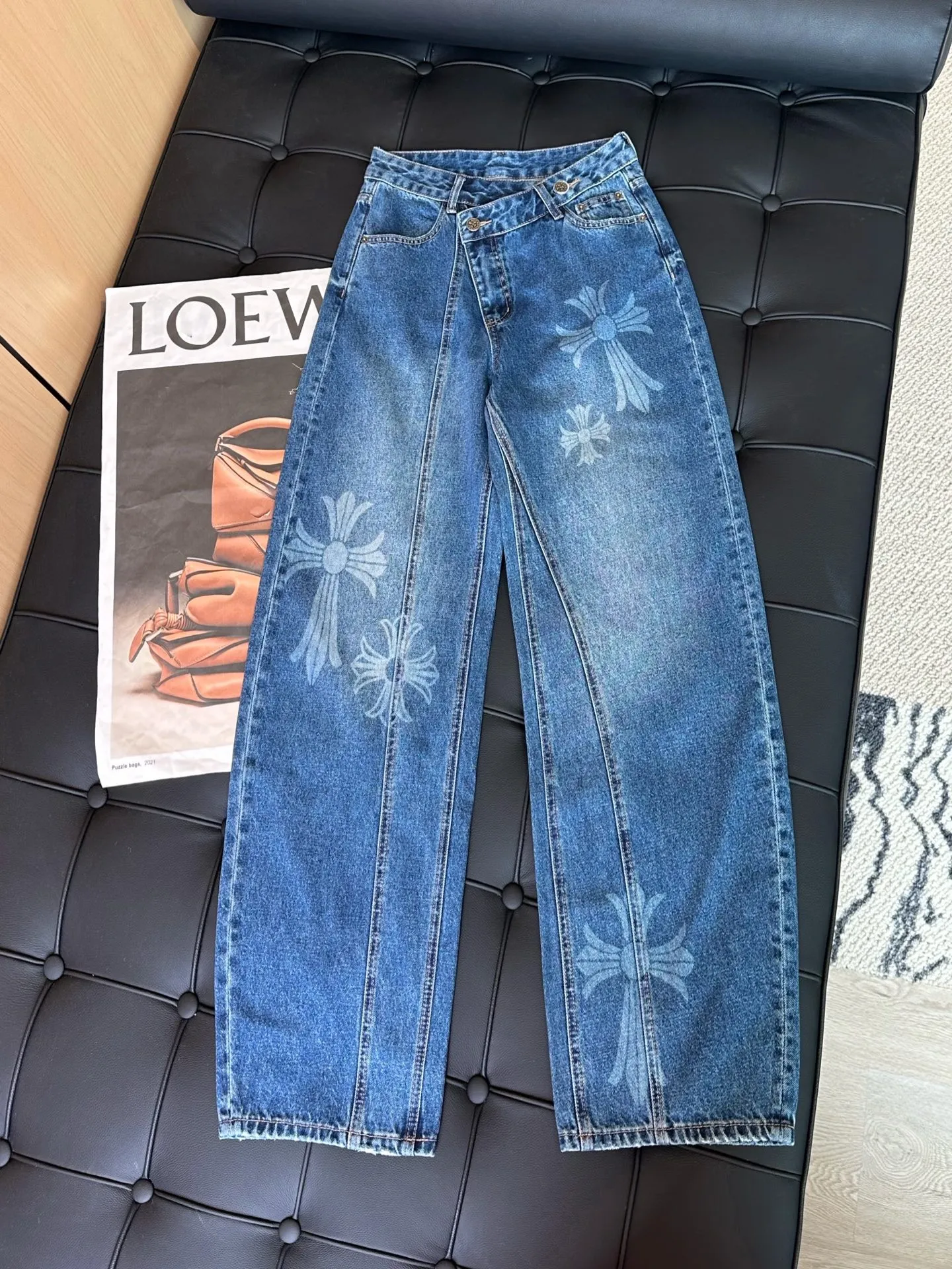 Chrome Hearts クロス柄デニムパンツ ブルー/ブラック