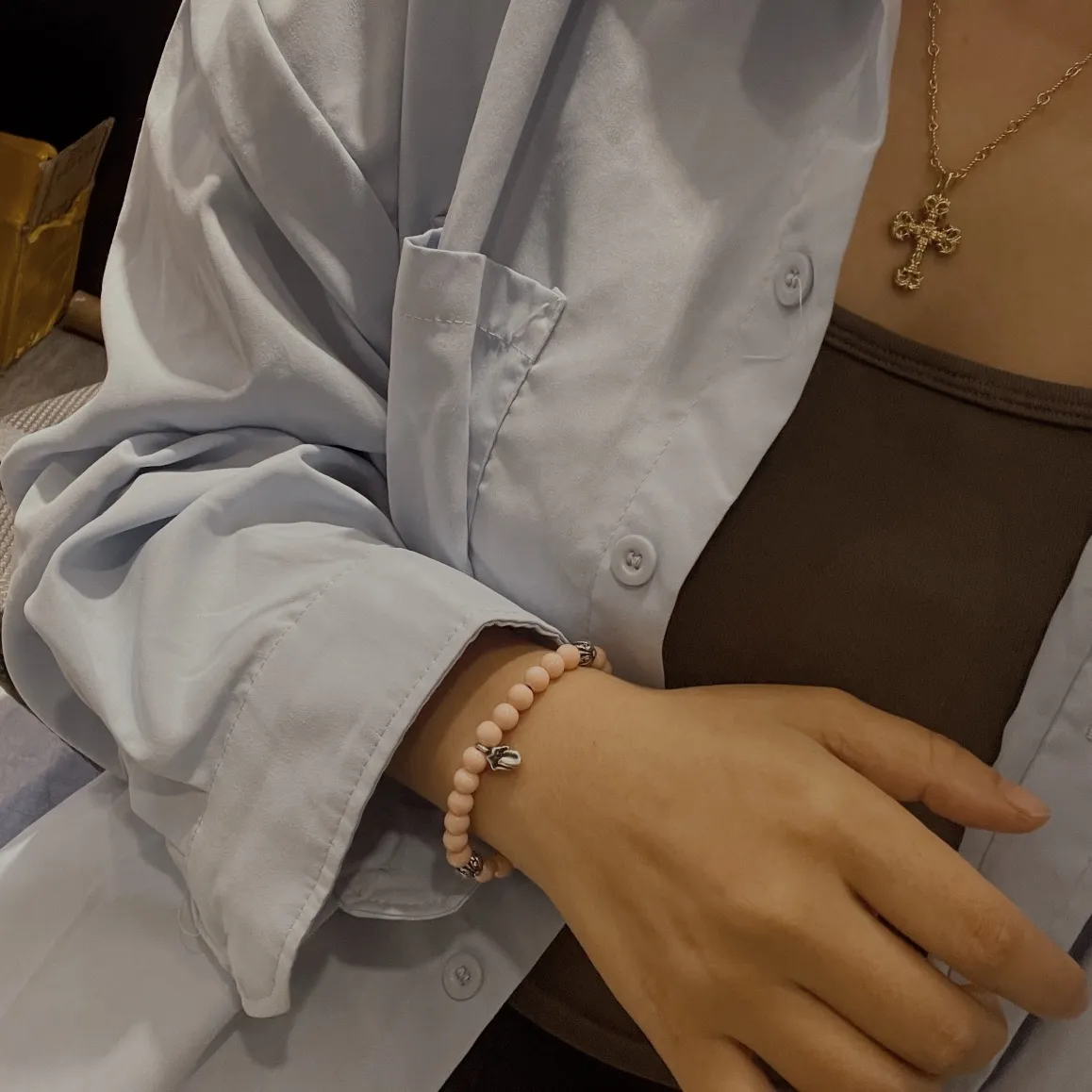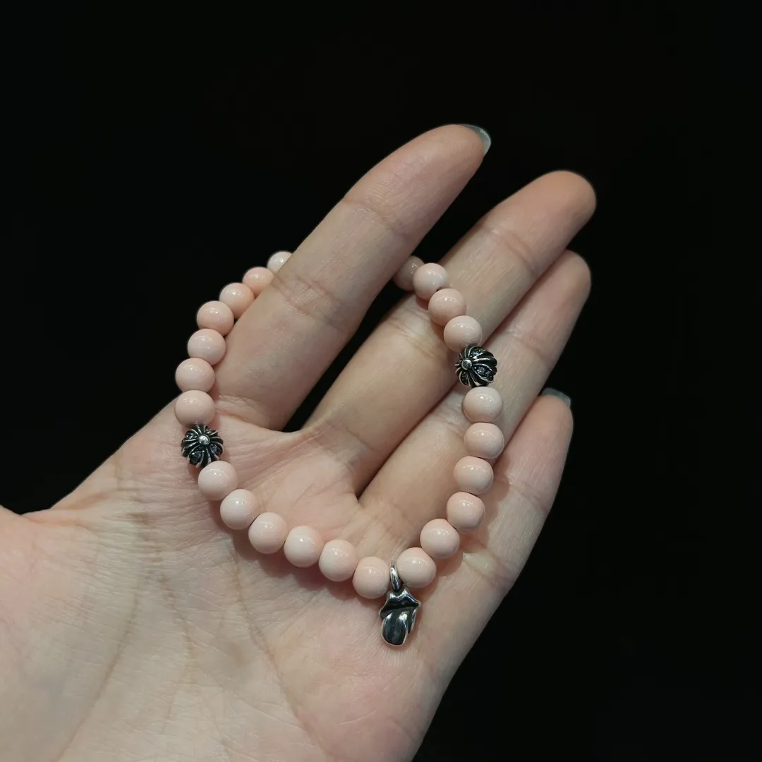 Chrome Hearts ピンクビーズブレスレット クロスデザイン
