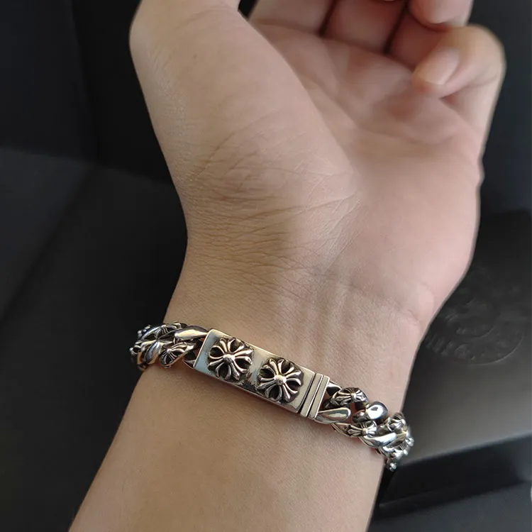 Chrome Hearts シルバー ダブルクロス ハーフフラワーブレスレット