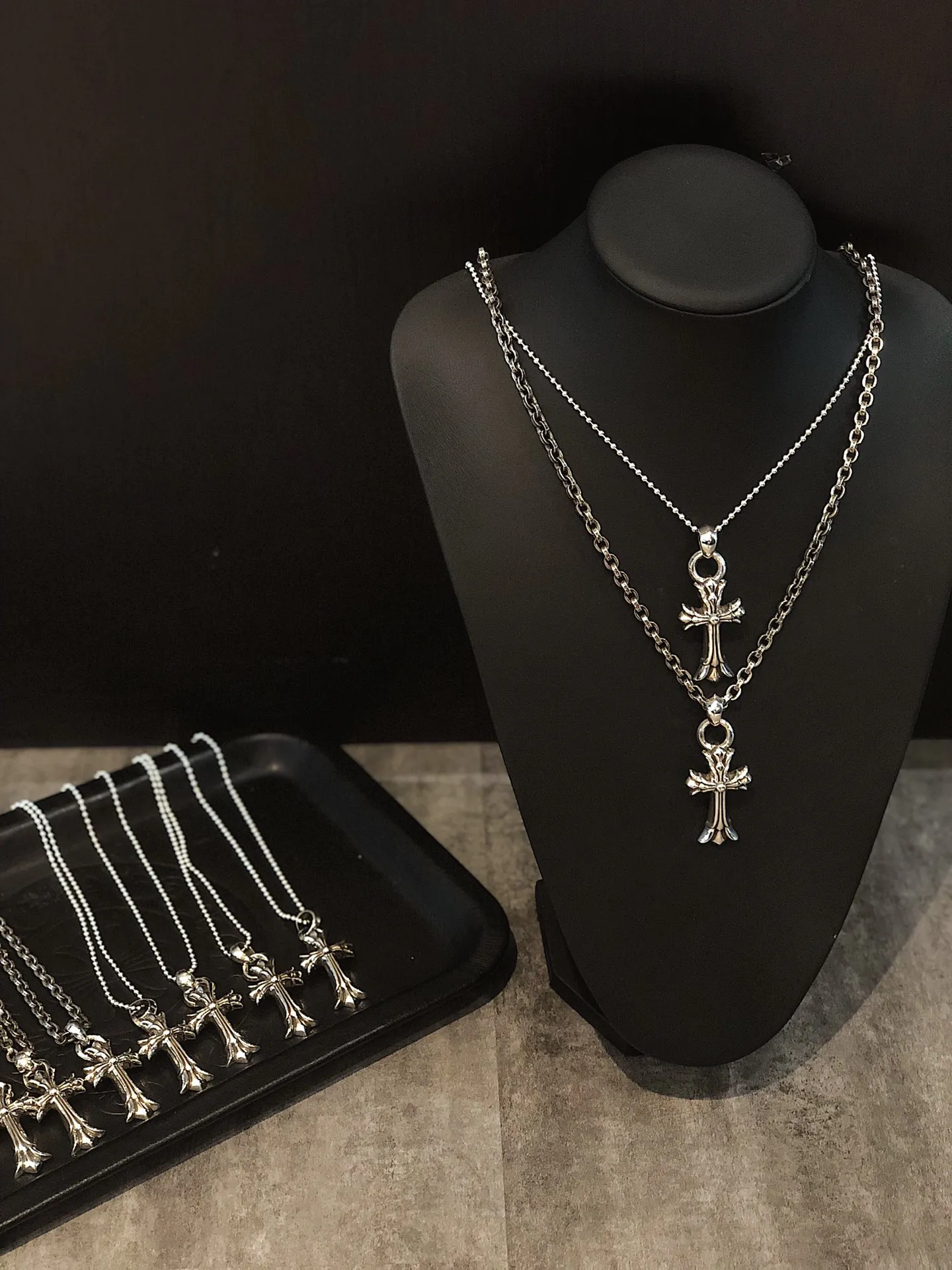 Chrome Hearts シルバー ダブル十字架ネックレス