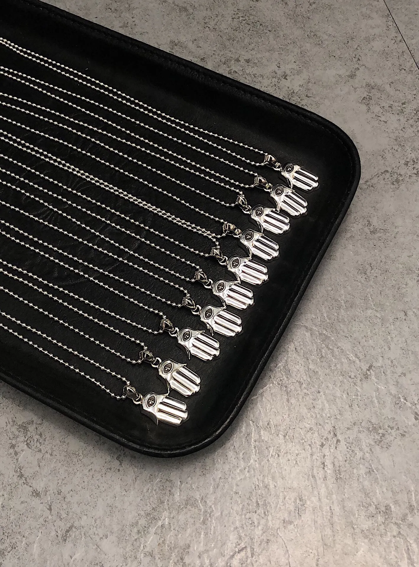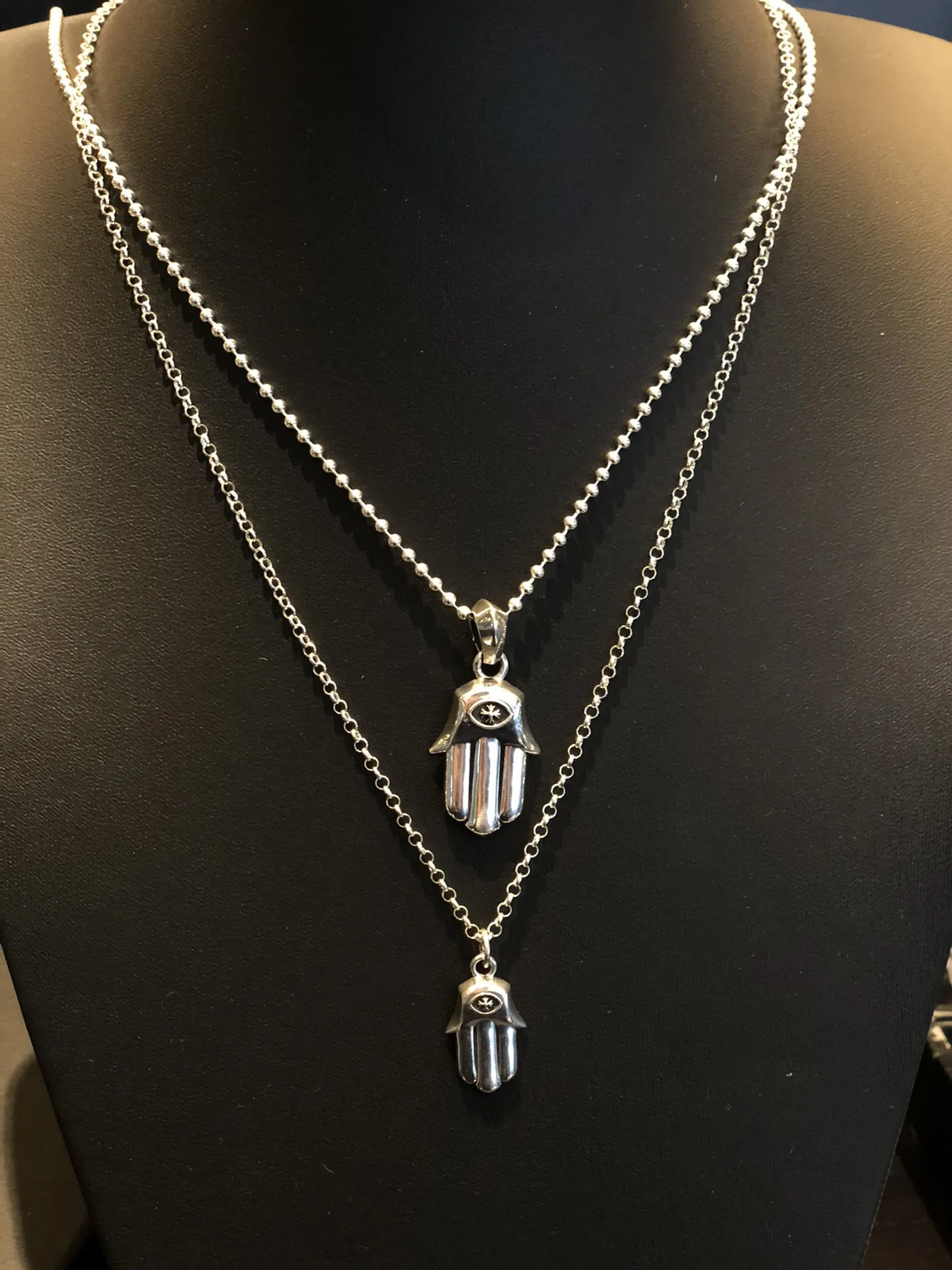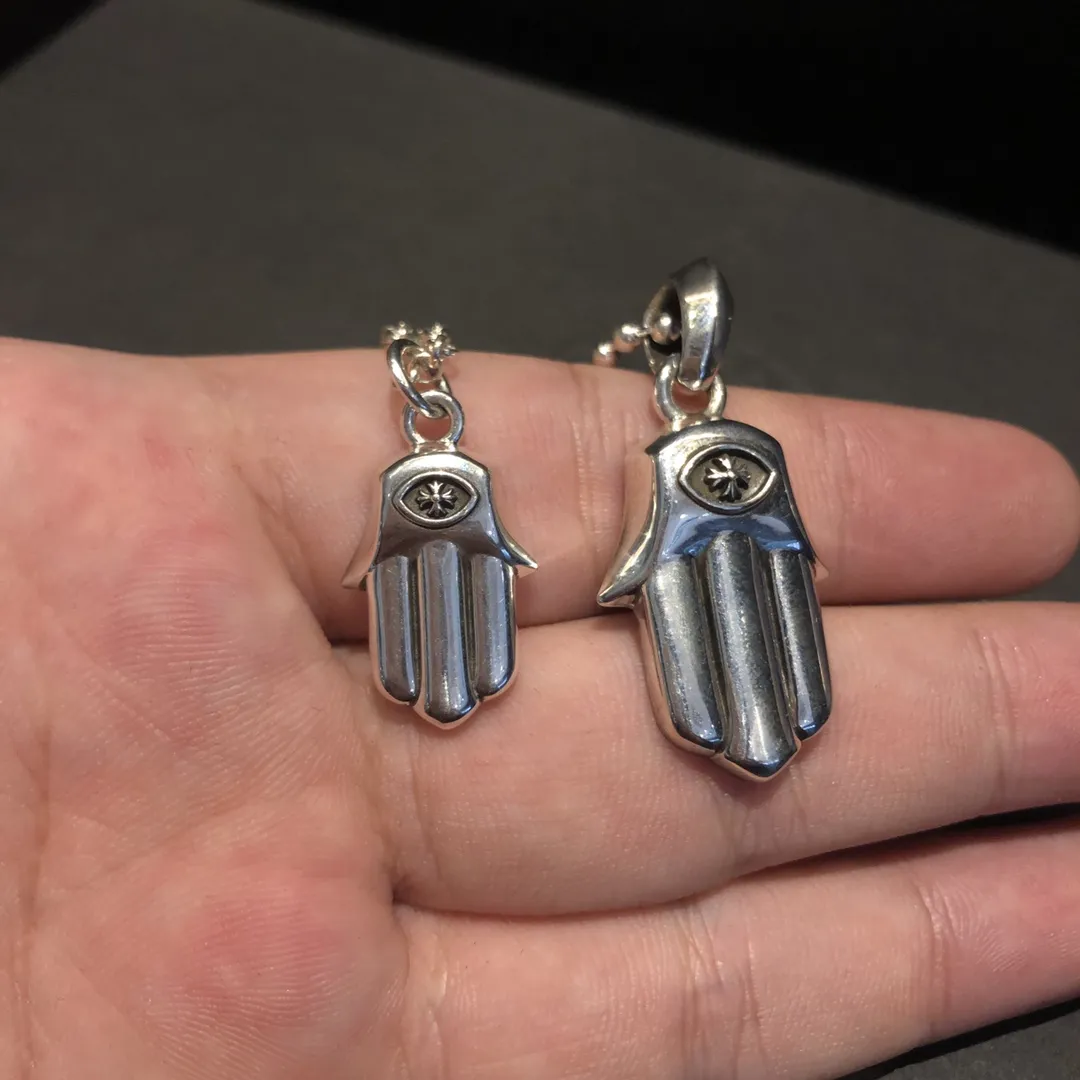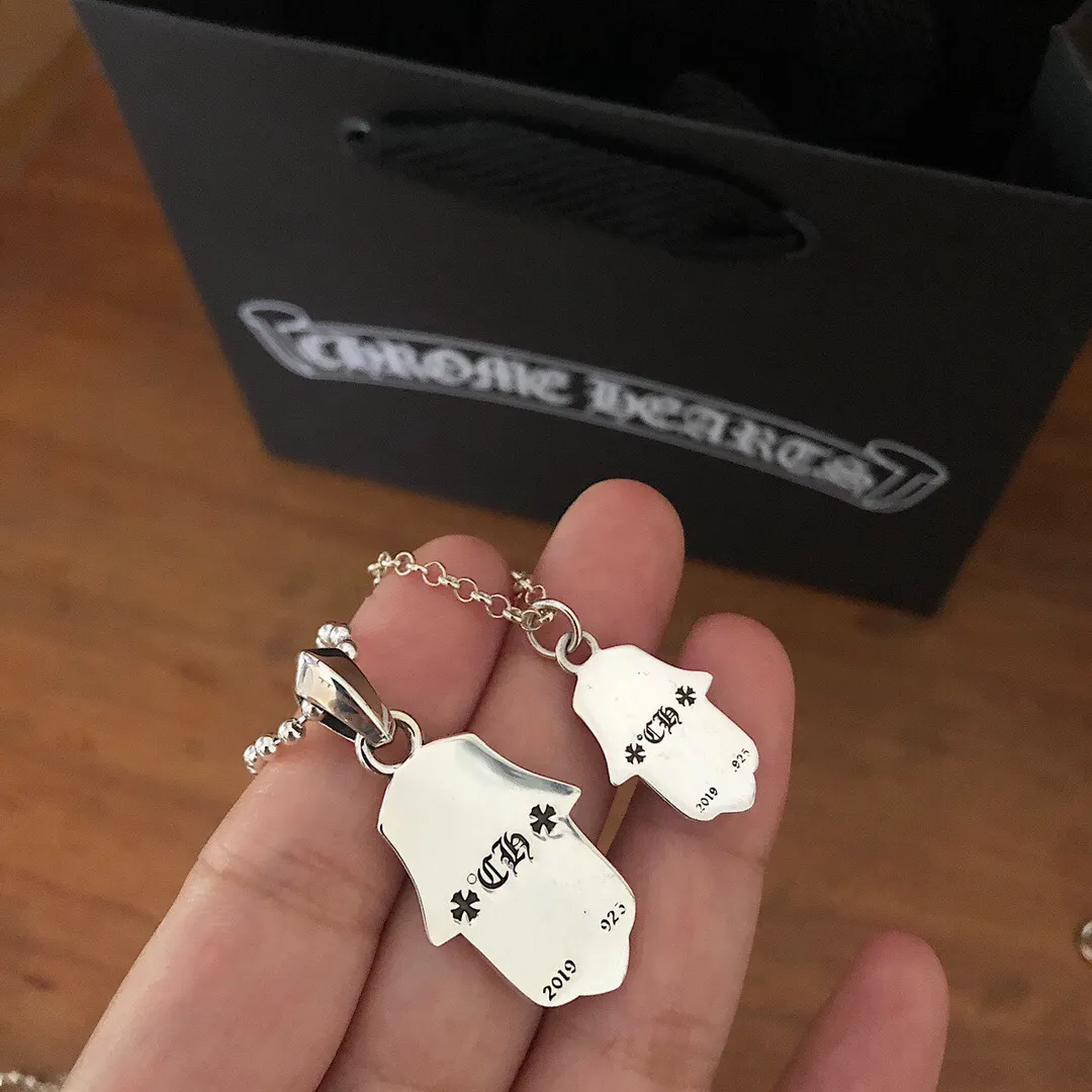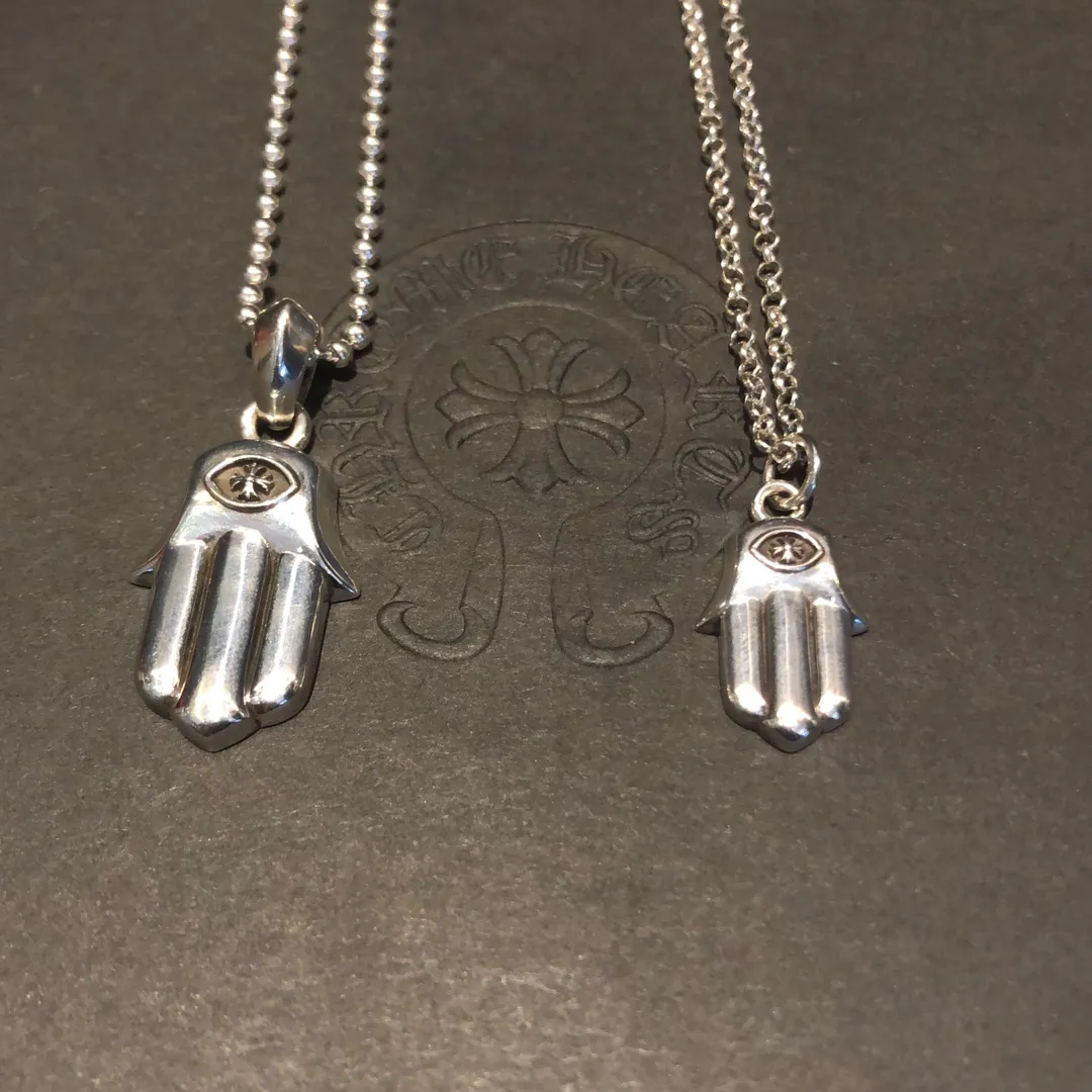 Chrome Heartsのシルバー ハムサ ネックレスは、最高品質の925純銀を使用し、細部までこだわった作りが特徴です。ハムサデザインが個性を引き立て、大小2つのサイズでお好みに合わせて選べます。大サイズは丸玉チェーン、小サイズはパールチェーンで、それぞれ異なる魅力を演出します。本物の品質を求める方には、偽物に注意して正規品を選ぶことをおすすめします。