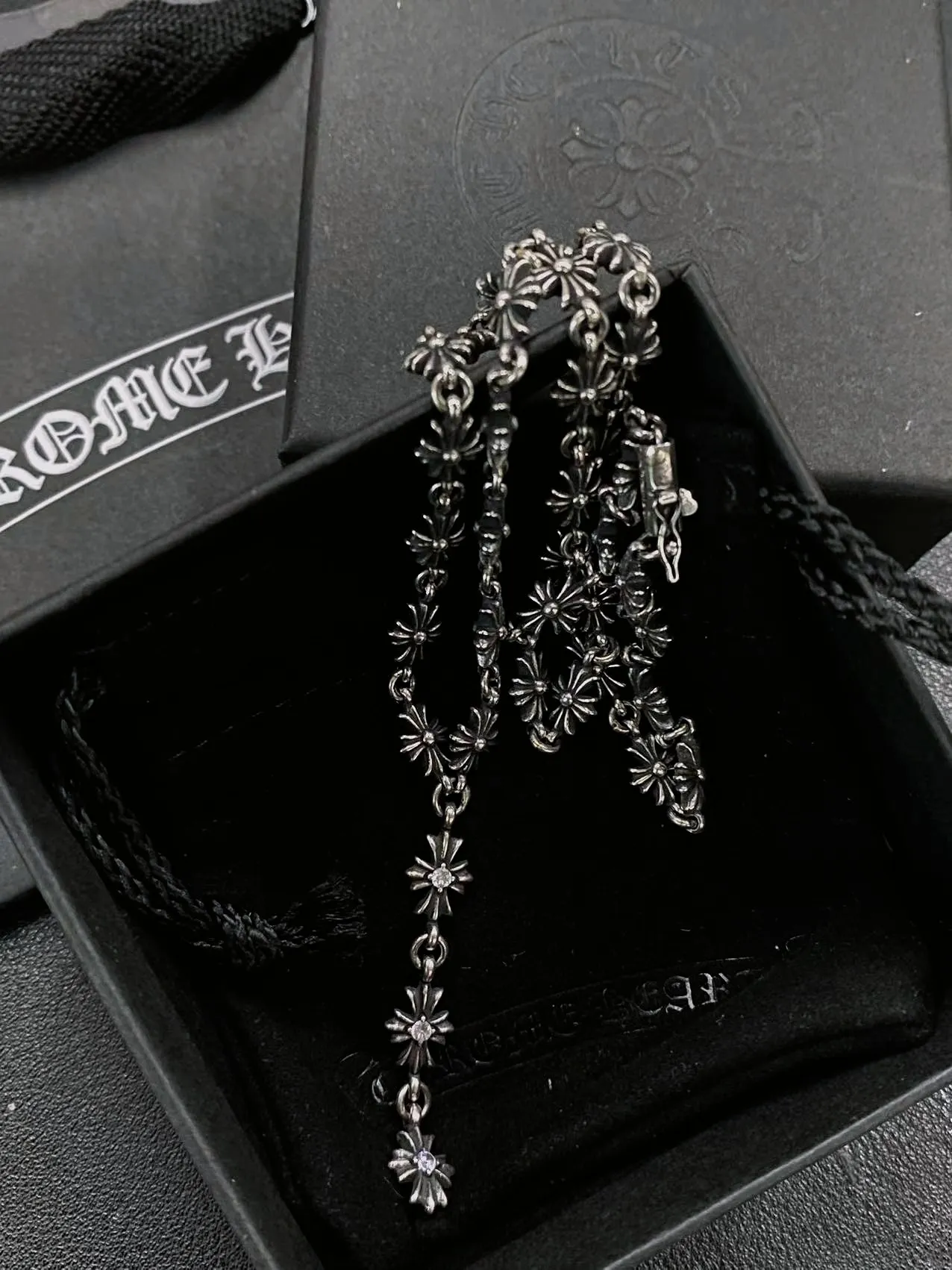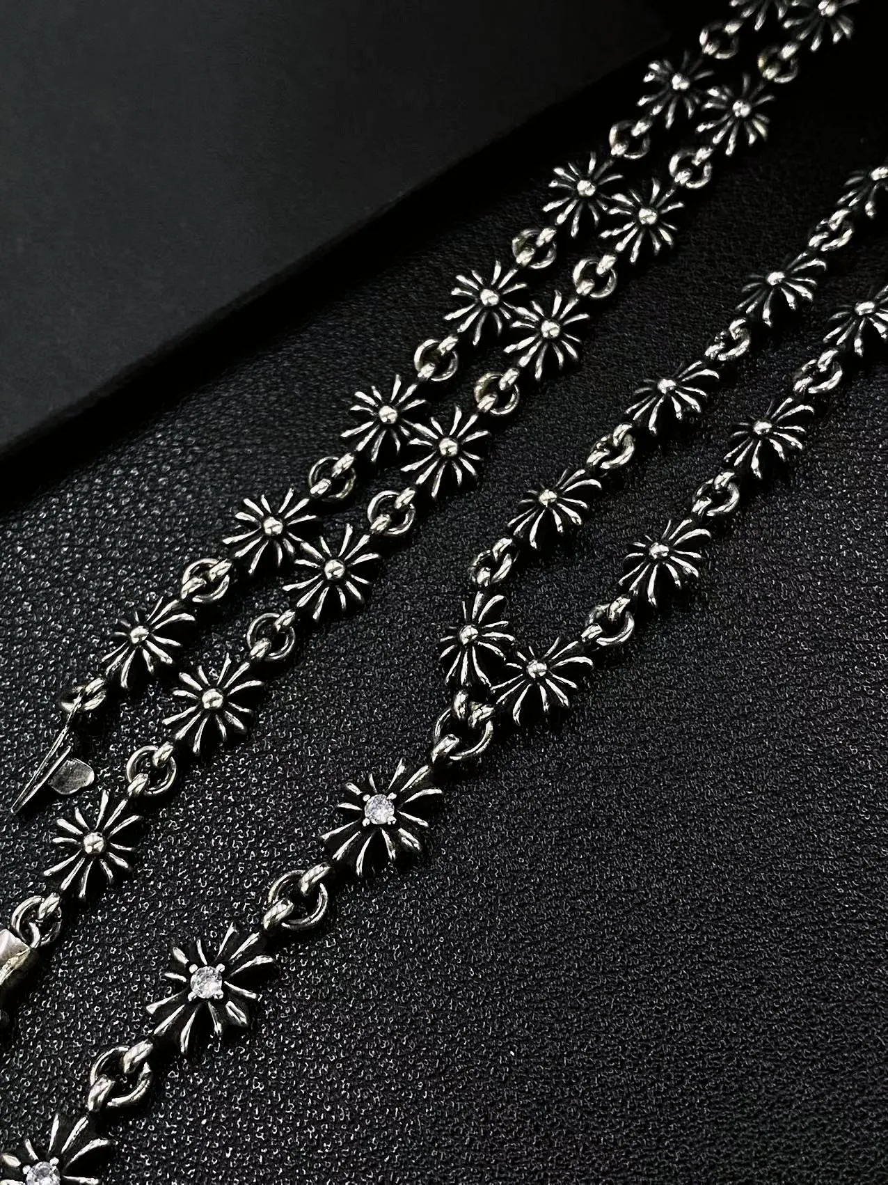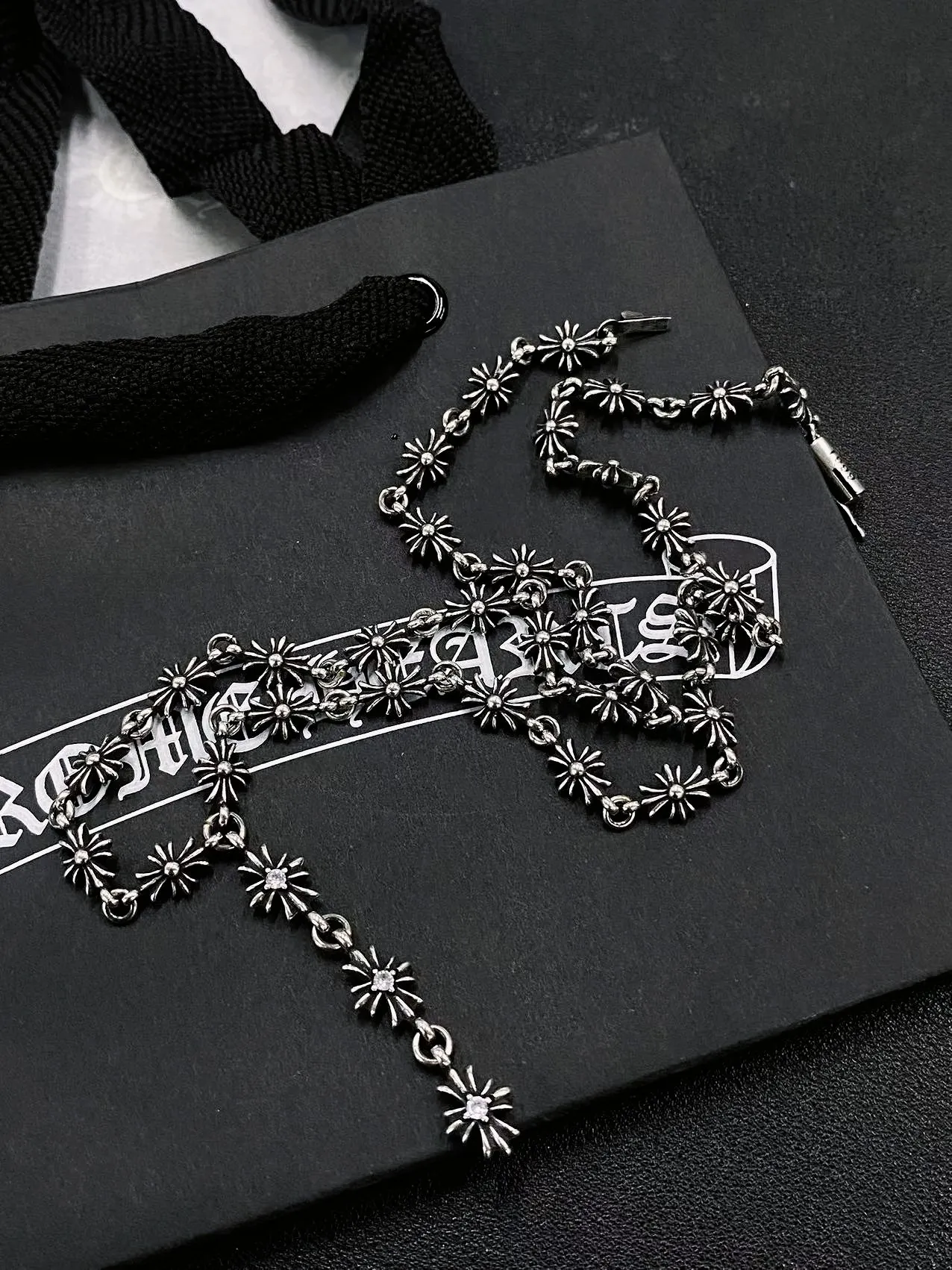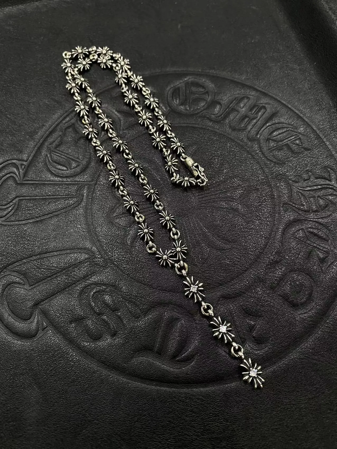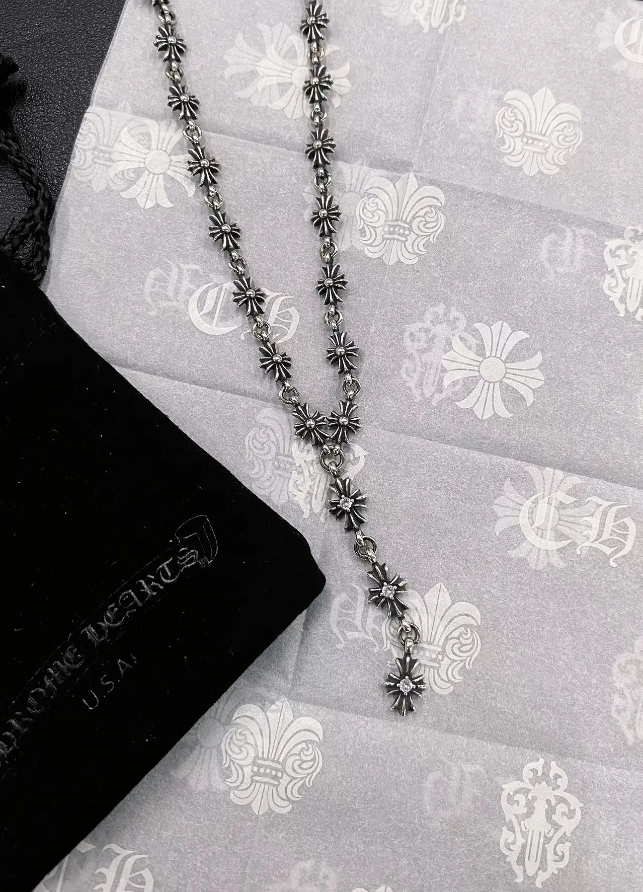 Chrome Heartsのシルバー3連クロスネックレスは、純銀素材と石をあしらったデザインが特徴です。クロスモチーフが3連で連なるこのネックレスは、単体でも重ね付けでもファッションに加点を与えます。高級感あふれる仕上げで、東京のトレンドセッターにぴったりです。市場には偽物も出回っているため、購入時には正規品を見極めることが重要です。