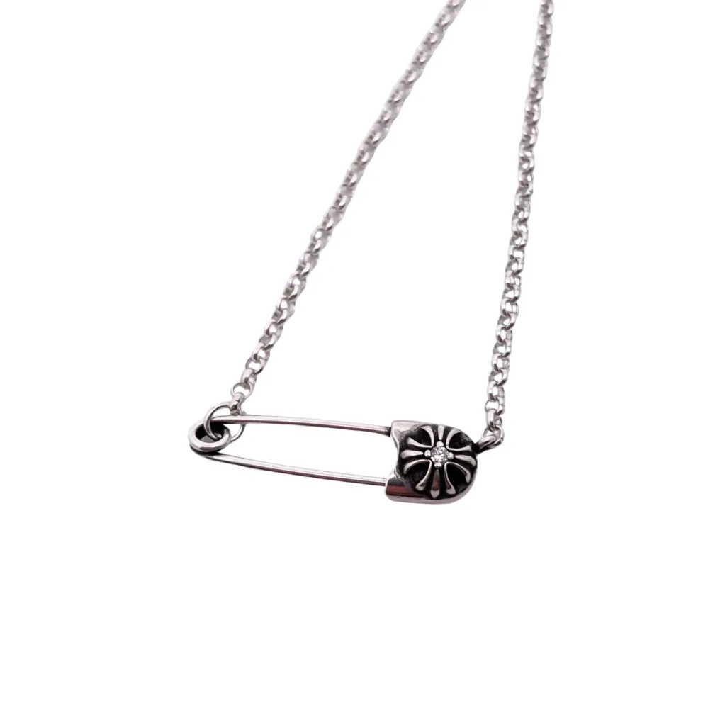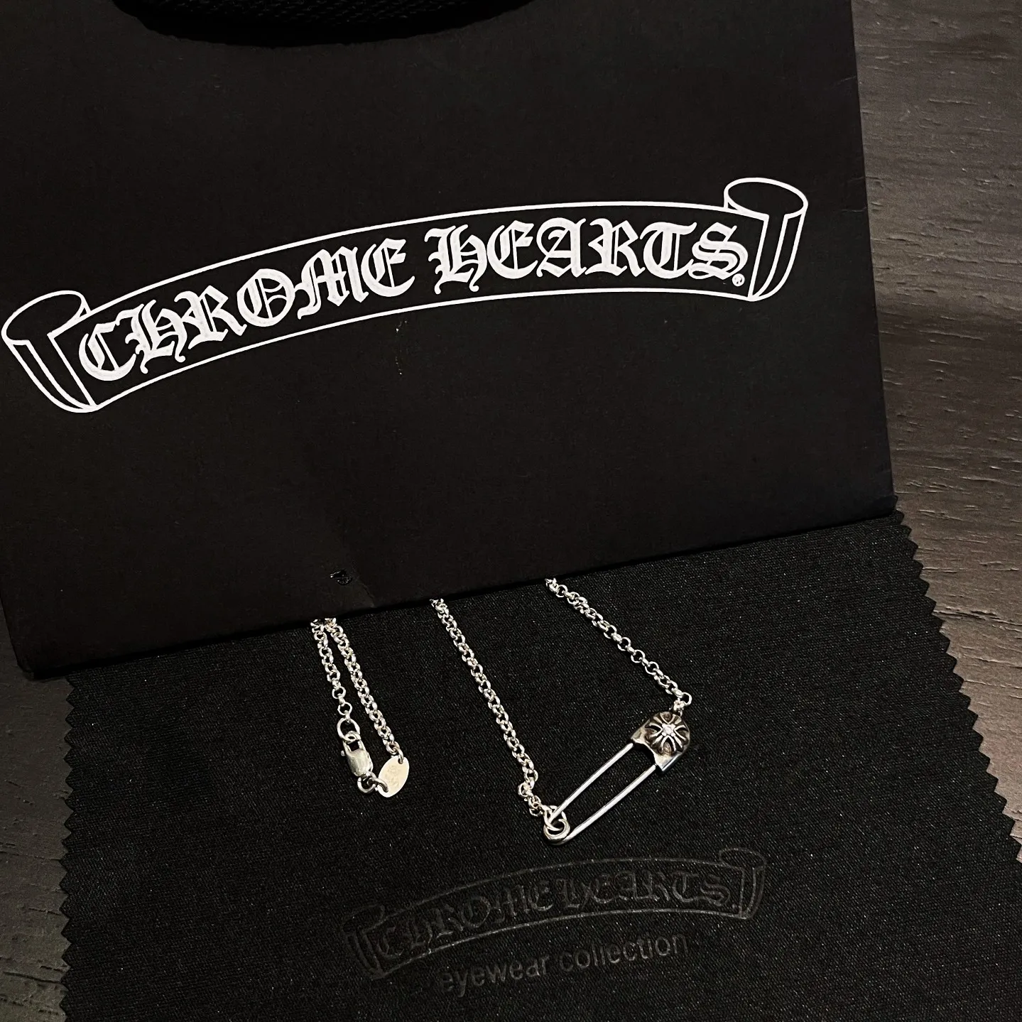 Chrome Heartsのシルバーネックレスは、クロスピンデザインと石のセットが特徴です。取り外し可能なパーツで、一つのネックレスを多様なスタイルで楽しめます。高品質なシルバーチェーンを使用し、ファッショナブルで個性的なデザインが魅力です。メンズ・レディース問わず、幅広い層に人気の商品です。市場には偽物も出回っているため、購入時には正規品を見極めることが重要です。