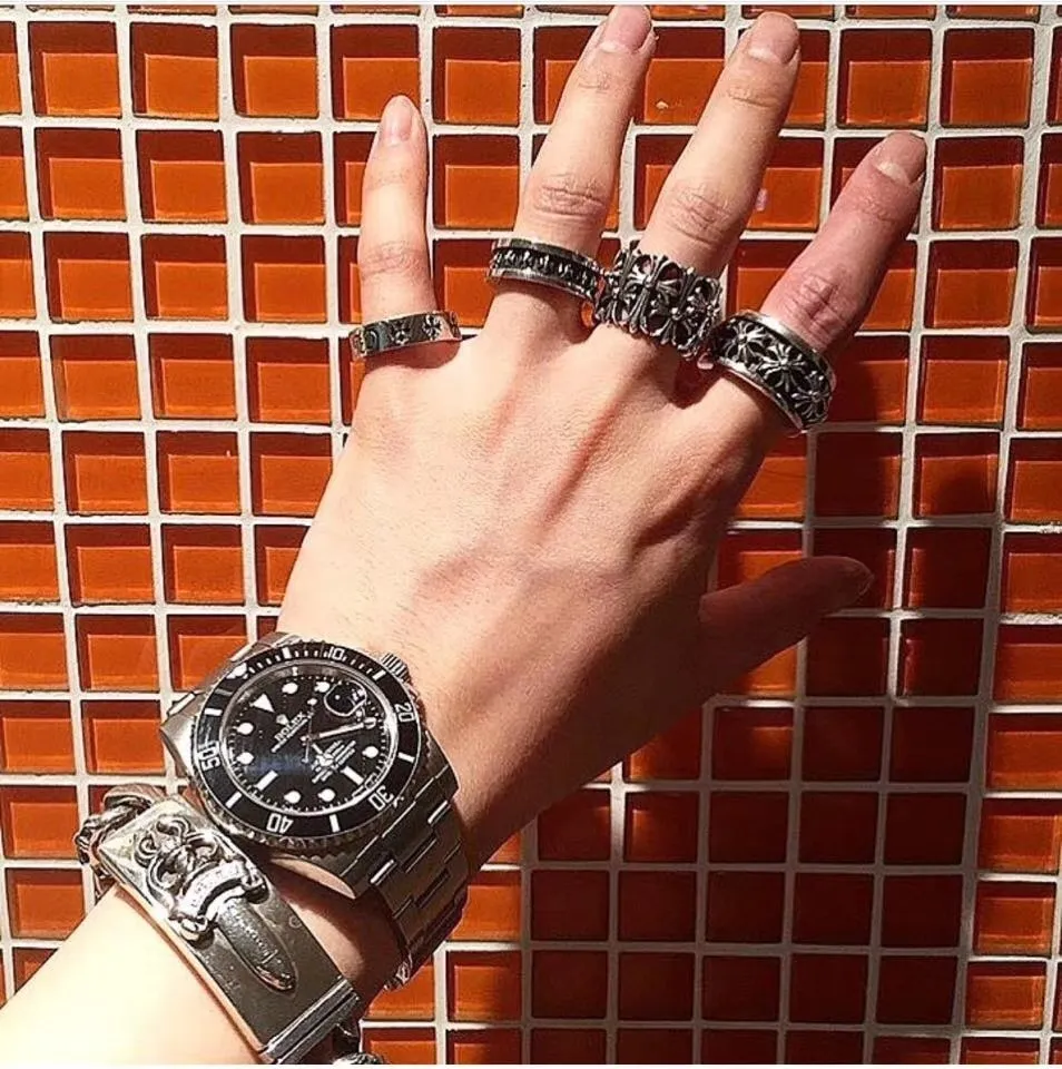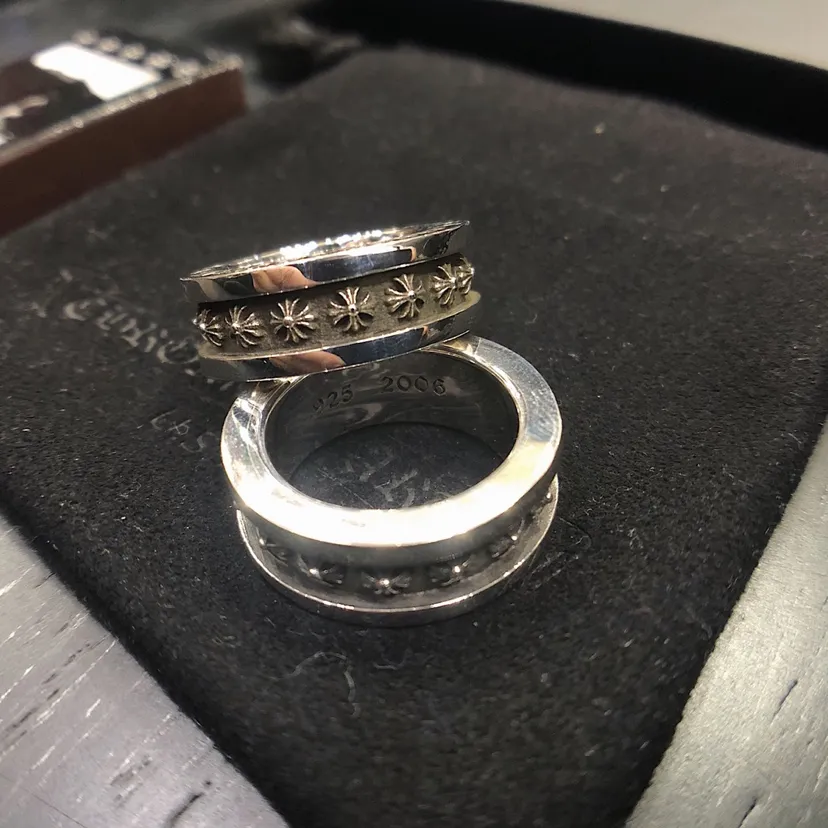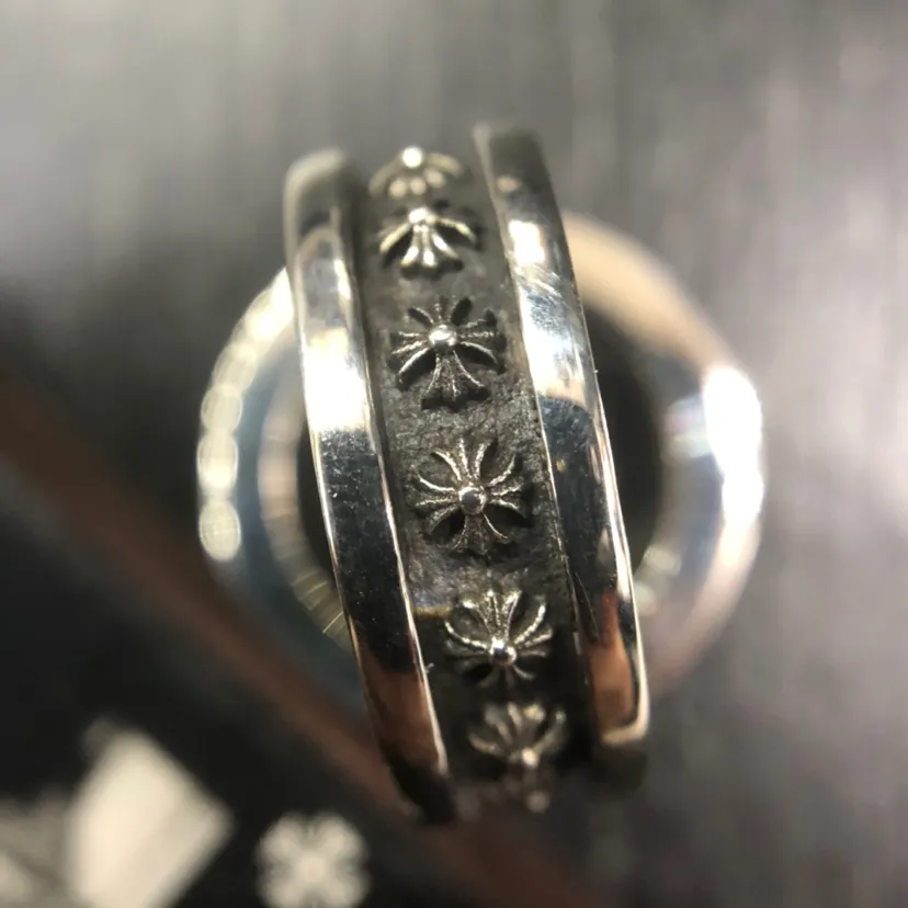 Chrome HeartsのシルバーMini Plus細十字花リングは、非常にクラシックでバーシティルなデザインが特徴です。オンラインでも人気があり、専門店で購入した正規品です。着け心地が良く、上品な印象を与えます。サイズは豊富に揃っており、即日発送可能です。市場には偽物も出回っているため、信頼できる店舗での購入をおすすめします。