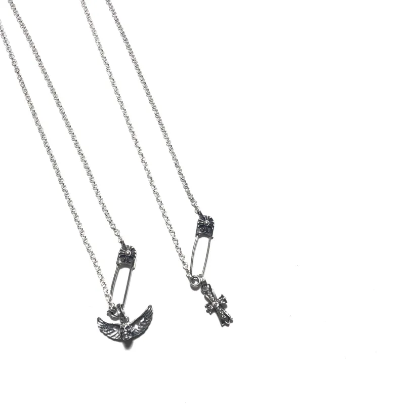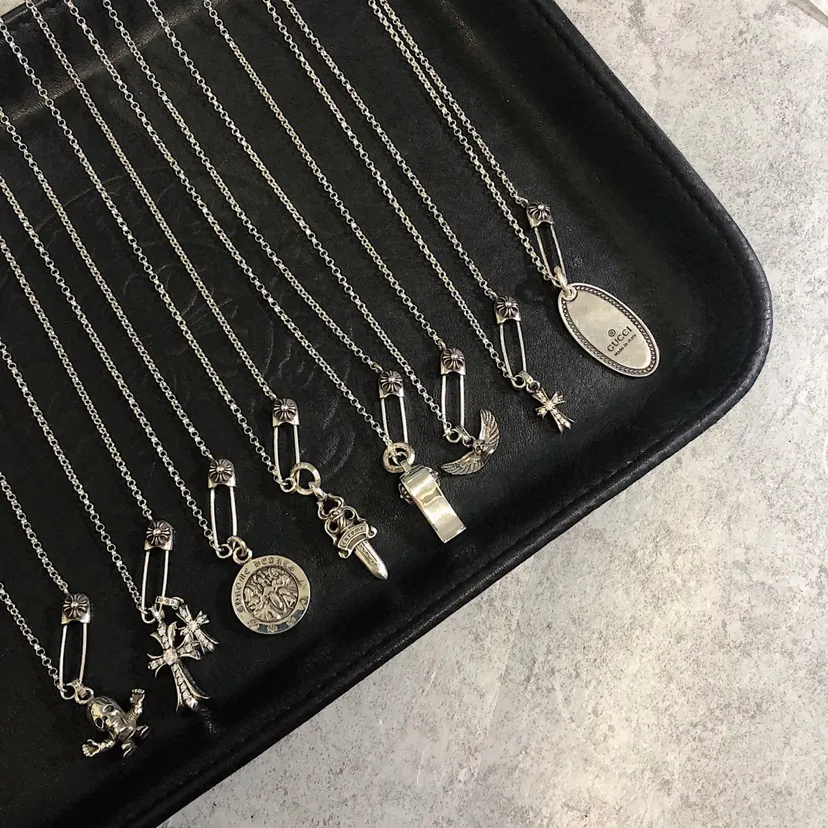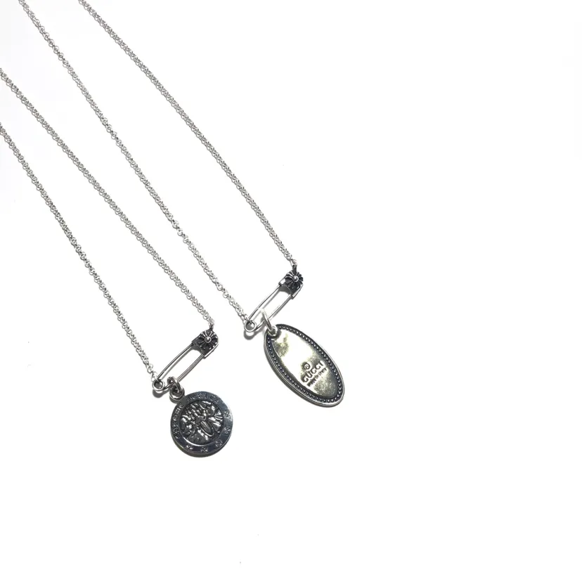 Chrome Heartsのシルバーネックレスは、ピン付きのデザインが特徴で、異なる吊り下げチャームが付いています。個性的なデザインと高品質なシルバー素材で、ファッショナブルでユニークなアイテムです。コレクターズアイテムとしても人気があり、他の人と被らないスタイルを楽しめます。市場には偽物も出回っているため、購入時には正規品を見極めることが重要です。