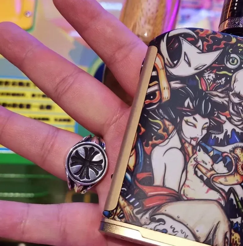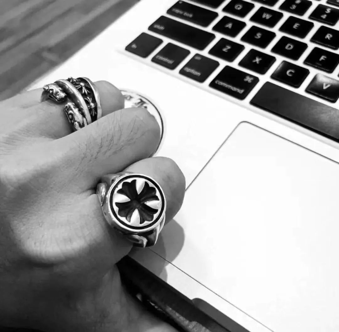 Chrome Hearts シルバー刻印リング ブラッククロス