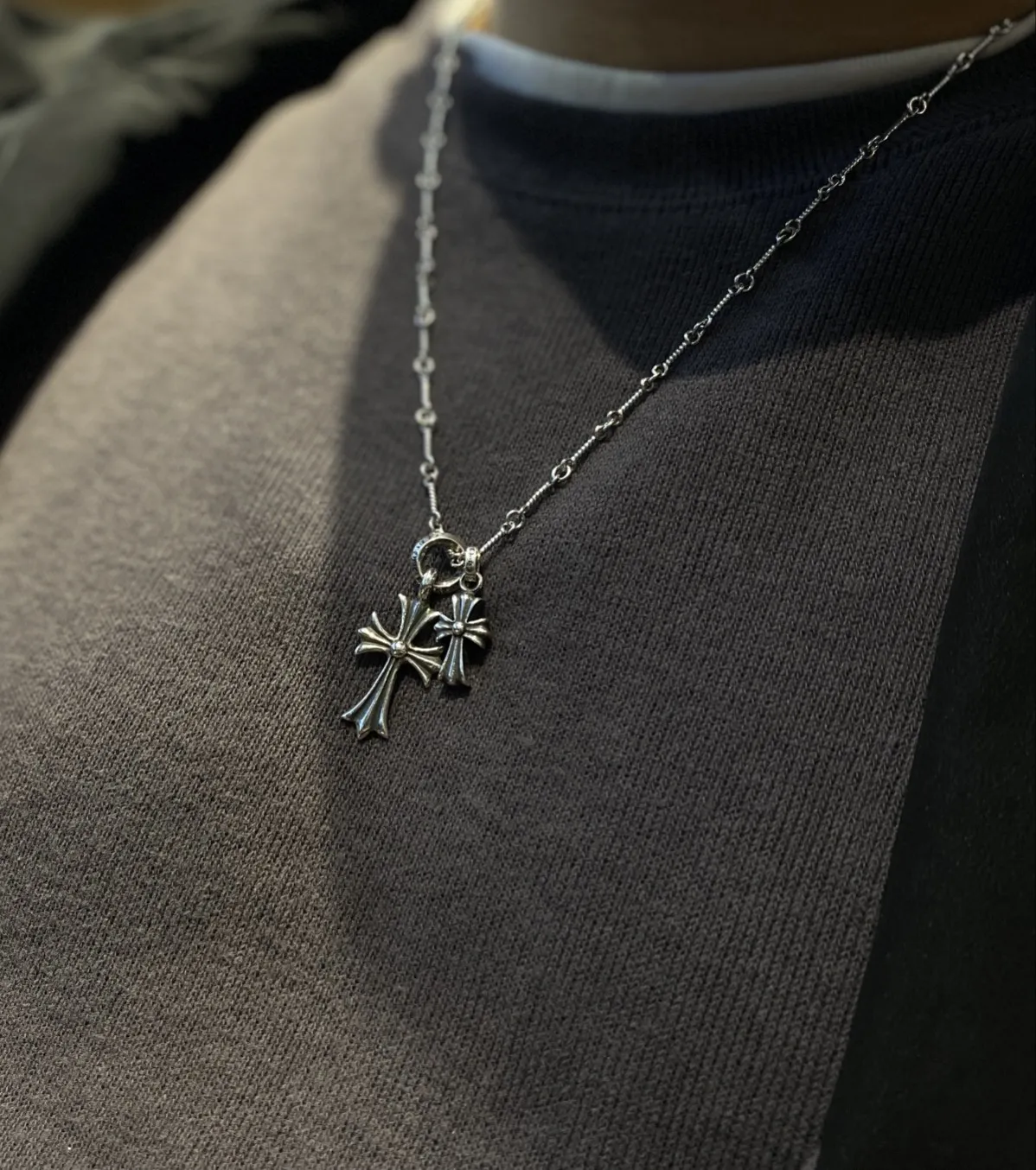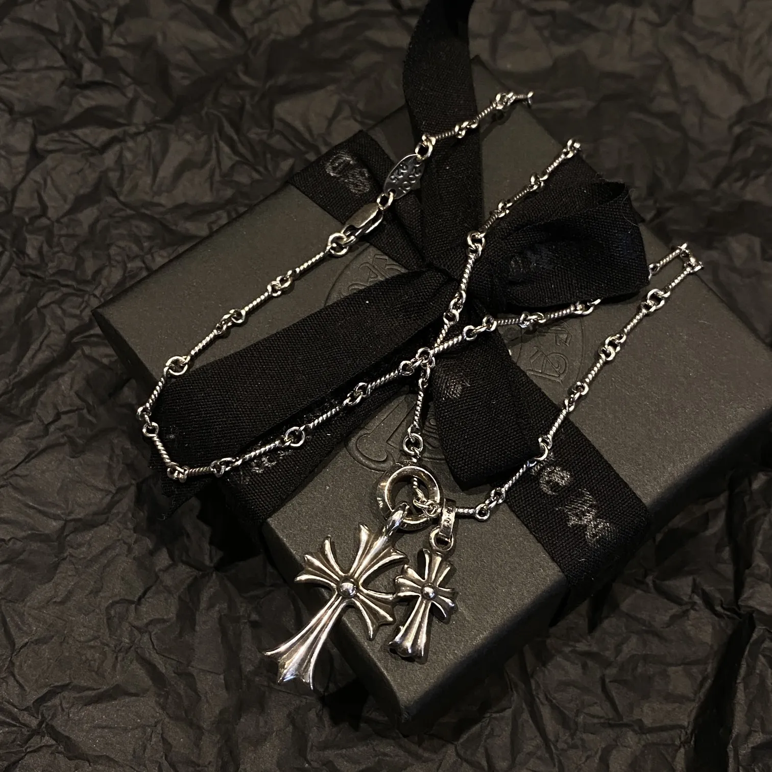 Chrome Heartsのシルバー十字架ネックレスは、純銀素材で作られ、精巧なデザインが特徴です。内側にはブランド独自の刻印が施されており、特別感を演出します。男女兼用で、どんなスタイルにもマッチする上品な着用感が魅力です。市場には偽物も出回っているため、購入時には正規品を見極めることが大切です。