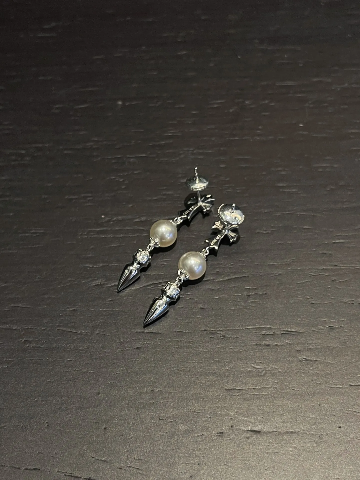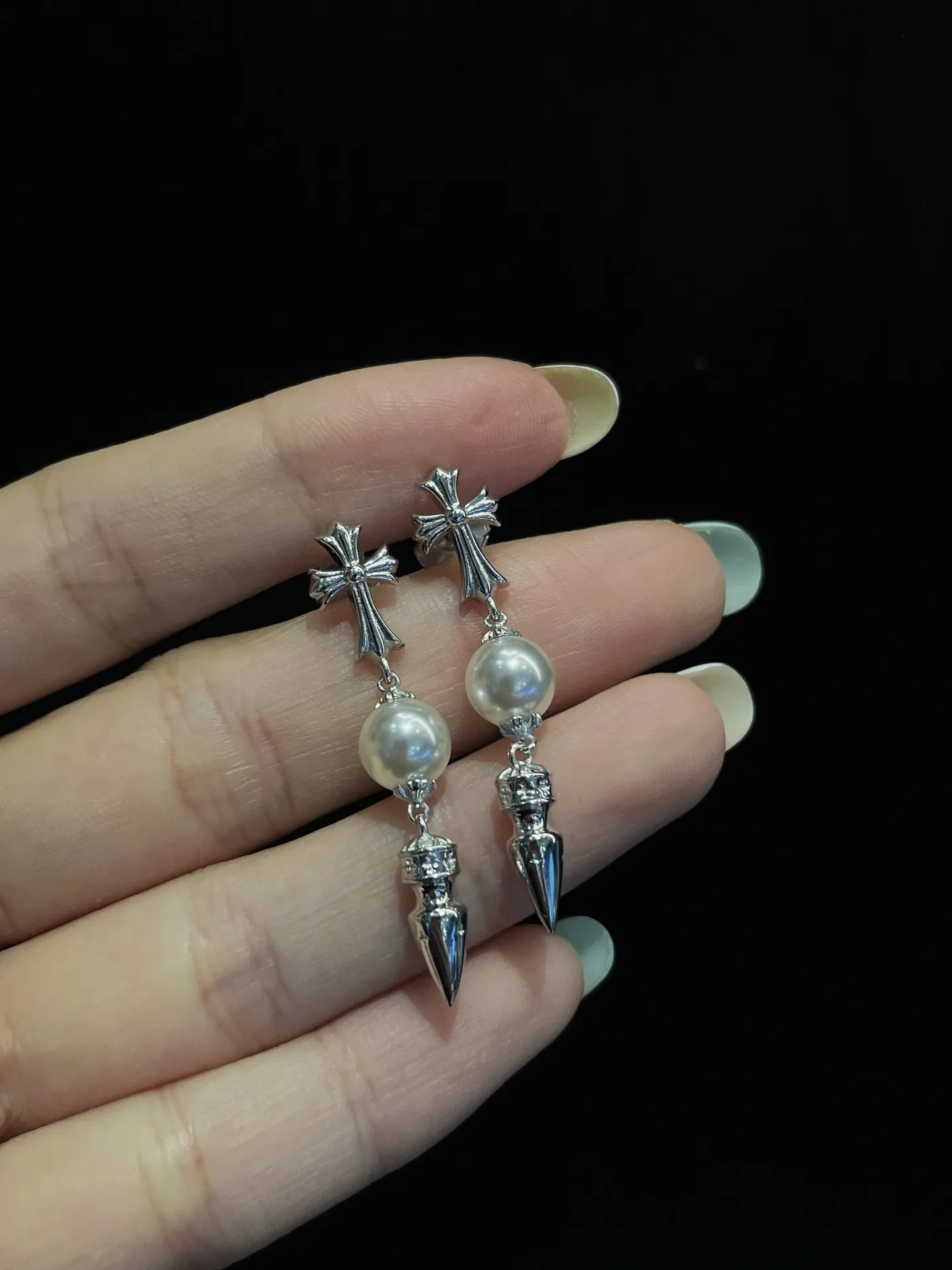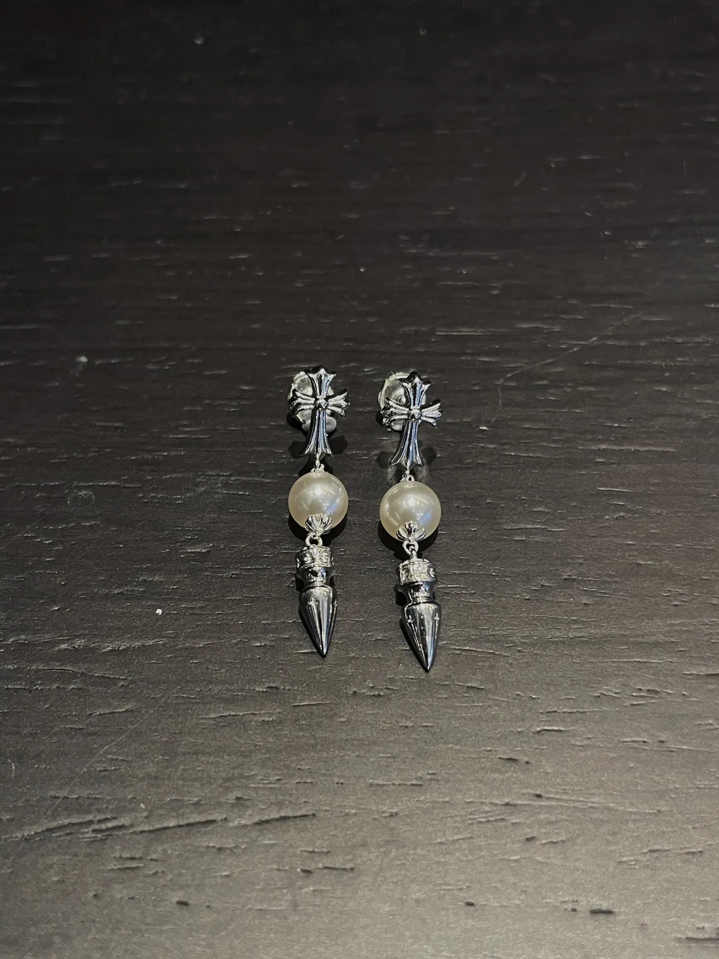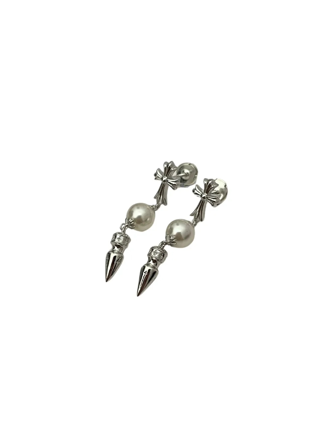 Chrome Hearts x Mikimoto シルバーとパール十字架イヤリング