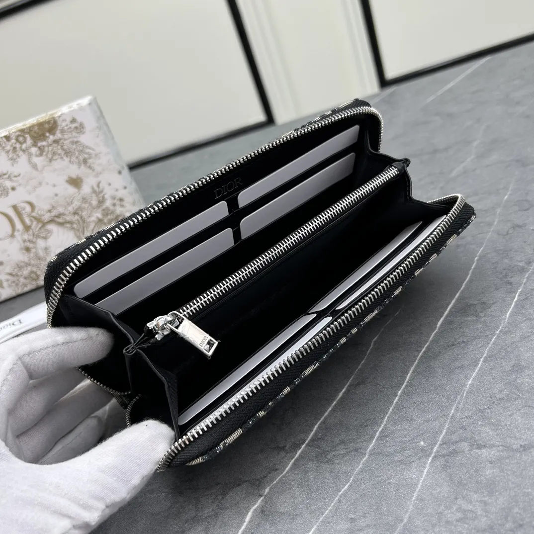 ディオール オブリーク ロングジップウォレット ブラックパターン