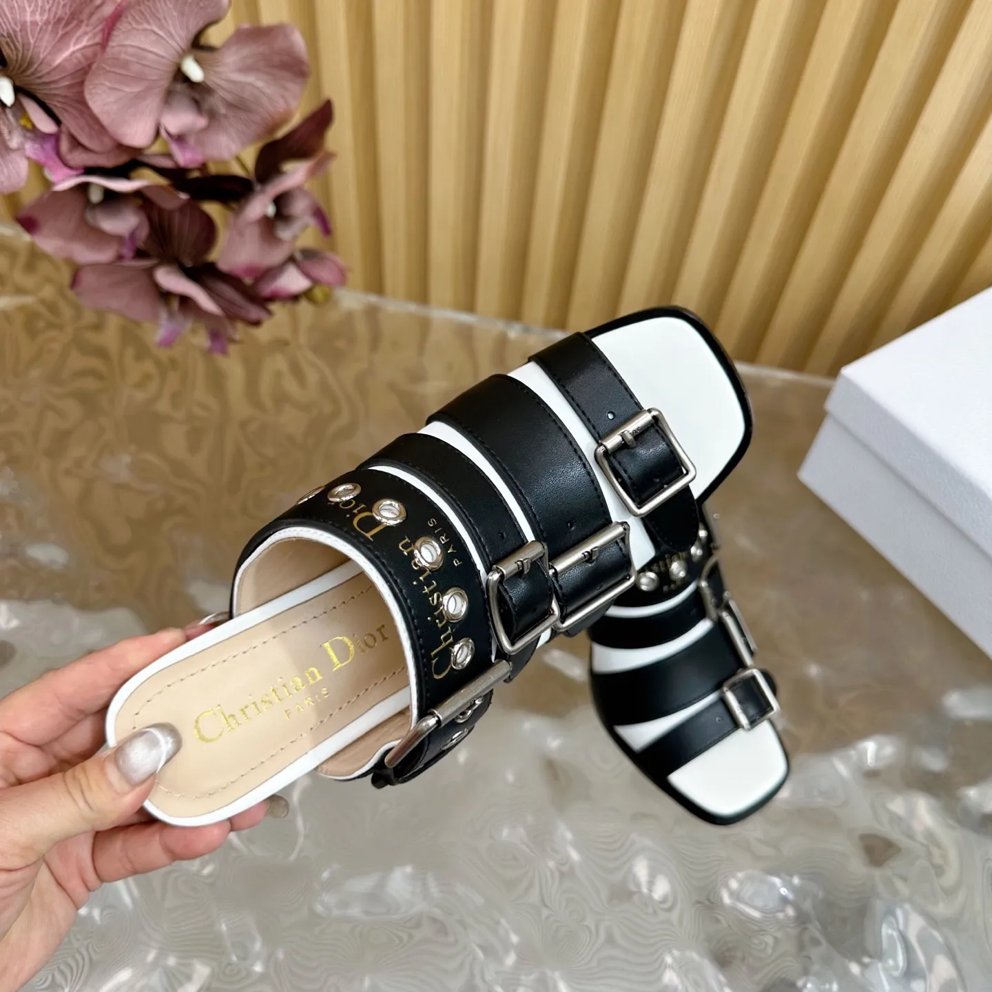 Diorの25ss早春新作、D-Avenueシリーズのカラーマッチングハイヒールサンダルです。ローマ風デザインとパンクスタイルを融合し、CD字母ロゴの五金扣が特徴的。オリジナルカスタムのインポートカーフレザーアッパーとウォーターダイドシープスキンライニングを使用し、イタリア製レザーソールを採用。8cmの粗いヒールで、ファッショナブルな一足です。このような高品質なデザインは、まさにスーパーコピー市場でも注目されています。