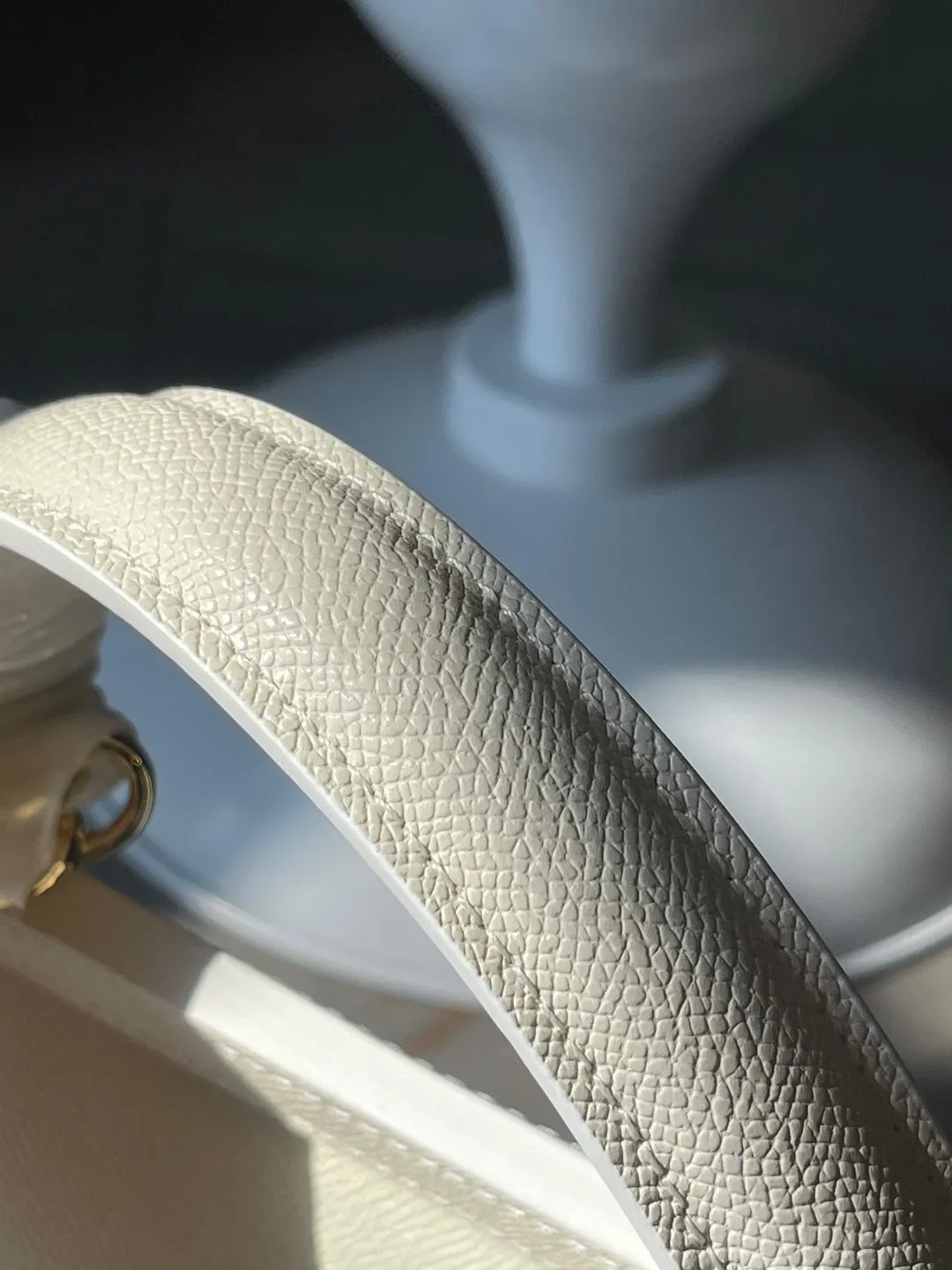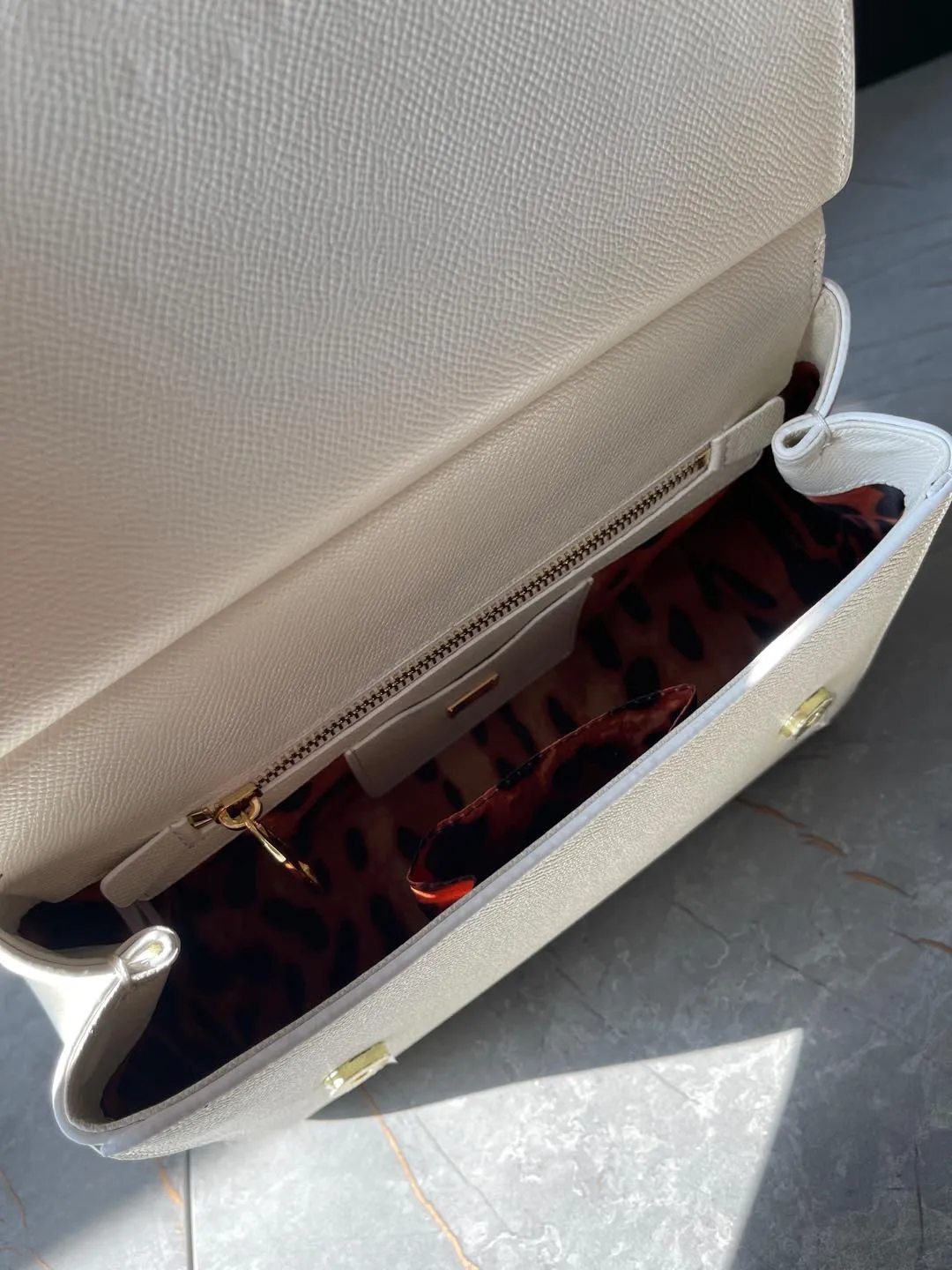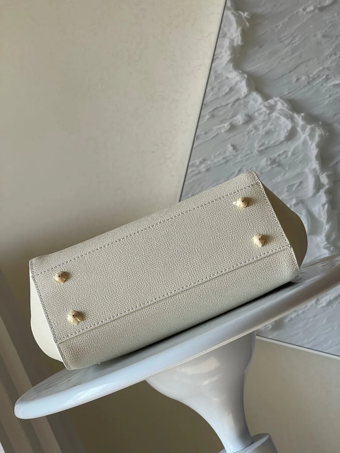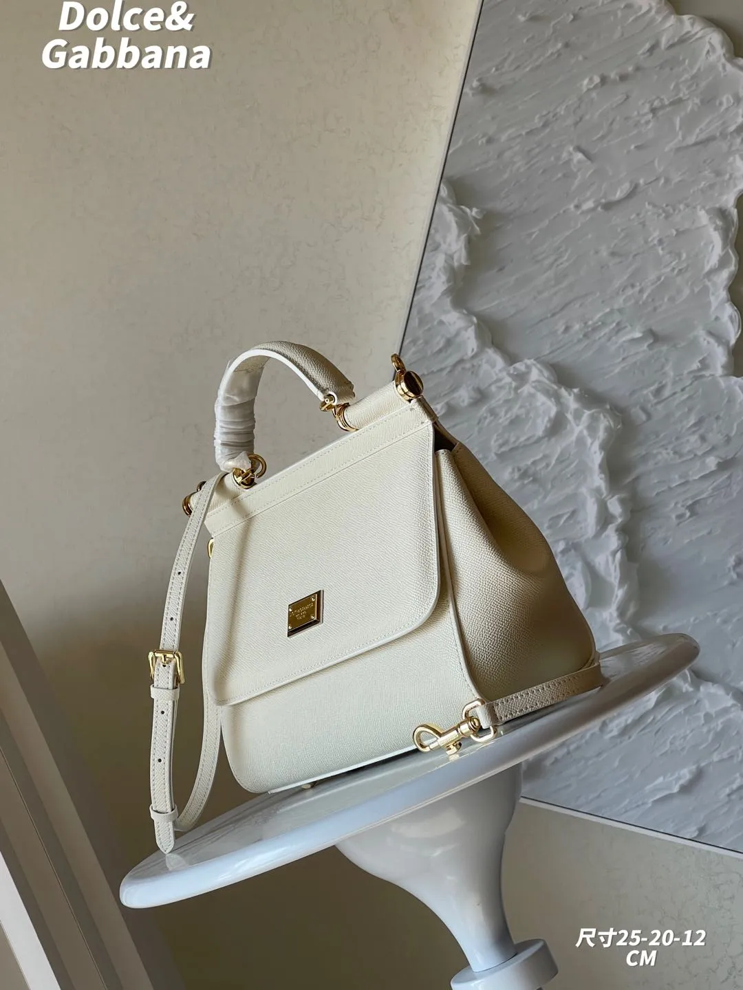 Dolce&Gabbanaの2021新作ホワイトハンドバッグP380です。高品質な輸入牛革を使用し、細部まで手作りで仕上げられています。セレブリティにも愛用されており、どんなスタイルにも合わせやすいデザインです。斜め掛けも可能で、ファッションセンスを引き立てます。また、N級品としてのクオリティを求める方にもおすすめです。サイズは25x20x12cmで、持ち運びに便利です。