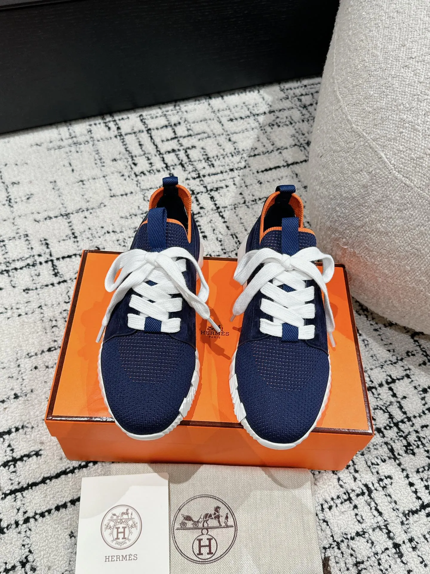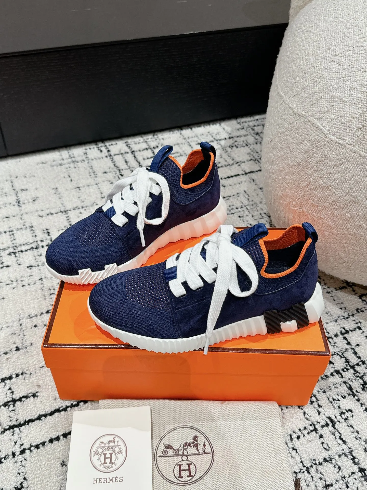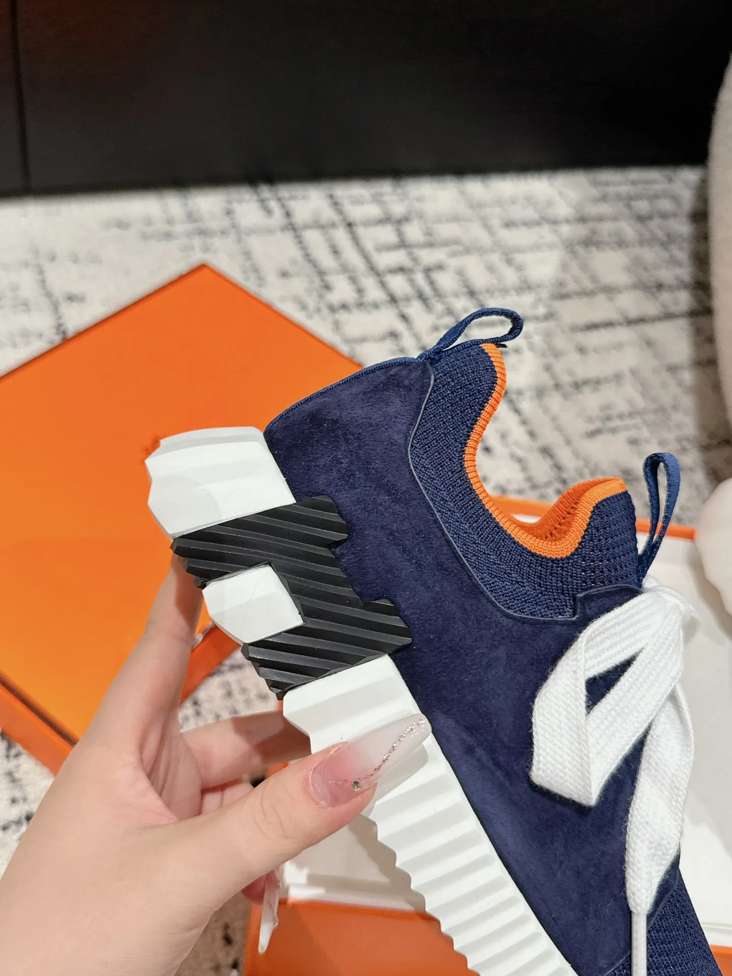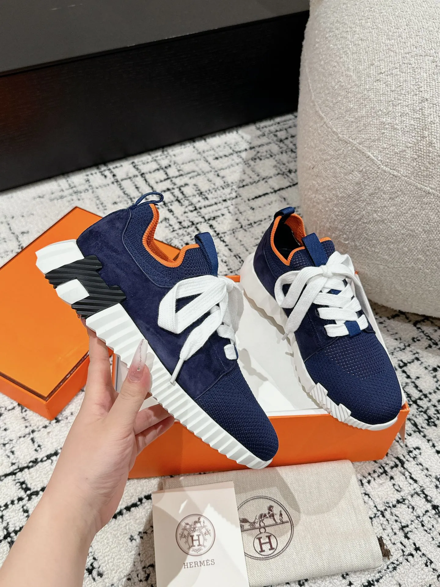 エルメス 厚底スニーカー ブルー カップルスタイル