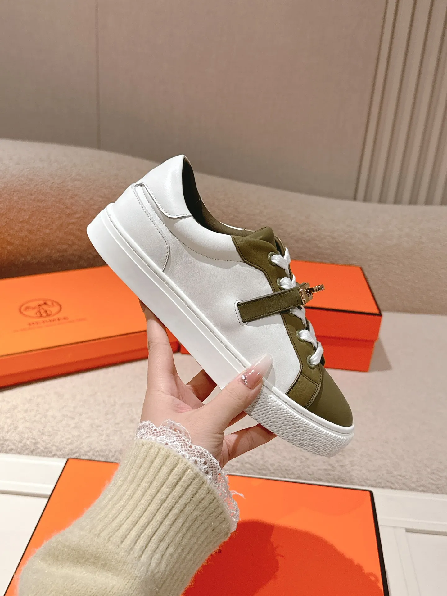 エルメスの高級バージョン、ケリーデザインの厚底スニーカーです。グリーンカラーで、特定の牛皮と帆布素材を使用し、内側は羊皮で仕上げられています。オリジナルのTPUソールとクラシックなパラジウムケリーバックルが特徴で、スカートやパンツに合わせやすく、どんなスタイルにもマッチします。高貴で洗練されたデザインが魅力のスニーカー スーパー コピーです。