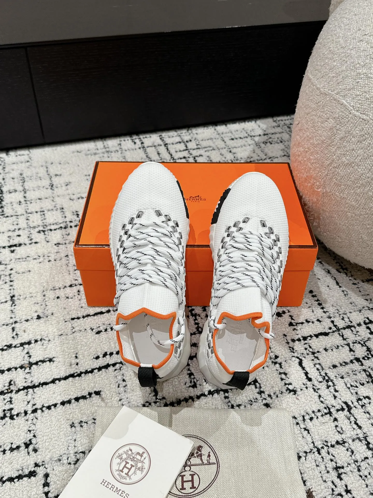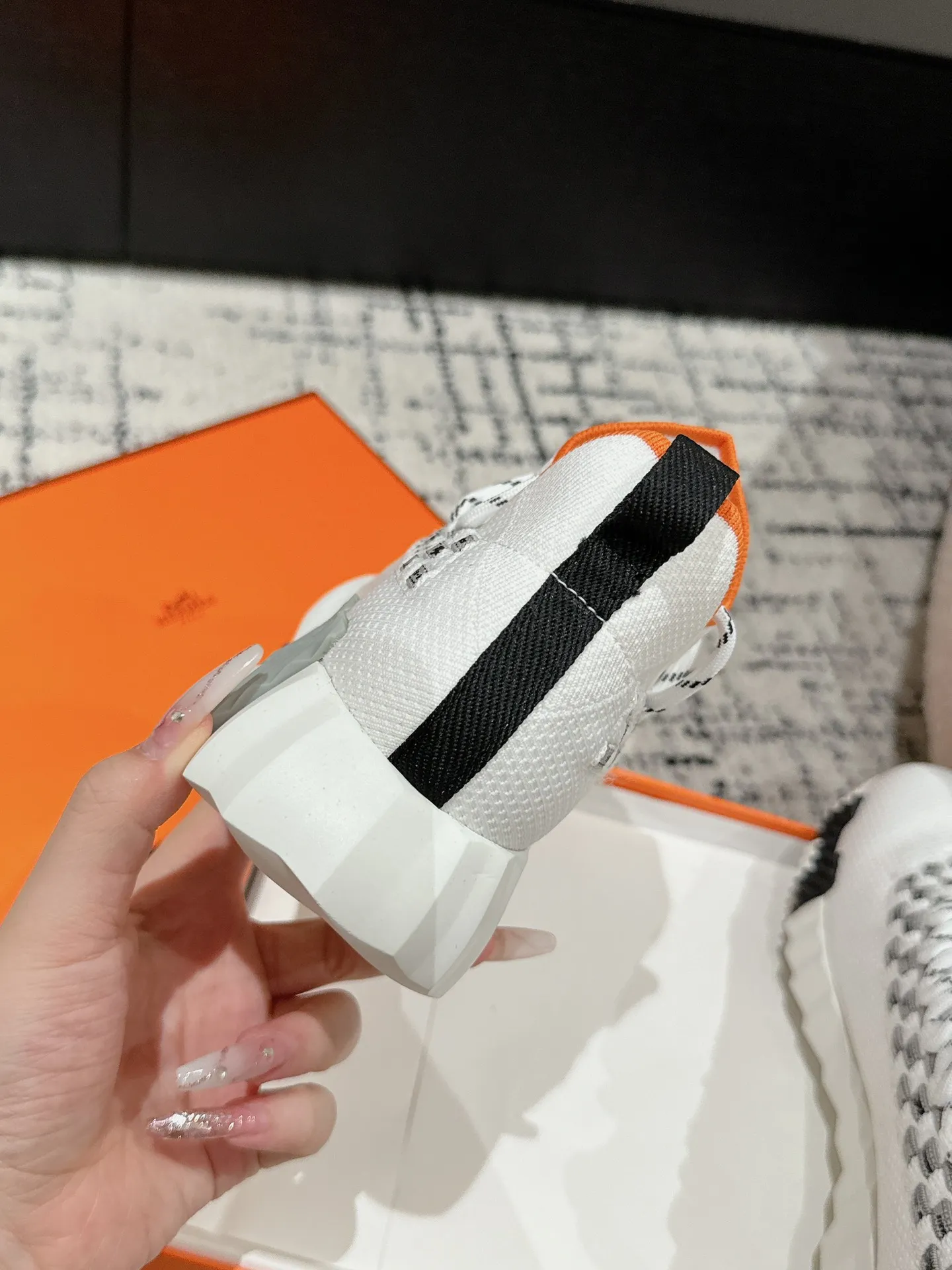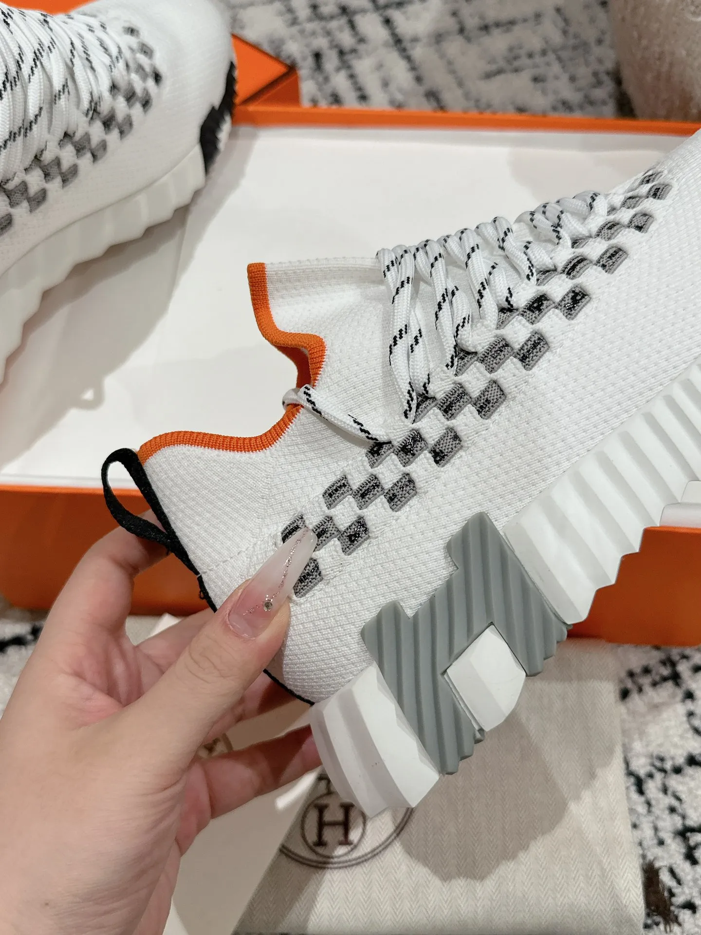 エルメス 厚底スニーカー ホワイト オレンジ スタイル
