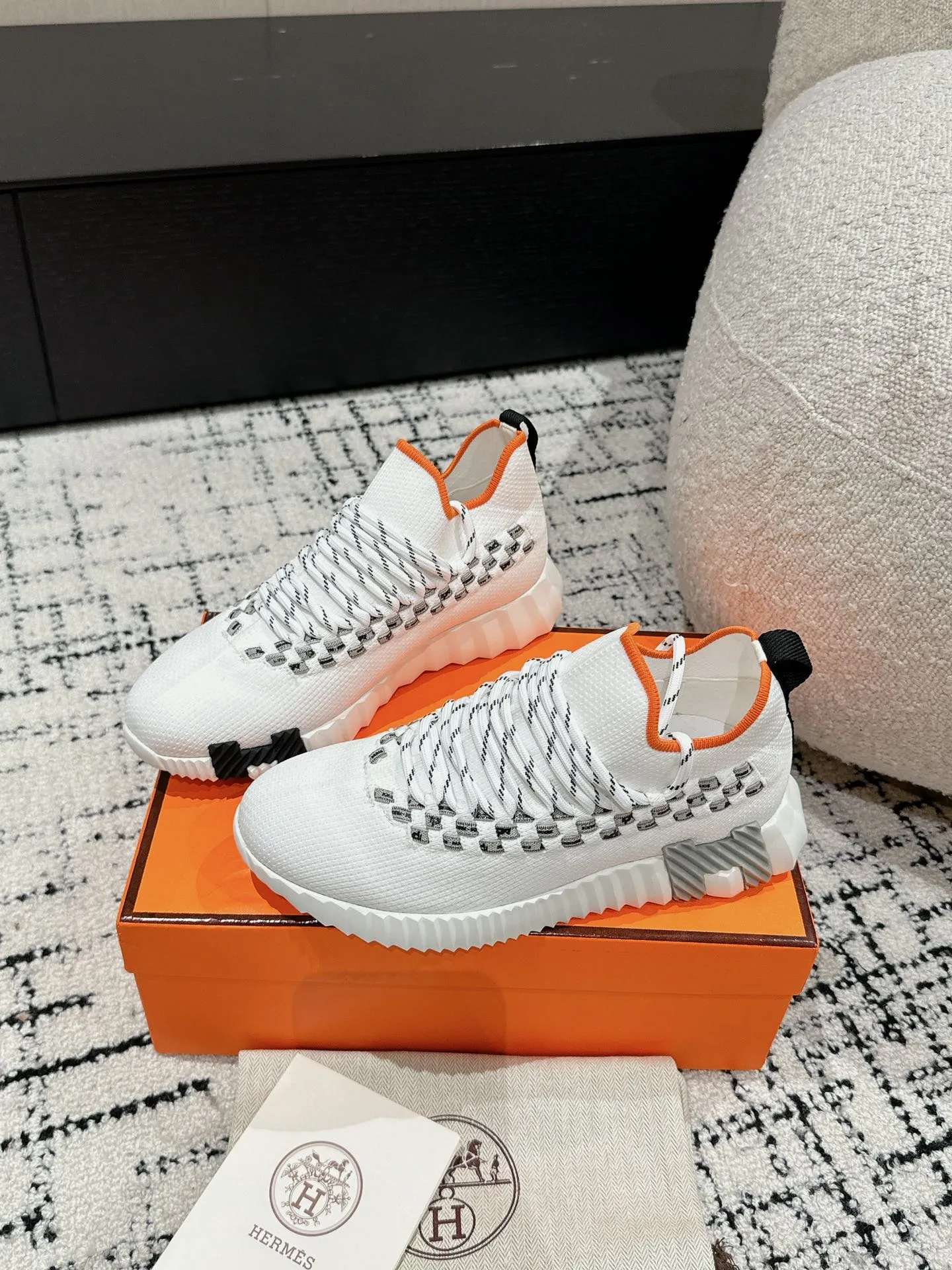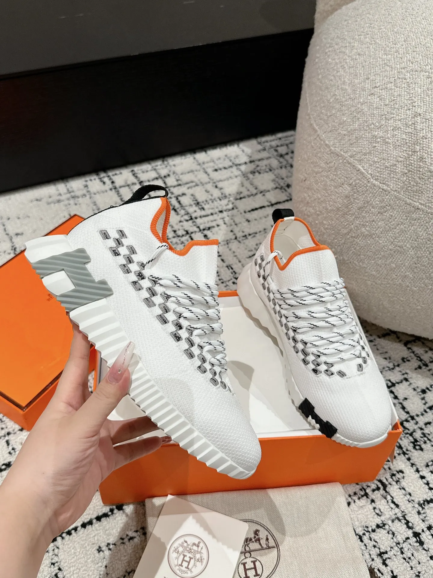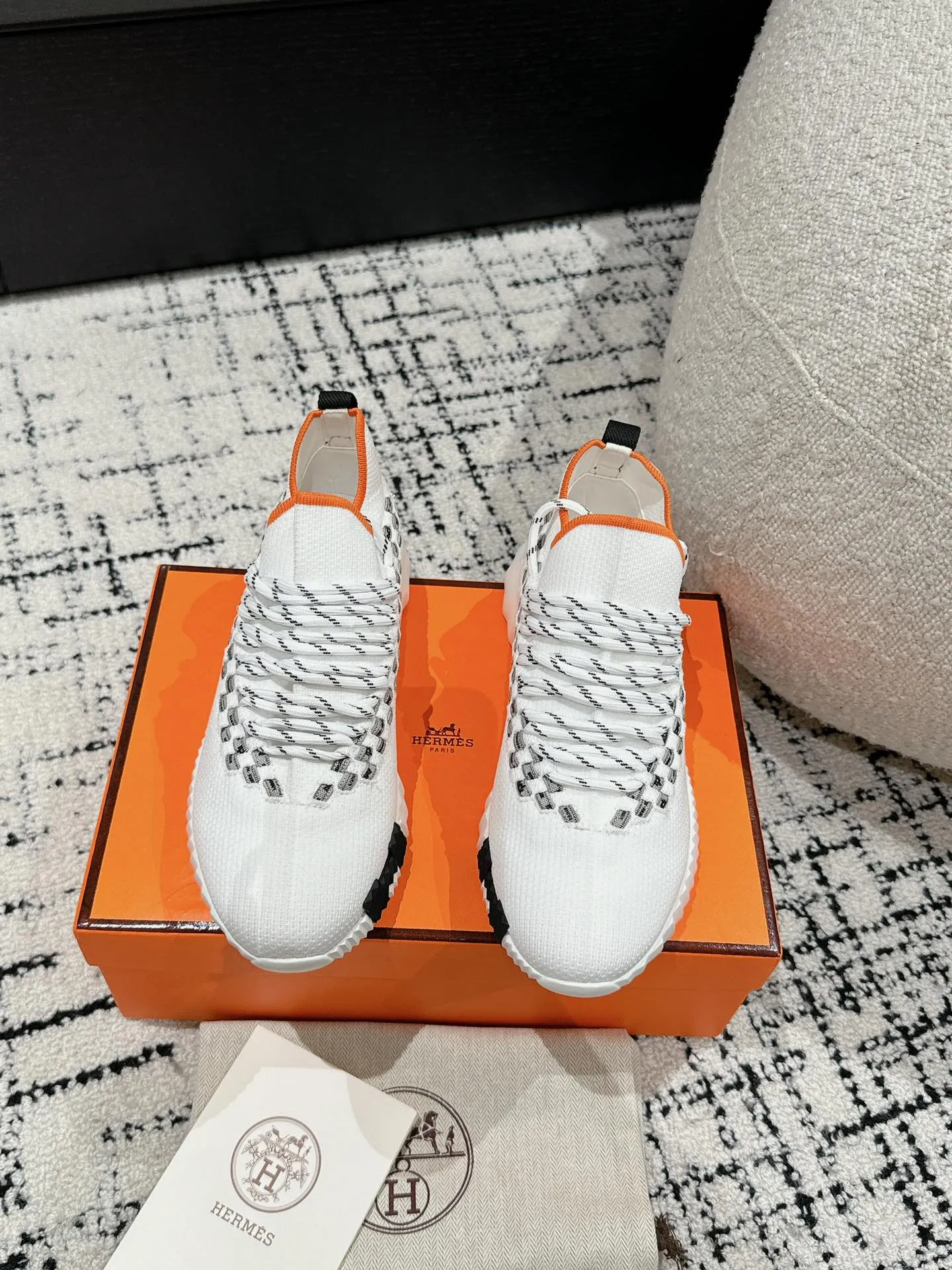 エルメス 厚底スニーカー ホワイト オレンジ スタイル
