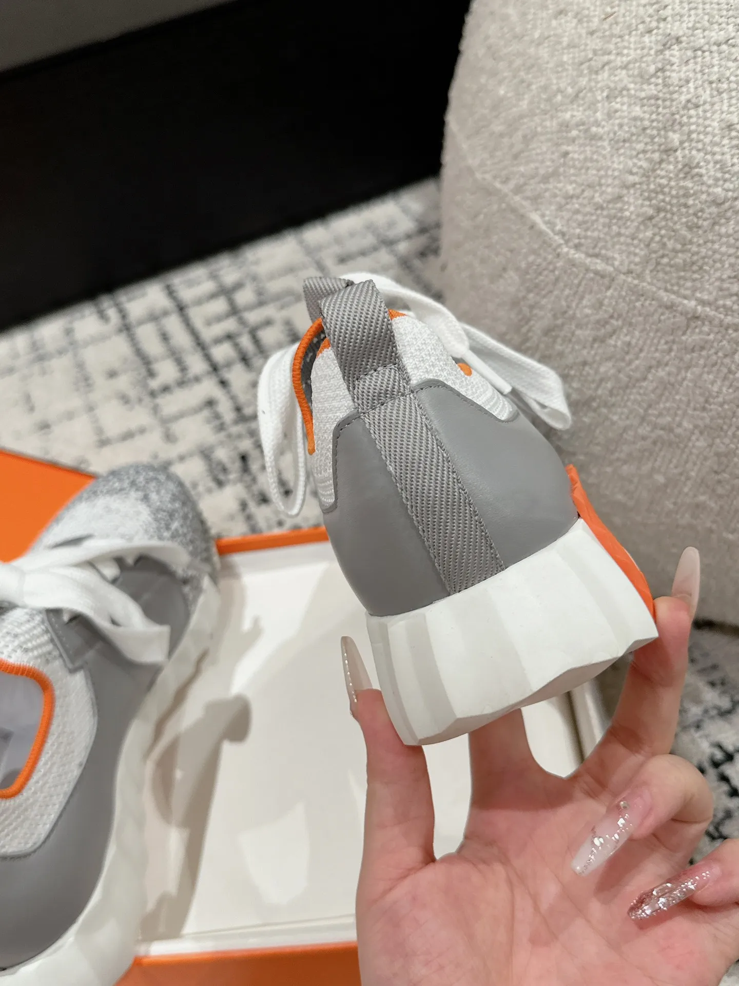 エルメス 厚底スニーカー オレンジ グリッター