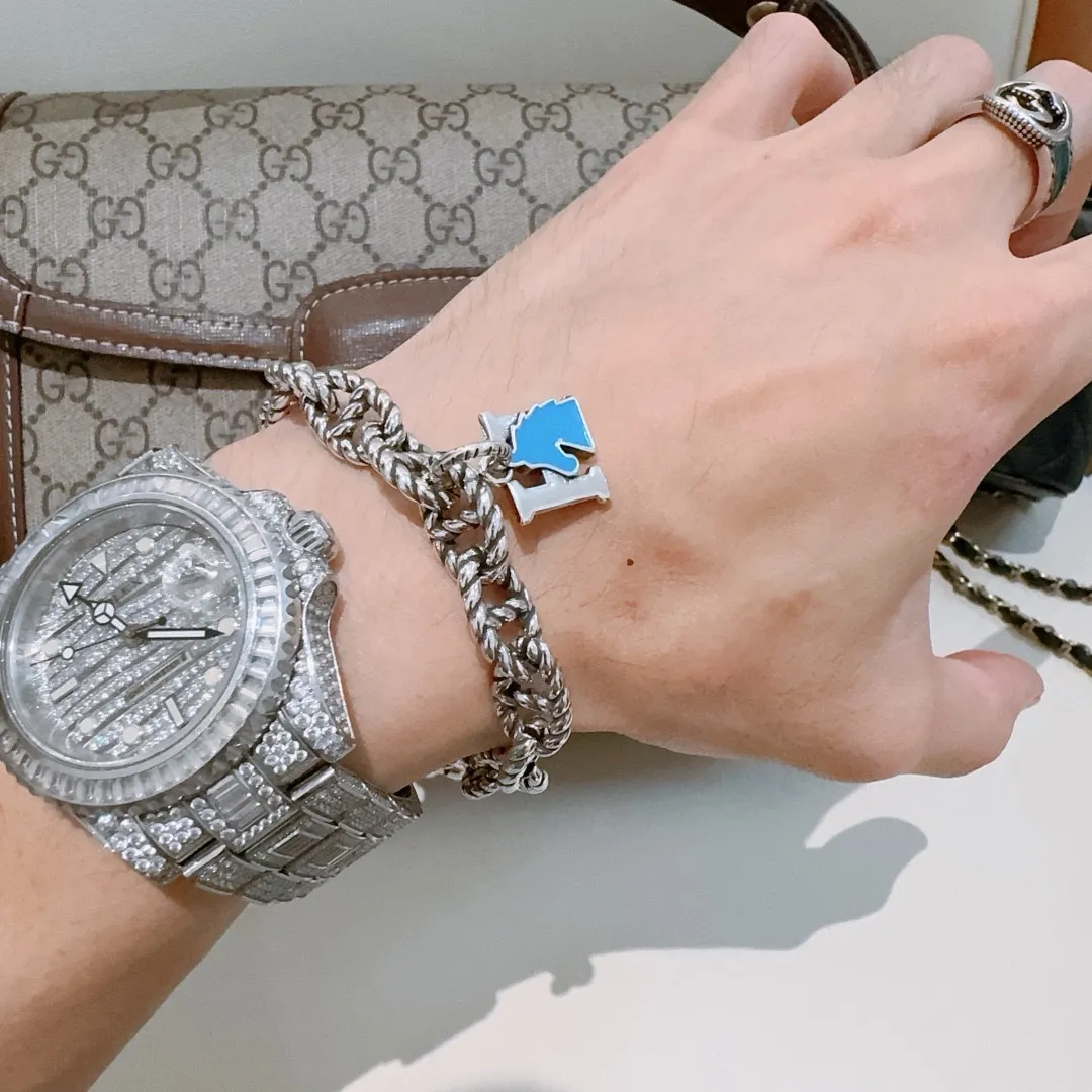 エルメス プラチナ カラーの厚手チェーンブレスレット