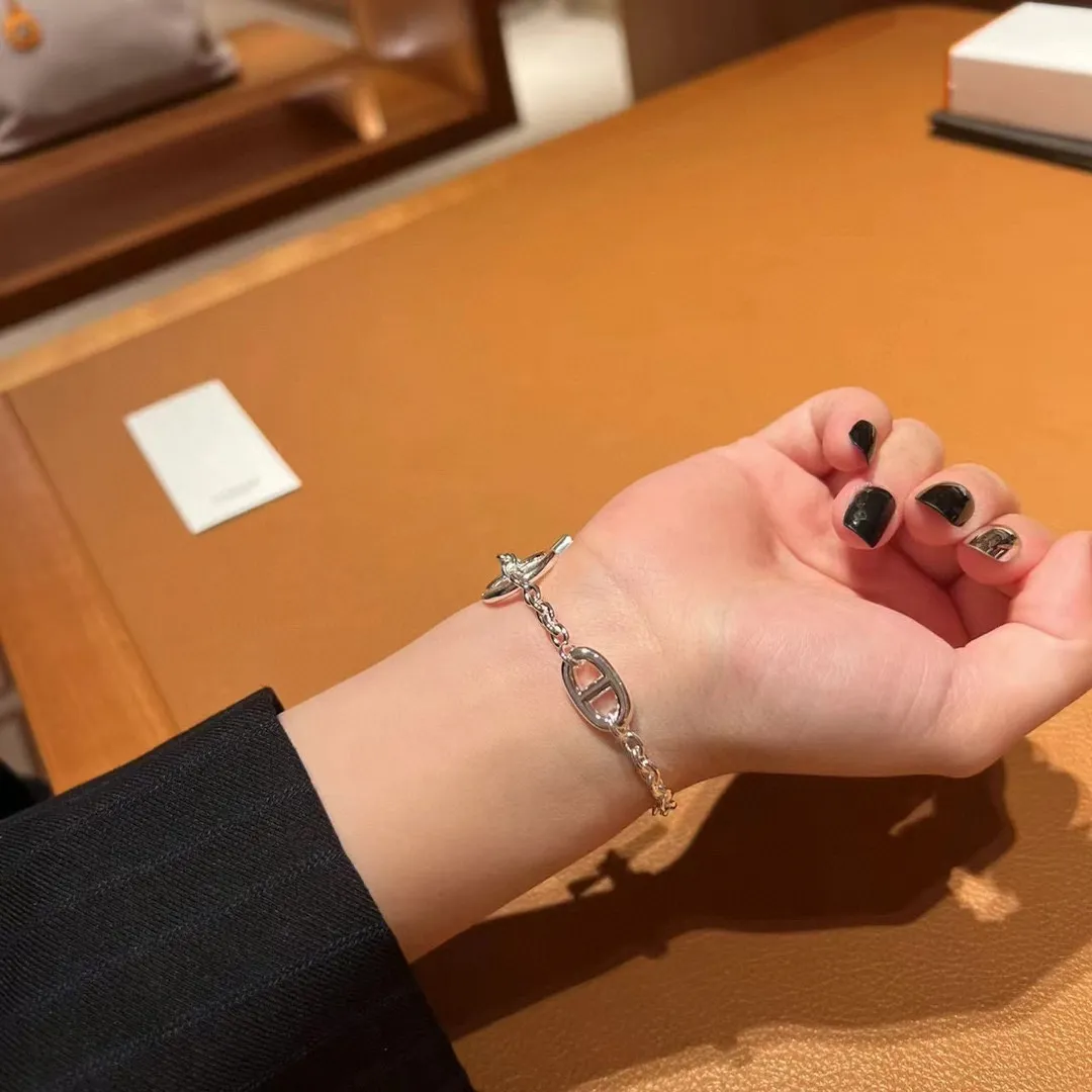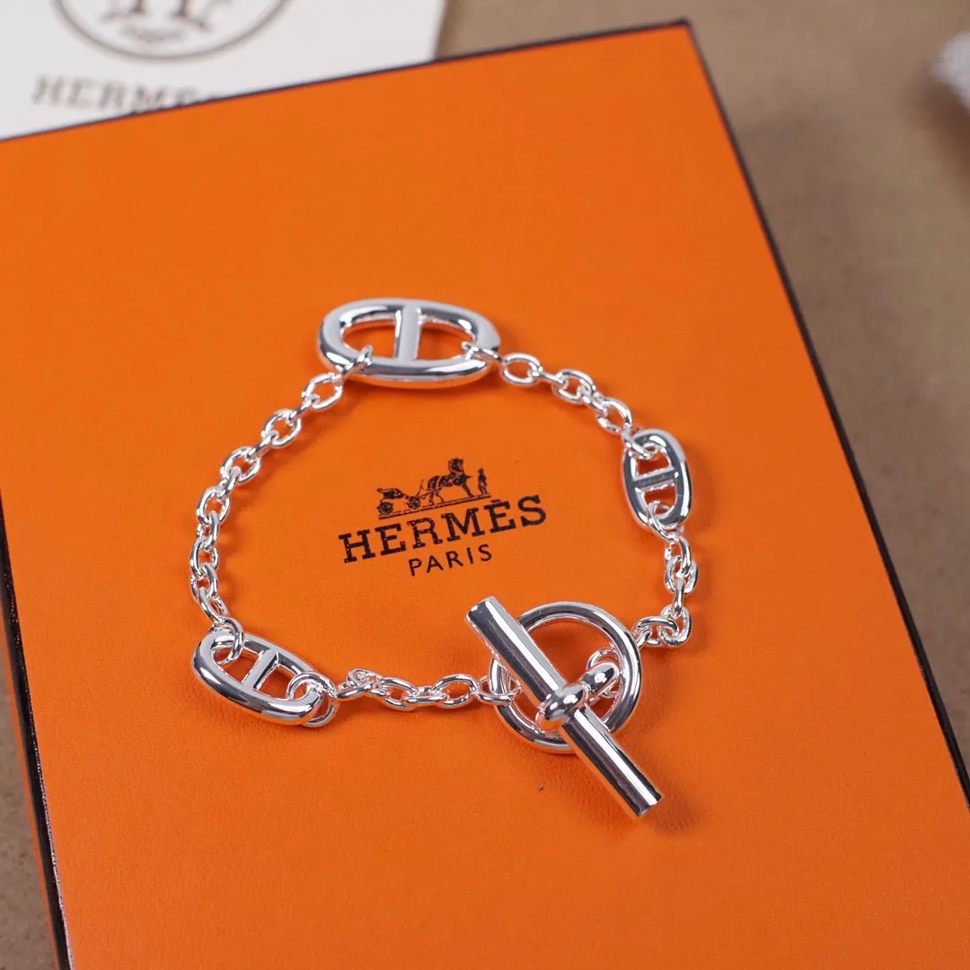 エルメス プラチナ カラーの厚手チェーンブレスレット