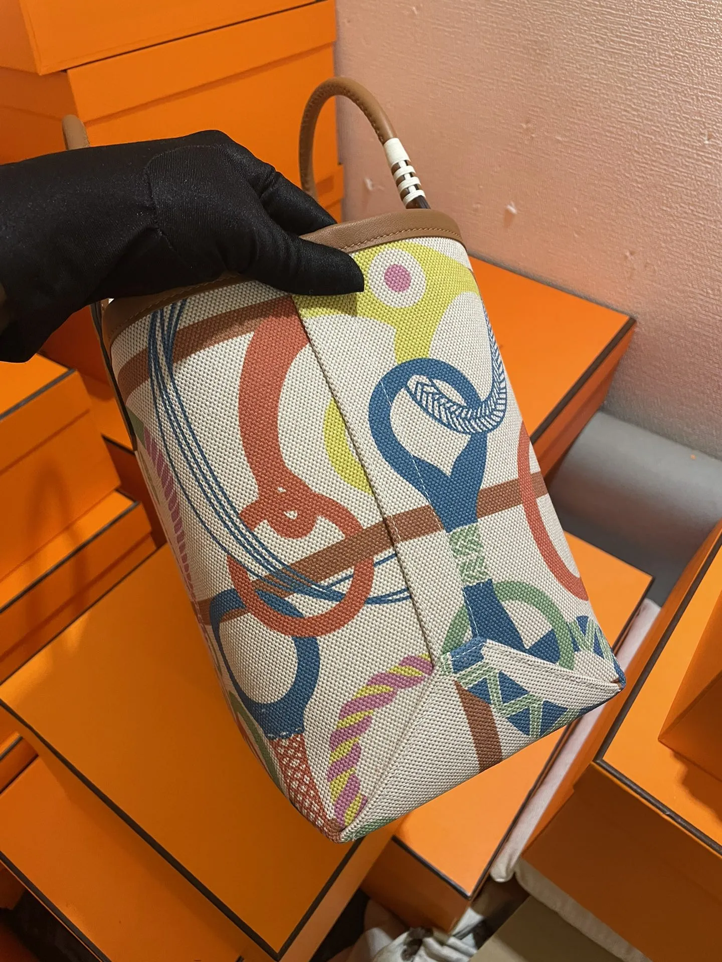 エルメス Steeple25 カラフルプリント トートバッグ