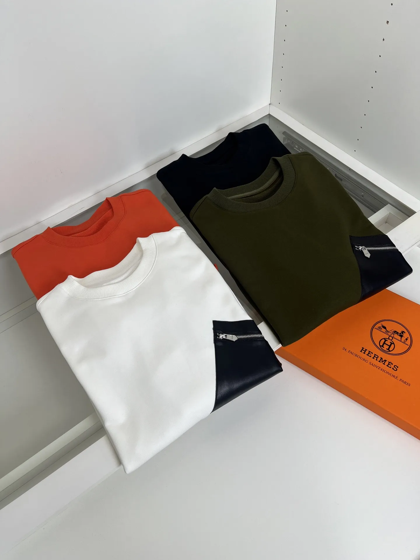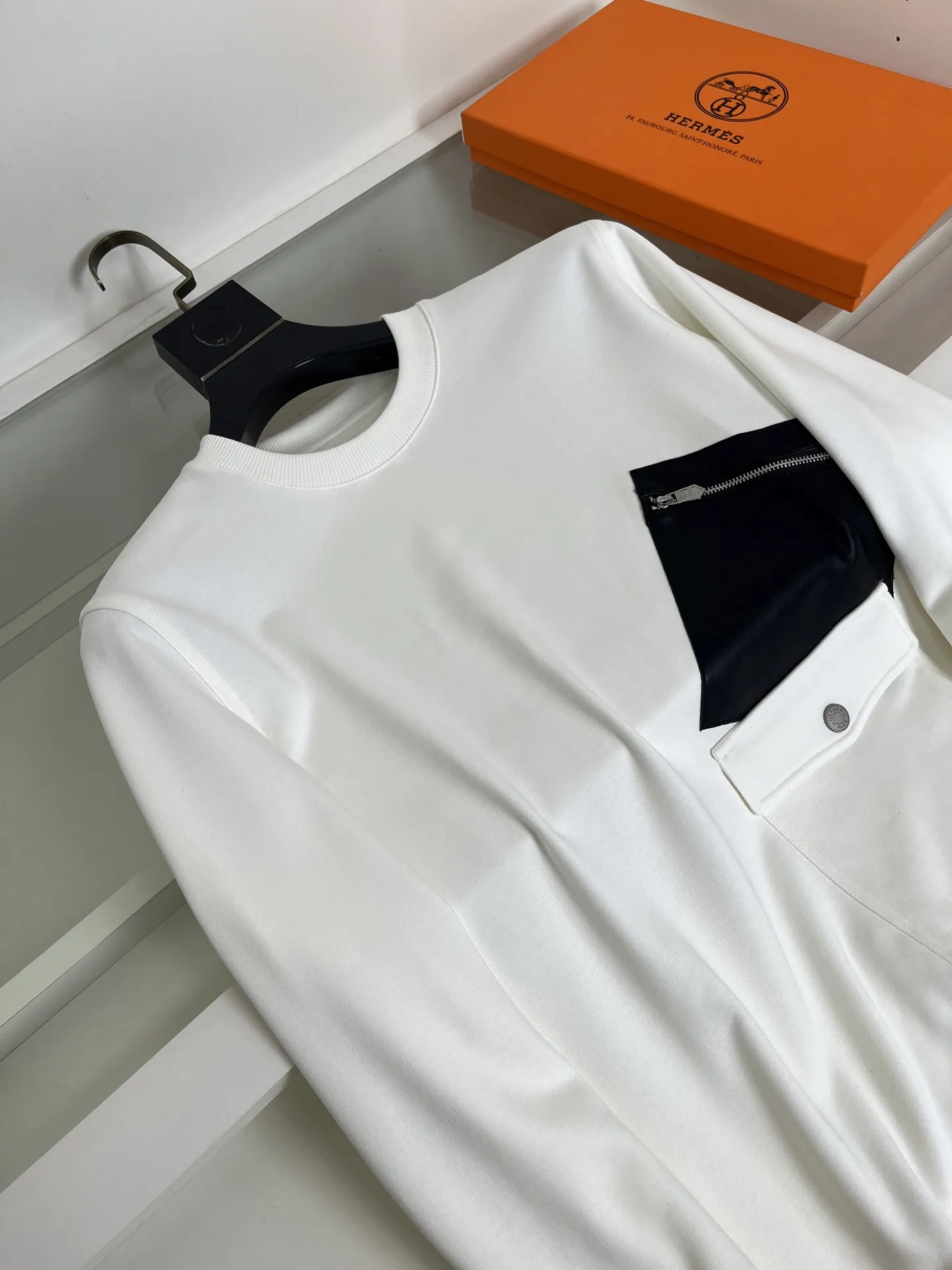 エルメス2025秋冬白い丸首スウェットシャツ