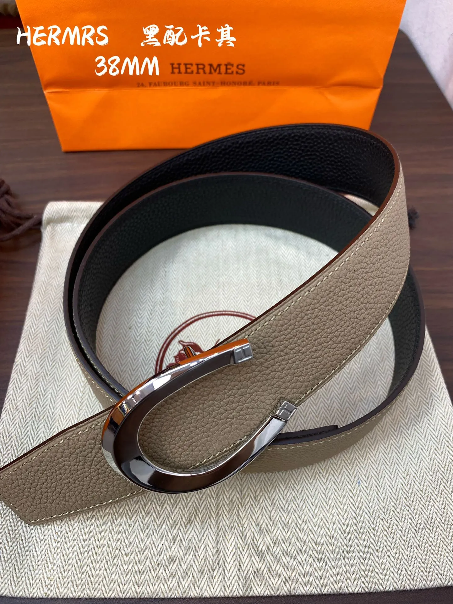 エルメスH BELT BUCKLE 新作38mm黒ベージュ