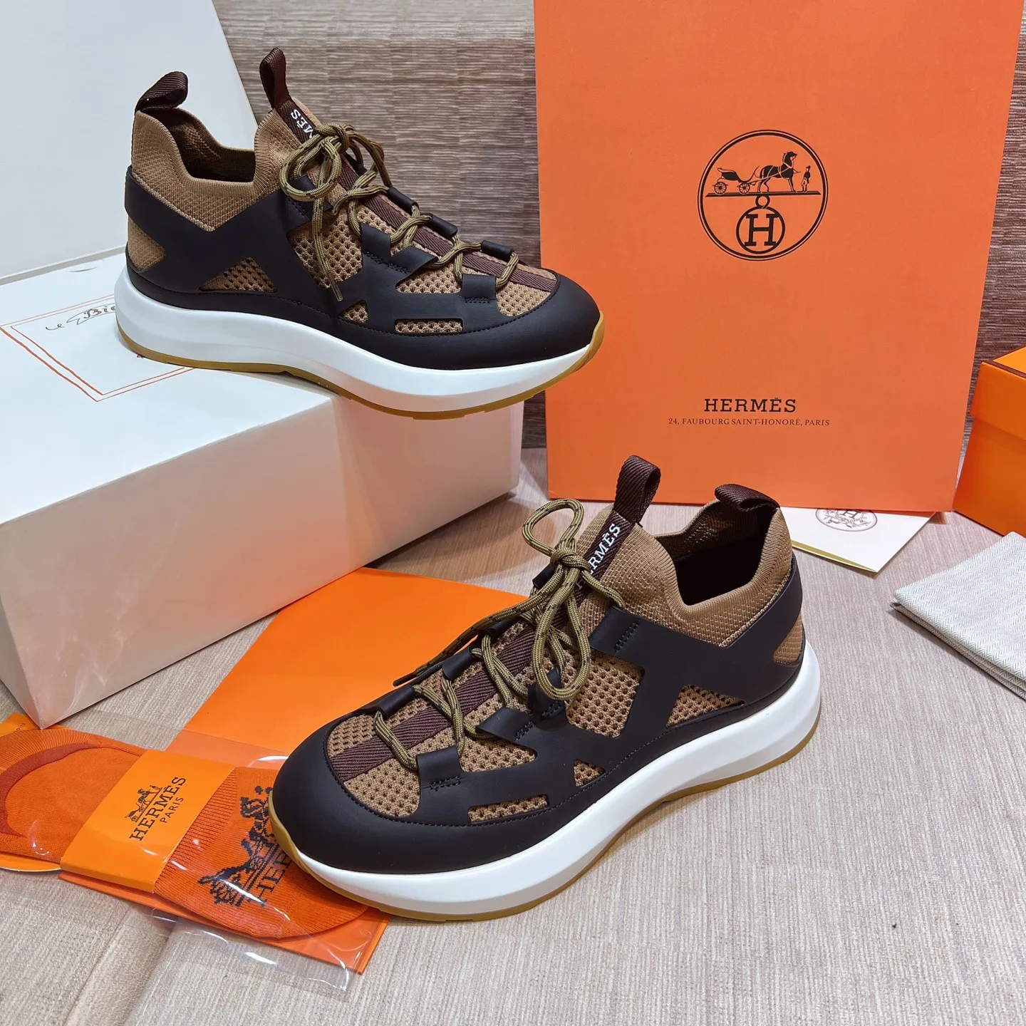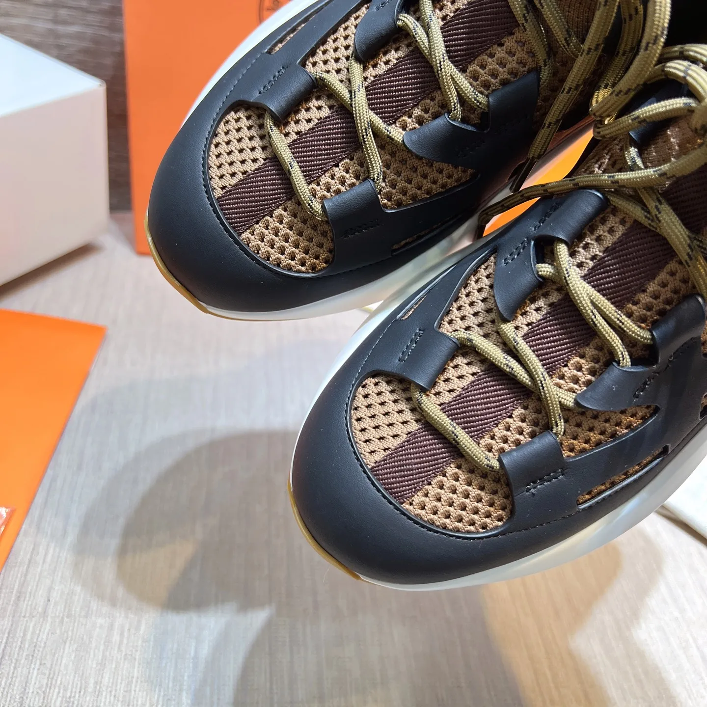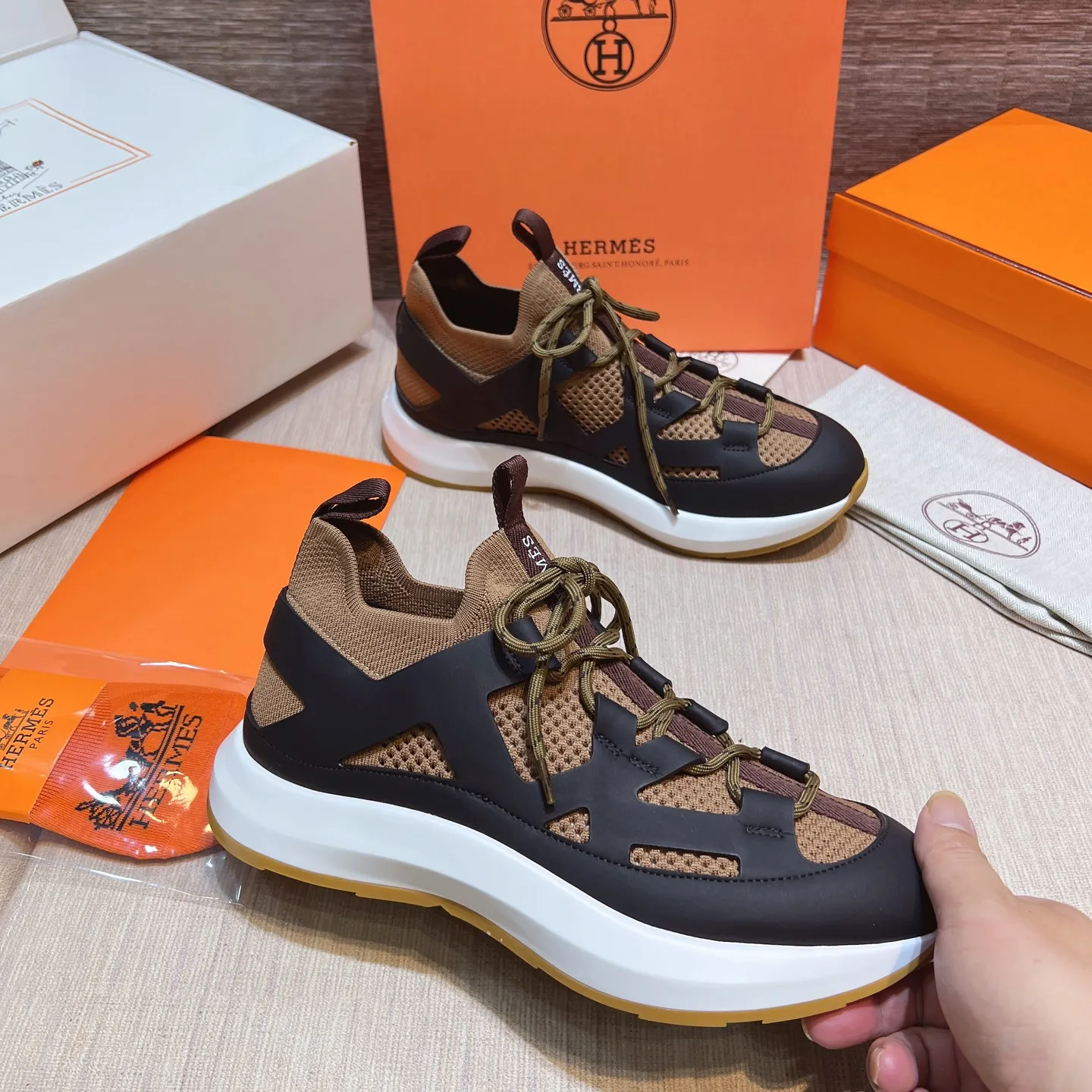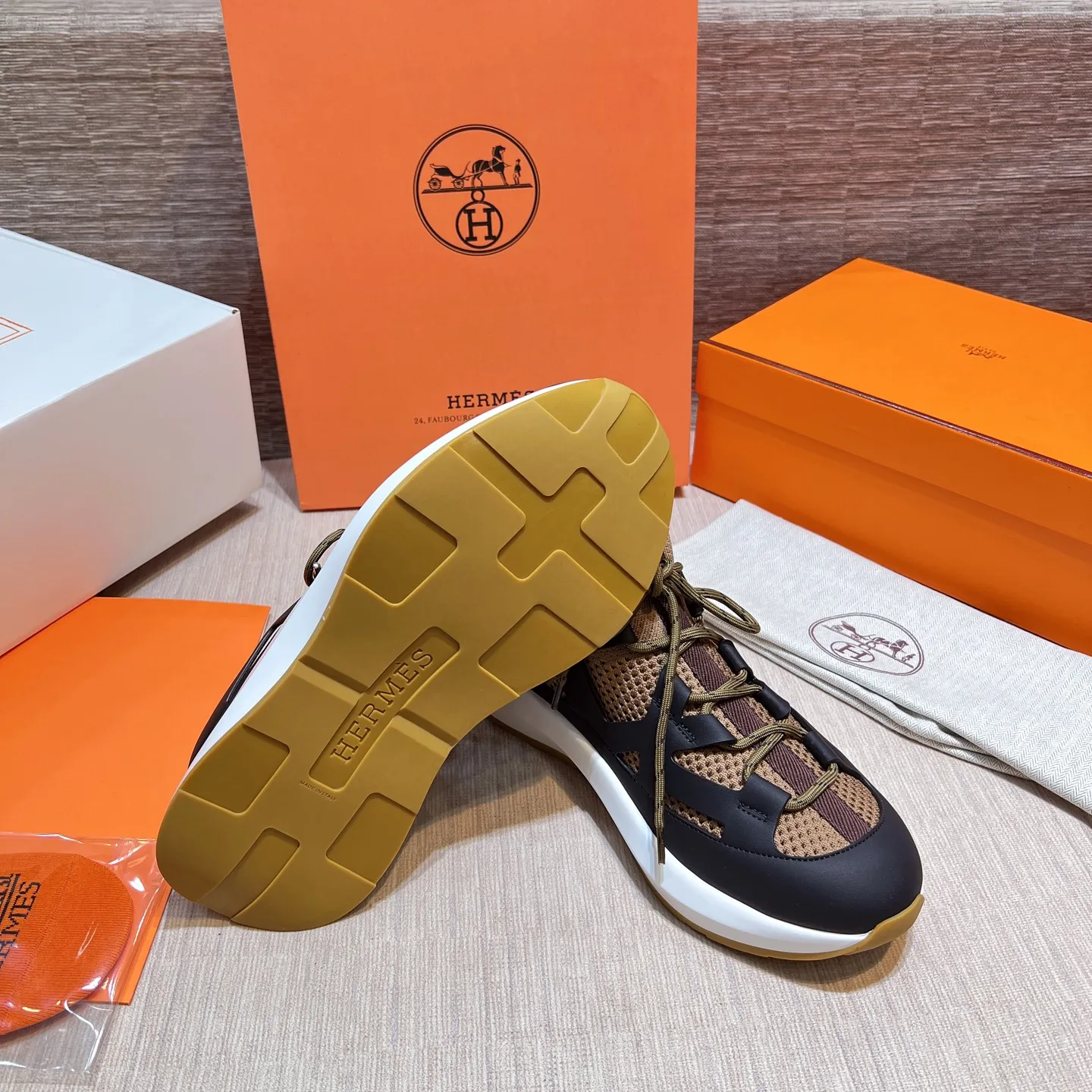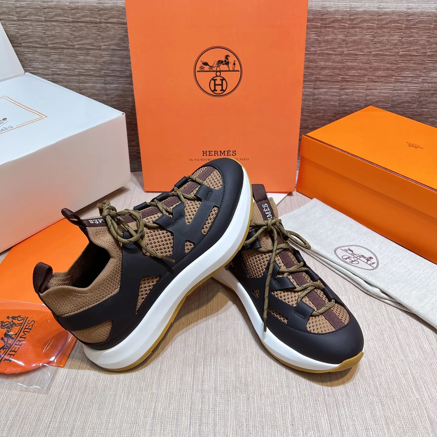 HERMES Hugo厚底スニーカー茶色カジュアルスタイル